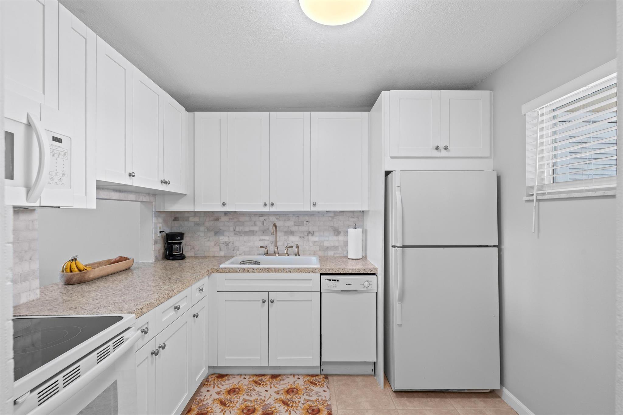 Beautifully updated 1 bed/1 bath unit located on the top floor. This charming, light, bright condo features: new a/c unit (2022), new hot water heater (2022), new electrical panel (2022), partially impact windows; updated kitchen with new cabinets, tile floors throughout, updated bathroom, private balcony in a tropical setting and a private storage closet located next to the unit for easy access. This active 55+ community offers lots of amenities and activities: bus transportation, clubhouse with an auditorium, billiards, a card room, library, two pools, fitness center, putting green and scheduled community social events. The community is in a desirable central location just minutes from the beach, and downtown with lots of restaurants and shopping.