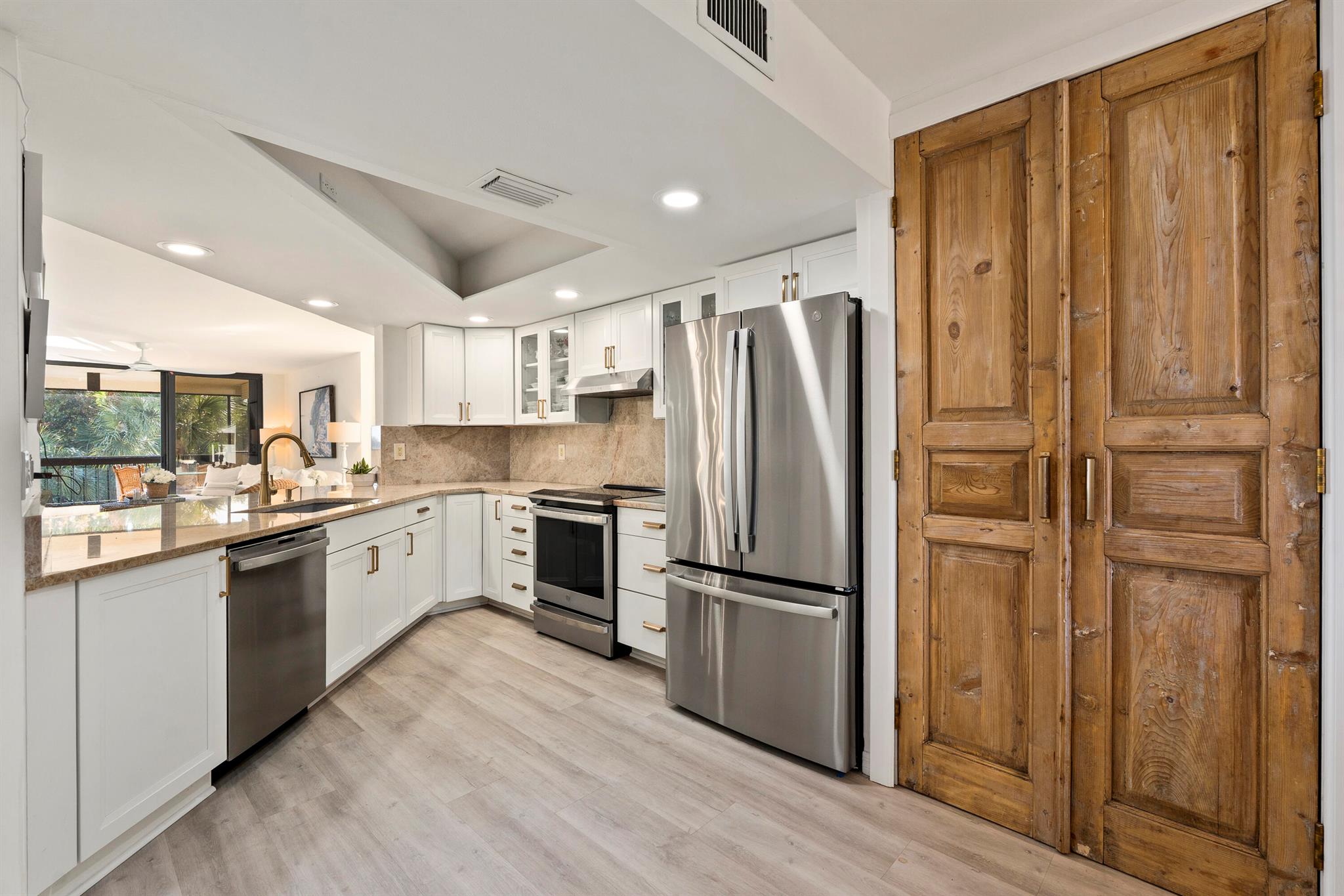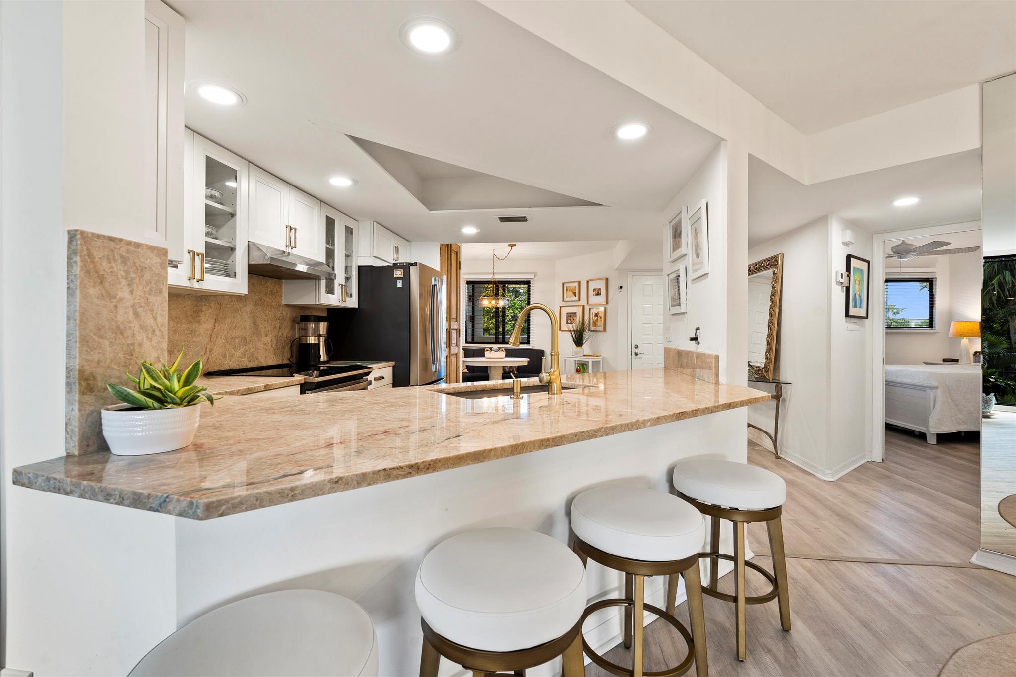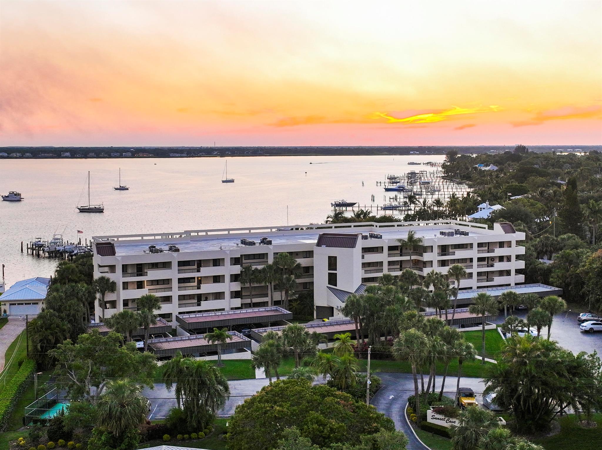 Calling all boaters and sunset lovers...Discover an exceptional opportunity to own a piece of paradise at Sunset Cove. This beautifully renovated third-floor corner unit offers ultra privacy, no neighbors beside you and breathtaking sunset views from your private screened balcony. This two-bedroom condo features a spa-like, fully updated master bath, a renovated kitchen with custom antique doors, newer AC & impact windows. Built with solid concrete construction, this pet-friendly condo ensures peace and tranquility. Perfect for boating enthusiasts, enjoy direct water & ocean access from the community marina with boat slips available for boats up to 38 feet. The community boasts a waterfront pool, covered parking, and guest spaces.
