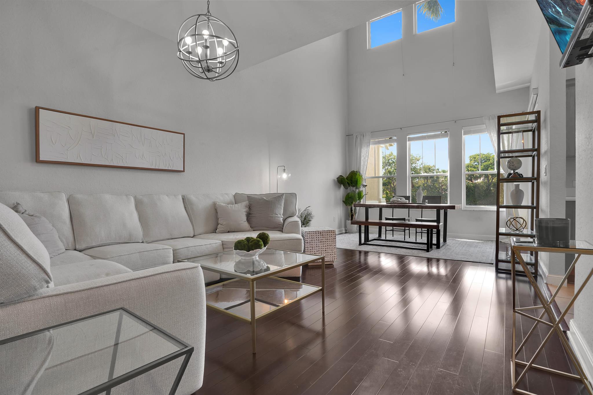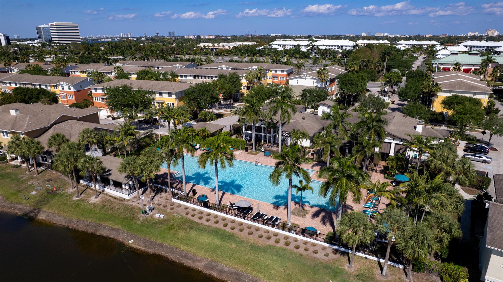 Gated waterfront townhome end-unit. Two story with soaring ceilings and lakeside patio with water view, 2 car garage and impact windows. Olympic size pool, 24/7 full gym & resort-style clubhouse. Only 5 minutes from downtown West Palm and under 5 miles to beautiful ocean beaches. Fontana model features 2-car garage, 3 bedrooms, 2.5 bathrooms, 10-foot ceilings, 2nd floor loft, laundry room & generously sized bedrooms. Nearby guest parking. Monthly HOA fee: Cable TV, internet, water, trash, gym, pool, aerobics room, landscaping & guard gate entry. Pet friendly community. Close to: Whole Foods, Target, Palm Beach Outlets, PBI Airport. Unparalleled convenience. Cityside was recently painted, adding to its overall appeal.