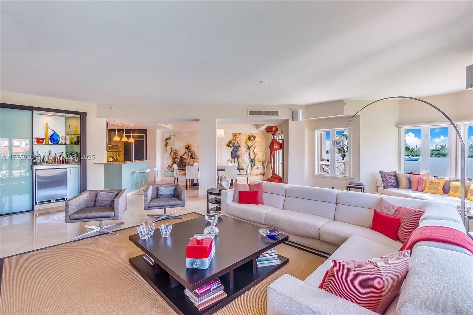Immerse yourself in refined living with this stunning 3-bedroom residence at Bayside, where breathtaking panoramic views of the Bay, Downtown Miami, and a world-class marina unfold before you. Enjoy seamless indoor-outdoor living with three private terraces, perfect for watching magnificent mega yachts glide in and out of the harbor, creating a dynamic and ever-changing waterfront spectacle." Designed for both comfort and style, this exquisite unit features open-concept living spaces adorned with chic contemporary furnishings and elegant marble flooring throughout. Fully equipped gourmet kitchen boasts state-of-the-art stainless-steel appliances, while a custom bar and dedicated office/den add both functionality and sophistication.