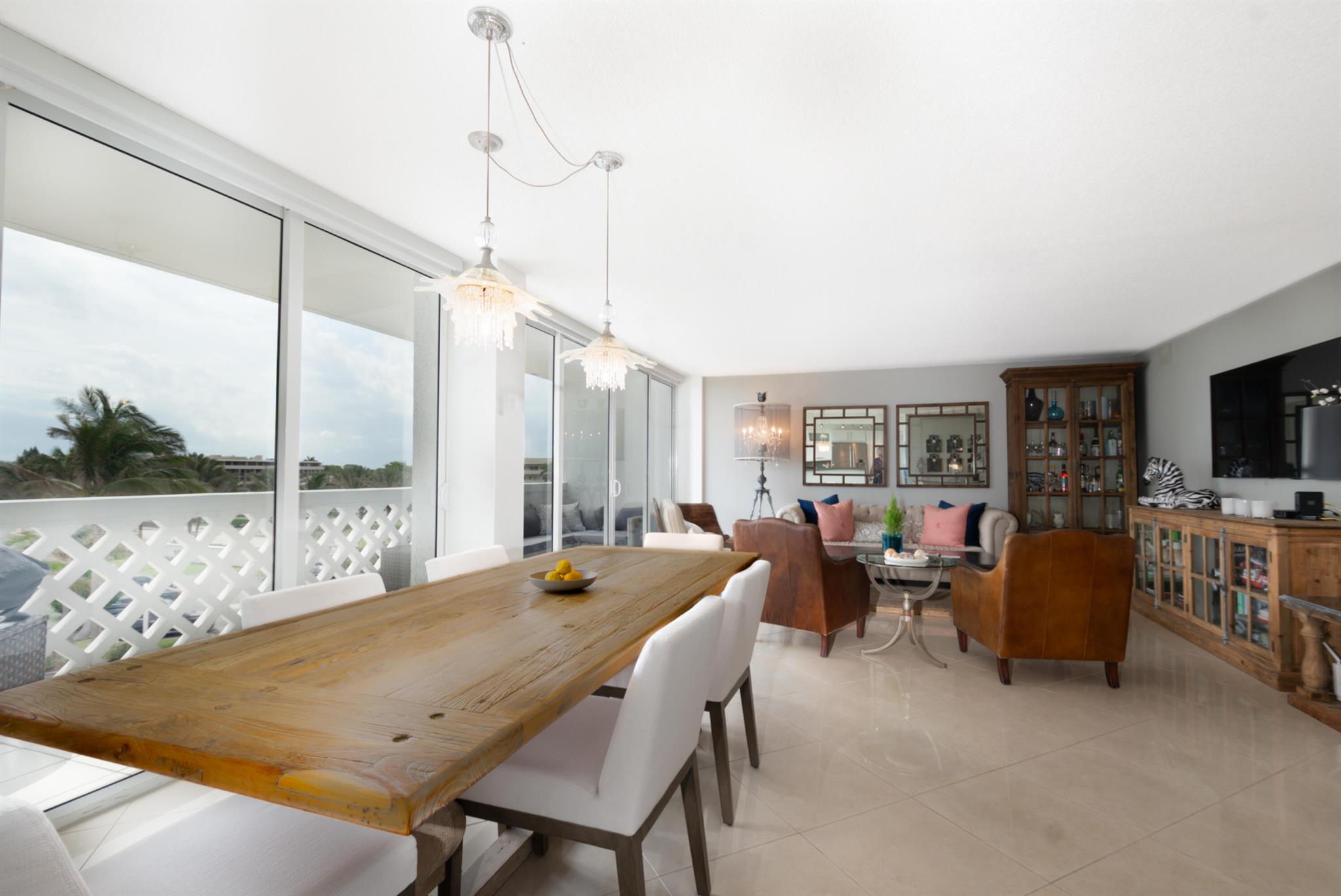 Discover the epitome of upscale living in this beautifully updated residence, echoing the sophisticated style of Restoration Hardware. The home features a reimagined gourmet kitchen that maximizes space and opens to the dining room, for flow & connnectivity. Daylight fills the space through a continuous wall of impact windows, creating a luminous environment throughout. Floors are luxuriously appointed with 24x24 porcelain tiles, macadamia flooring, and plush carpeting. Enjoy the convenience of new roller blinds throughout, including extra blackout blinds in bedrooms for serene sleep. The laundry area is equipped with high-capacity appliances and wine refrigeration. Privacy is unparalleled with only two units per floor. The building boasts a unique pool and deck area on the sand,