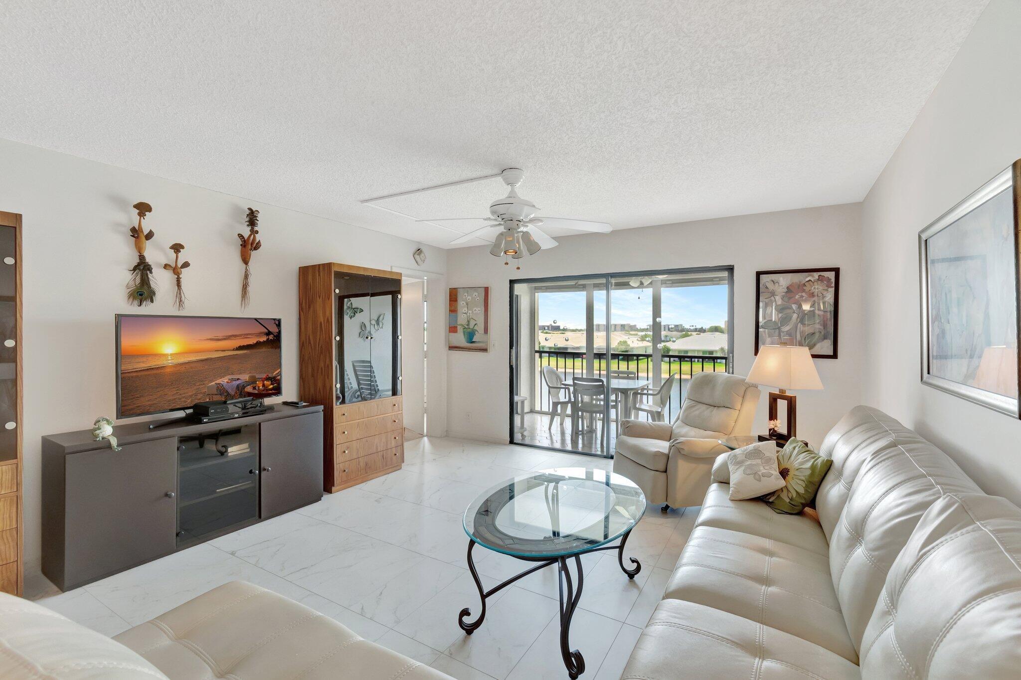 Immerse yourself in the vibrant lifestyle of Huntington Lakes, an exceptionally Active Adult Community. This third-floor unit at 14425 Strathmore Ln #304, Delray Beach, Florida, presents an enviable blend of comfort and convenience.Upon entry, ceramic tile flooring guides you through the welcoming layout--light streams in through generous windows, bathing the interior with warm Florida sunlight. The functional kitchen has beautiful cabinetry, a convenient pantry, and a pleasant eat-in area to enjoy casual meals.The featured room--a sizeable master bedroom--is a sanctuary of tranquility. A plush carpet provides warmth and softness underfoot, while a roomy walk-in closet affords plentiful storage.