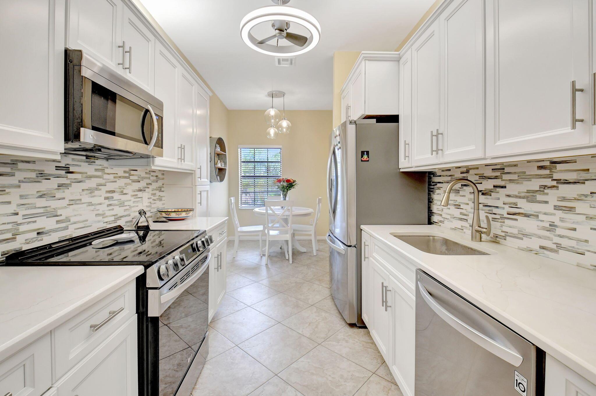 BUYER CANCELED FOR PERSONAL REASONS. WHAT A LOSS FOR THEM AND A GAIN FOR YOU! Are you looking for a serene, spacious and comfortable living space? Look no further than this stunning coach home with a sparkling lake view. This property offers convenience and luxury with easy walking access to the clubhouse, where you can enjoy the cafe, fitness center, various shows and activities. With 1,724 square feet of living space, vaulted ceilings and split floor plan, attached one-car garage and driveway, this beautiful home is the largest model in Platina. The kitchen has been completely renovated with all new cabinets and drawers, all new appliances (2 years young), ample storage, and a cozy breakfast area. All new and modern fans and light fixtures throughout.
