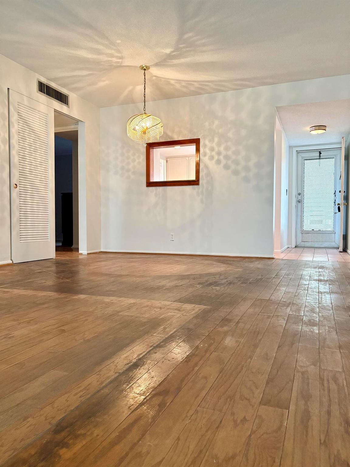 Take advantage of this opportunity to create your dream condo in the lovely 55+ community of Boundbrook! Centrally located in West Palm Beach, this freshly painted home features hardwood floors throughout, 2 spacious bedrooms, and 1 bathroom. The primary bedroom offers a walk-in closet and large sliding doors that lead to an extended back porch/sunroom, creating the perfect indoor-outdoor living space. As you enter, you'll find a bright kitchen with a window over the sink for natural light. Additional highlights include a washing machine, ice-cold HVAC, and room for storage. Conveniently located close to parking, the community pool, and the clubhouse for your enjoyment. With tons of potential and a MOTIVATED SELLER, this is a wonderful opportunity to bring your vision to life!