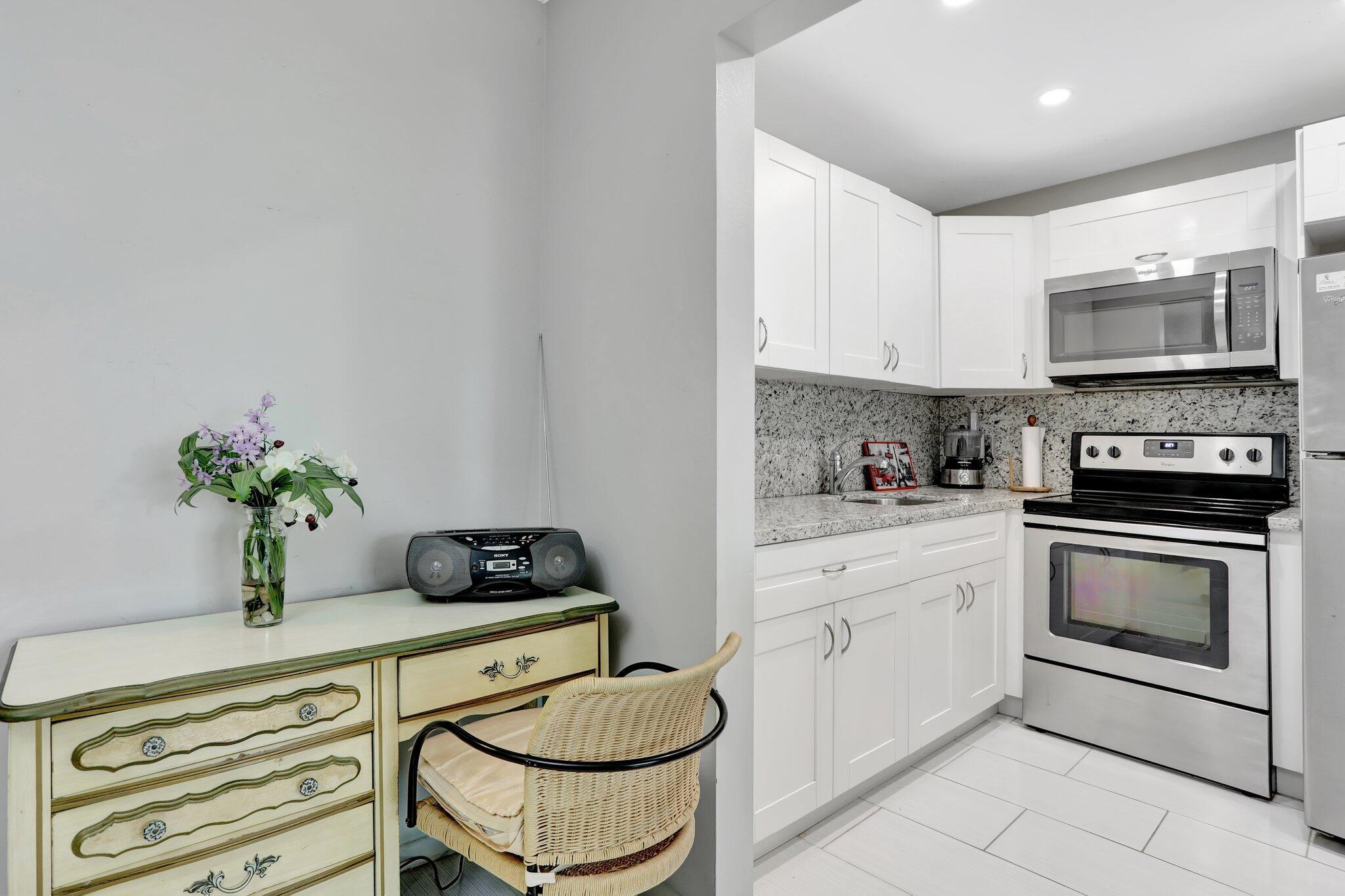 A tastefully updated 1-bedroom, 1.5-bath condo nestled in the highly sought-after Berkshire B building of Century Village East, Deerfield Beach. This light and bright unit, white shaker cabinets, granite countertops and backsplash, and stainless steel appliances. Ceramic tile flooring runs throughout the space. Enclosed patio complete with hurricane shutters. New A/C in 2022. Vibrant 55+ gated community offering resort-style living with free shuttle transportation, a state-of-the-art clubhouse, fitness center, classes, clubs, live entertainment, and even free movies. Take a dip in the pool or join friends for community events - all within walking distance of your front door! Deerfield Beach is a charming coastal city known for its pristine beaches, award-winning restaurants, shopping.