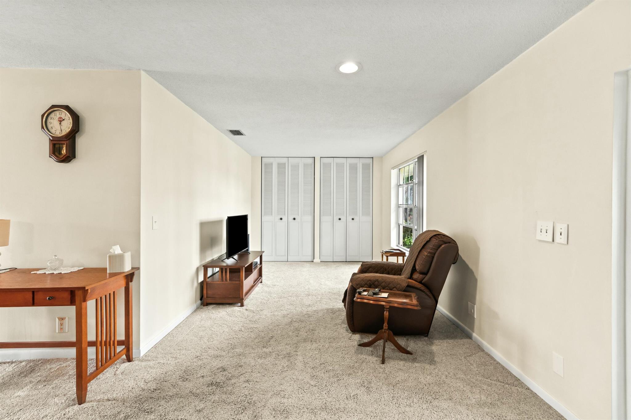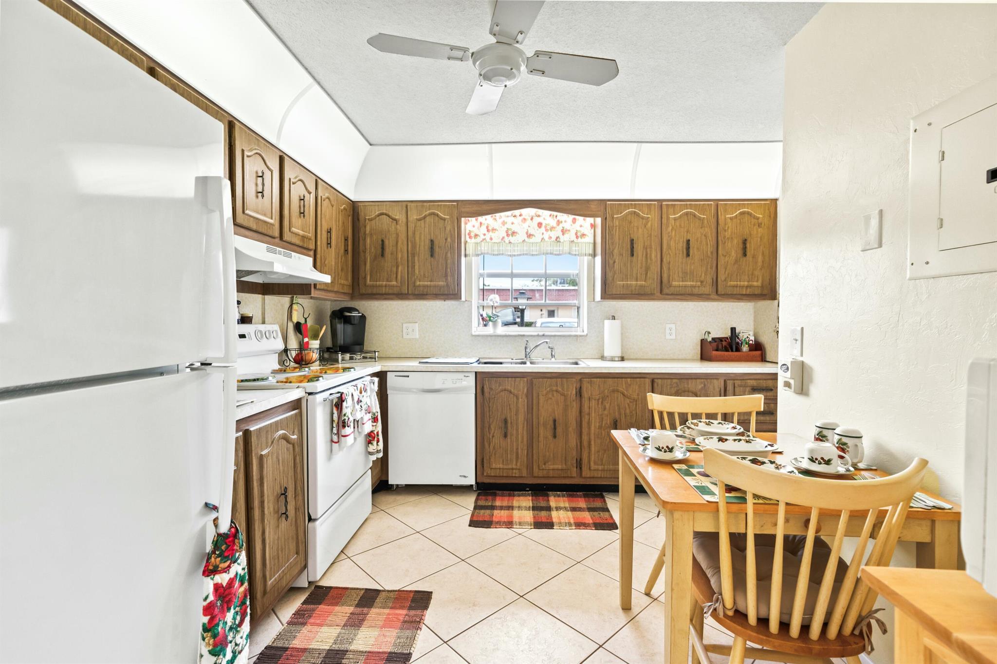 Freshly painted, needs flooring updated. 1 story villa style condo in Covered Bridge. Can be 1 or 2 Bedrooms (A wall can be added). Nice & spacious floor plan. Both toilets are newer. Primary Bath has shower. Enclosed Fla rm/patio with garden views. Plus you can have addl. patio open to enjoy outdoor space in back. NEW ROOF 2024. Seller paying the assessment. Covered Bridge Community & this property are in a perfect location. Fine dining, great shopping, PBIA, & even the Beach! The assoc fee includes Bldg Ins, Cable, internet/wifi, Lawn care, water, sewer, exterior bldg maintenance. 2 pools, walk path, tennis, pickle ball, clubhouse, library, billiards, activities & more. The Community is on Fire Dept Grid in case of Storm Power Lo