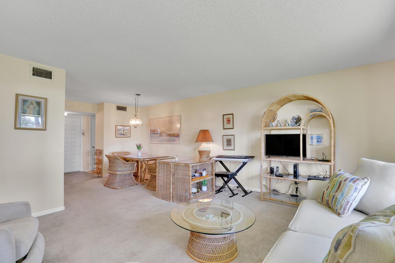 Bring your decorator and contractor to this 2nd fl unit in the 12 building of the Conquistador complex to create the home or vacation getaway of your dreams. You have an oversized living and dining area, 2 large bedrooms and a enclosed screen porch over looking the well tended green space. Whether you will use it for a vacation home or a permanent residence, this 55+ vibrant community has all the amenities that you will need: pools, clubhouse, tennis, pickleball to name a few or take a stroll out on the dock and watch the boats go by on the river. You are just steps away from the Sailfish Sands Municipal Golf Course. So bring your ideas as it won't take much to get this unit up to par.