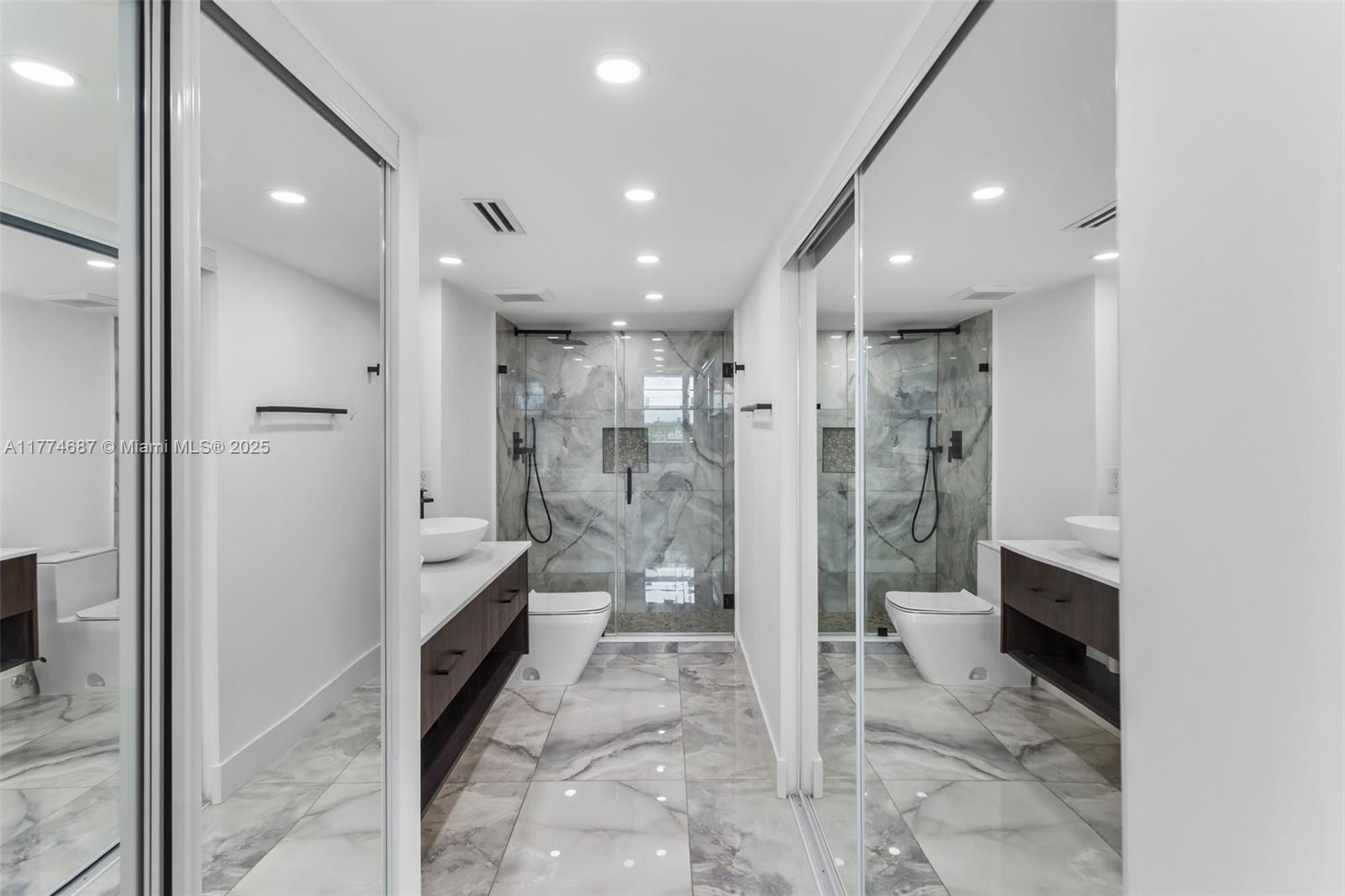 Welcome to Miami Beach! This beautifully renovated unit at Arlen Beach is located in the prestigious Millionaire's Row. 1-bedroom, 2-bathroom apartment offers 824 SQFT of modern elegance, featuring sleek porcelain floors and an expansive balcony with breathtaking views of the intercoastal. Inside, the open layout and high-end finishes create a space perfect for relaxing or entertaining. The master suite is spacious and complemented by a large spa-like bathroom. Residents of this building enjoy access to great amenities, including a pool, fitness center, game room, clubhouse, media room, theater, an on-site restaurant, and even a hair salon! Includes 1 assigned parking space. Don’t miss out on this incredible opportunity to live at Arlen Beach! PROPERTY IS ALSO FOR RENT.
