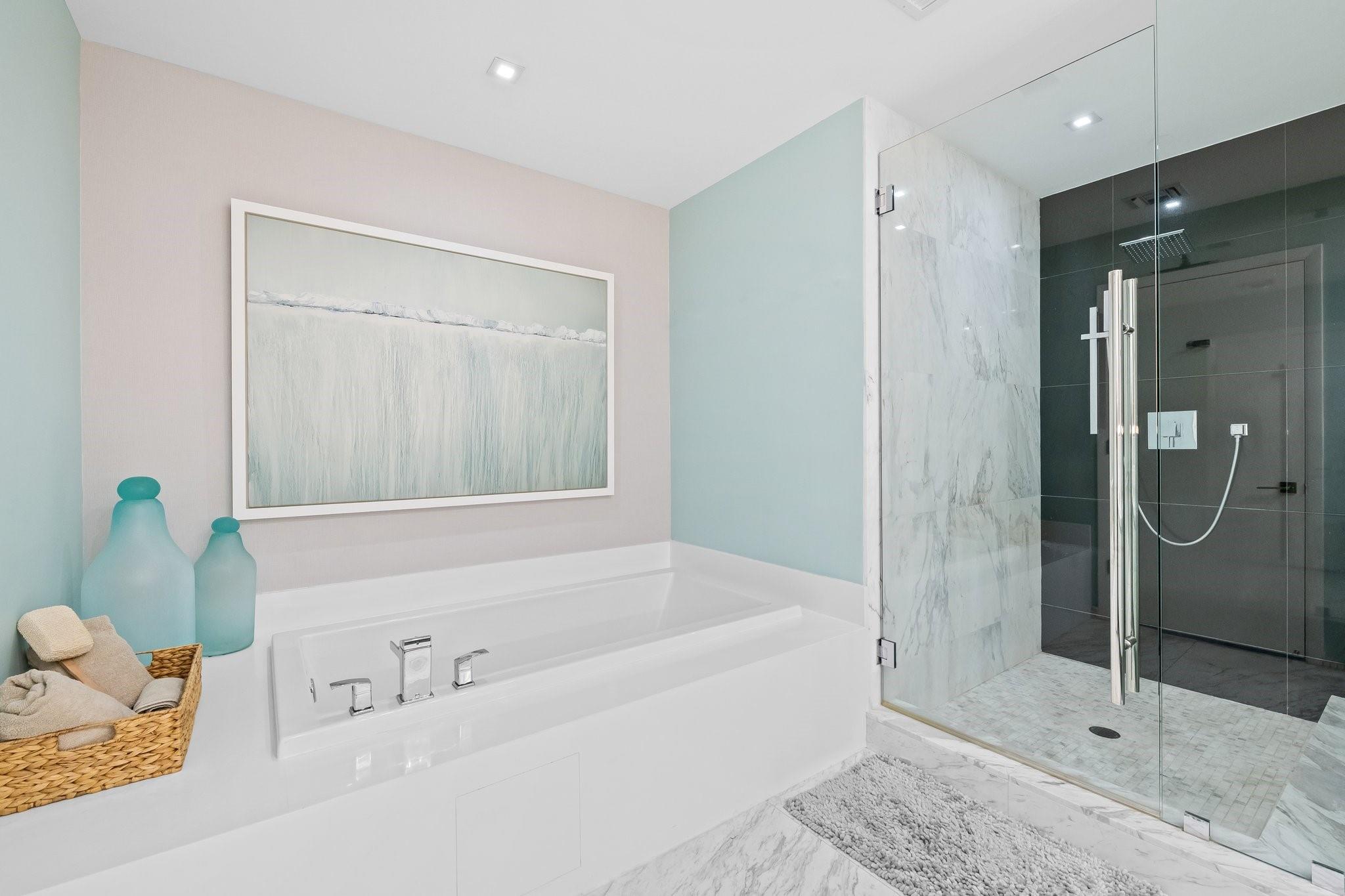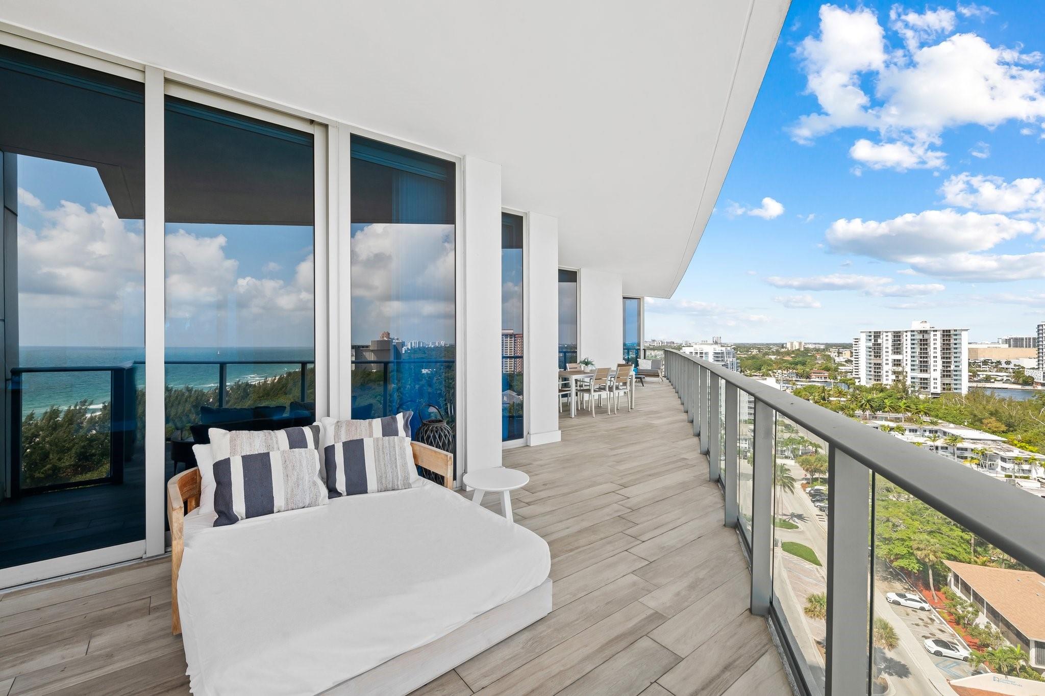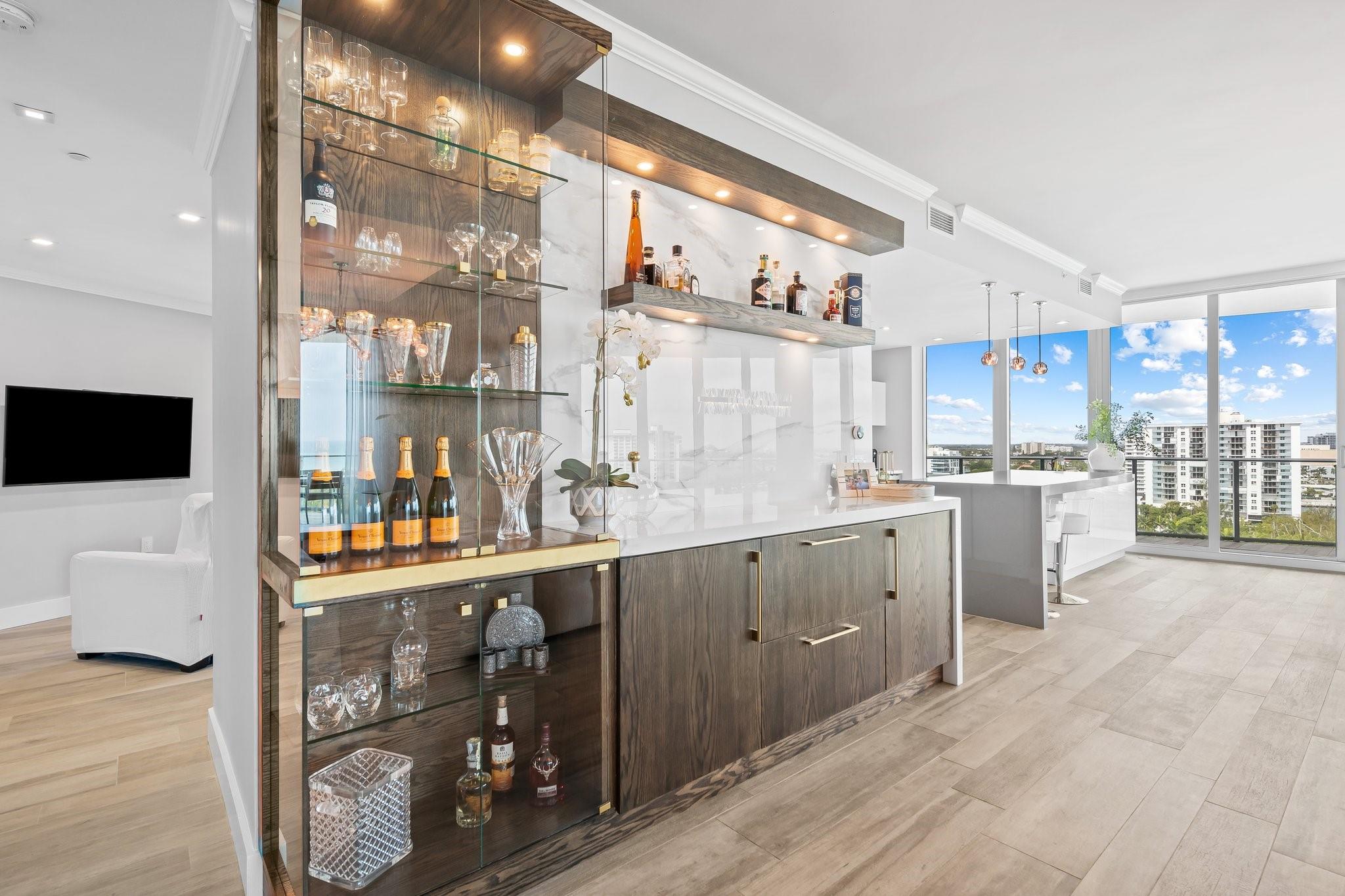 Welcome to the most unique unit at the ultraluxe Paramount. 3 bedroom floorplan inclusive of a Den is only 1 of 2 in the building. Upon immediate entry from your private elevator, the tailor-made entryway doors lead you into the most customized space. Crown molding+millwork punctuate the unit adding design interest other units do not have. The bespoke built-in bar ties into the kitchen aesthetic perfectly. Naturally woven grasscloth wallpaper warm up the unit even more, making a canvas suitable to any type of furnishing style. NE Corner of the building overlooks the ocean and Bonnet House Gardens with no availability for development next door. Location provides much needed shade in the hot summer months. Stunning Ocean views in the day, intracoastal & city views at night from rear balcony
