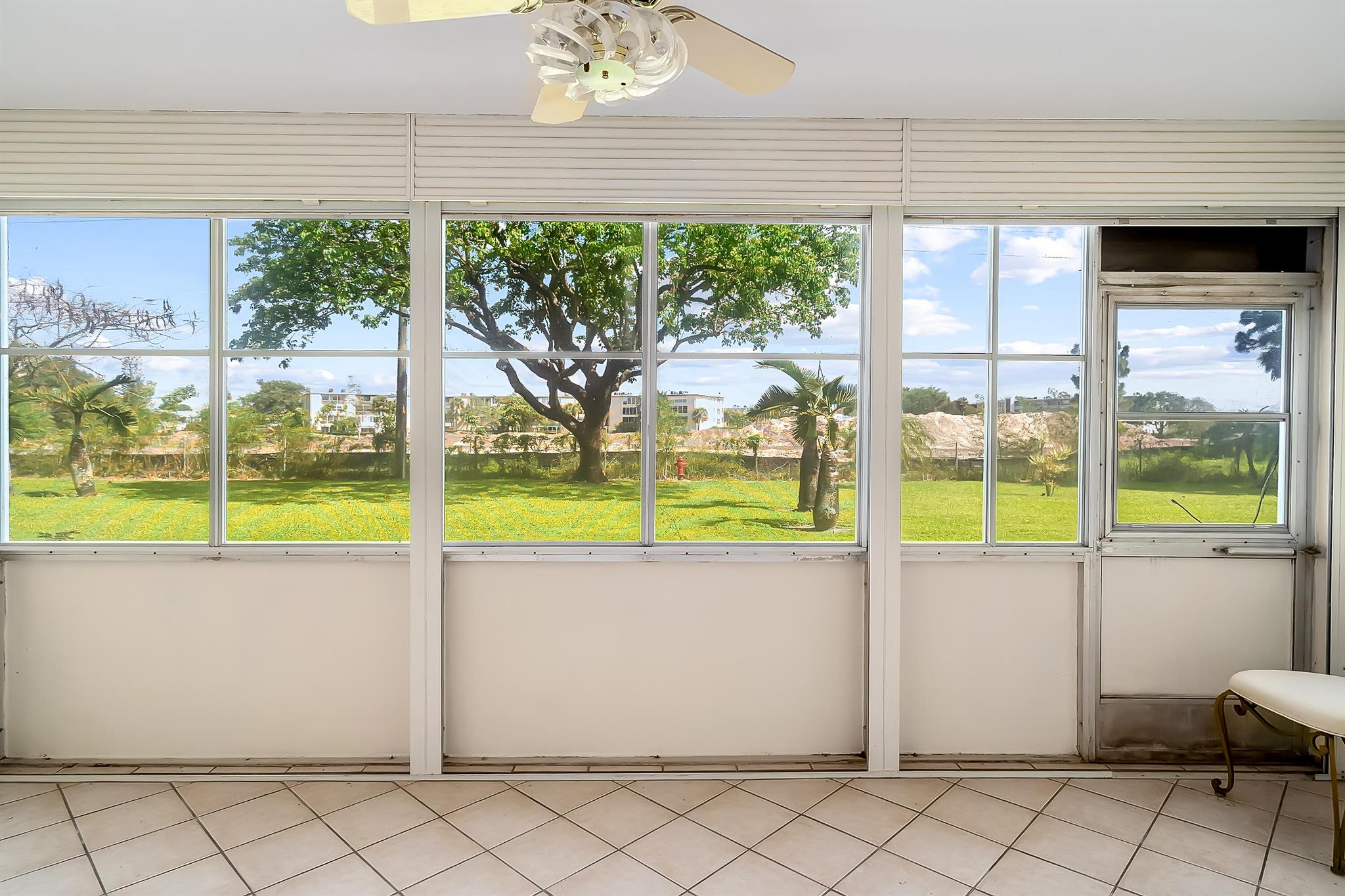 Very clean and bright 1BR, 1.5 bath condo on the 1st floor of a 4 story building in Century Village 55+ community. Kitchen and bathrooms were updated and the apartment is ready for the new owner to enjoy. Furniture is included in the sale. Large, almost 100 sq ft porch with windows. There are 2 laundry rooms on each floor. No renters allowed in this building. Century Village is one of the best 55+ communities in Florida, with resort style living, lots of amenities, including over a 1000 seat clubroom to watch shows and movies, indoor and outdoor swimming pools, courtesy bus service to get around community and even outside, medical facilities, beauty shop, tennis, boating and more. Close proximity to PBI airport, restaurants, shops and beaches.