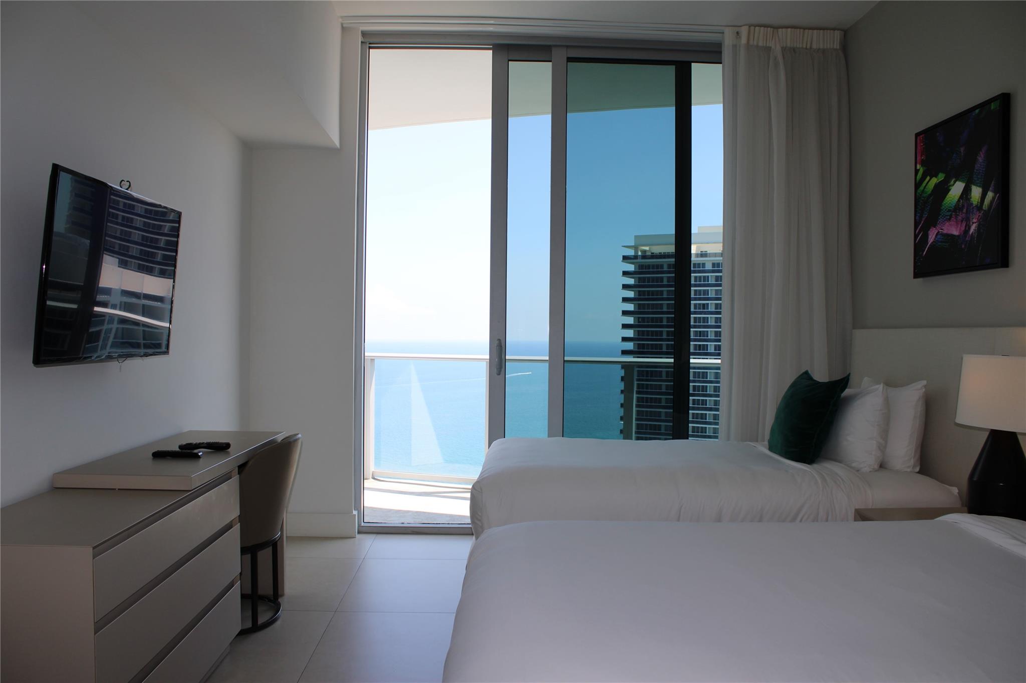 Experience luxury living in this beautifully designed 2-bedroom, 2-bathroom condo on the 40th floor offers panoramic views of both the ocean & the vibrant cityscape. Whether you're enjoying the sunrise over the Atlantic or the dazzling city lights at night, this condo is a true sanctuary in the sky. The spacious, open concept living area is filled with natural light, highlighting the sleek modern finishes & premium materials. The gourmet kitchen is dream, featuring top-of-the-line appliances, custom cabinetry & ample counter space. The master suite boasts stunning views and an en-suite bathroom including a glass-enclosed shower, each bedroom has an en-suite bathroom for added privacy. Unit at LYFE BEACH RESORT with NO Rental restrictions.