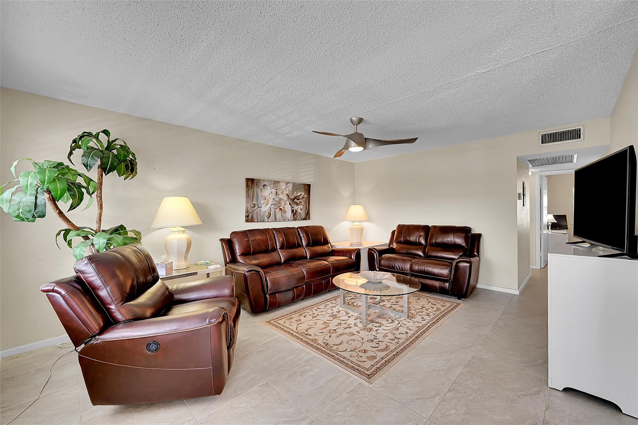 Tastefully furnished 2BR/1.5BA condo in Century Village, Deerfield Beach—just bring your personal items! Features include tile floors, updated kitchen, walk-in closet, newer A/C and appliances, screened patio w/storage. Located in desirable Upminster G Garden apartment with new roof, gutter system and building patio and barbecue area. Maintenance was just reduced. Enjoy resort-style amenities: Luxurious Clubhouse includes a1600-seat theater, meeting rooms, library, billiards, stained glass workshop, indoor pool, banquet hall and fitness center. Outside includes pools, sundeck, restaurant, putting green, tennis, pickleball, shuffleboard, horseshoes, BBQs and more. Plus, satellite pools, 24-hr gated security, courtesy buses, clubs and classes. Close to beaches, parks, dining and shopping!