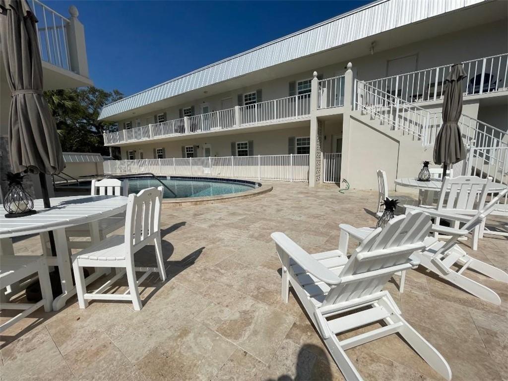 East of A1A, 2 blocks from the best beaches in Indian River County! 2 bed/ 2 bath first floor end unit. Breathtaking floors, adorable kitchen, plantation shutters, impact windows. Pass some margaritas out your kitchen window to your guests as they relax by the recently refinished pool space. Best opportunity around(the last sale went for 440k)- walking distance to restaurants/beaches or a short bike ride to popular central beach. Start living the beach lifestyle now or rent it out for a fantastic investment- Do not miss out on this opportunity!