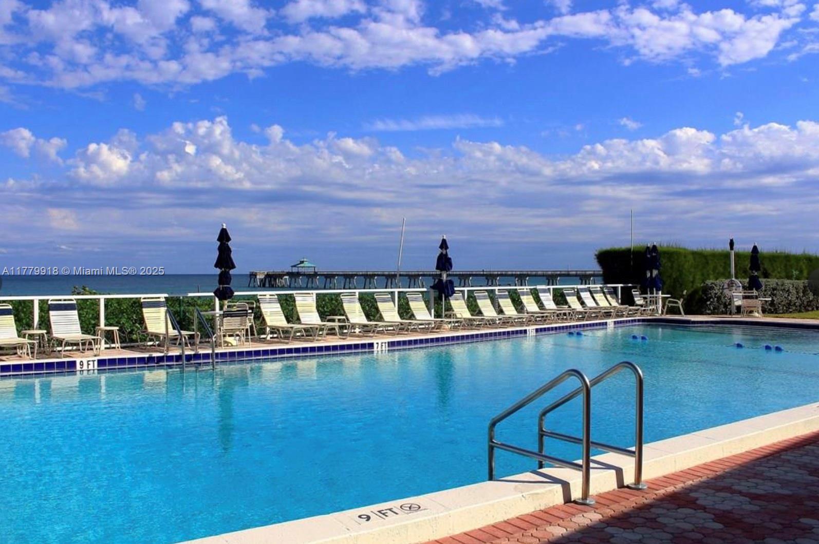 Direct Ocean views - 1 Bedroom/ 1 1/2 Bath unit has granite countertops, full size washer/dryer in unit, and high impact windows and doors. The building is on A1A and there is a beach clubhouse on the beach with a heated pool that overlooks the ocean. Private Beach Access, 24 Hour Security, Fitness Center & Across the Street From Shops, Restaurants & short walk to the pier. Covered parking. Investors only, unit is rented until 6/9/2026.
