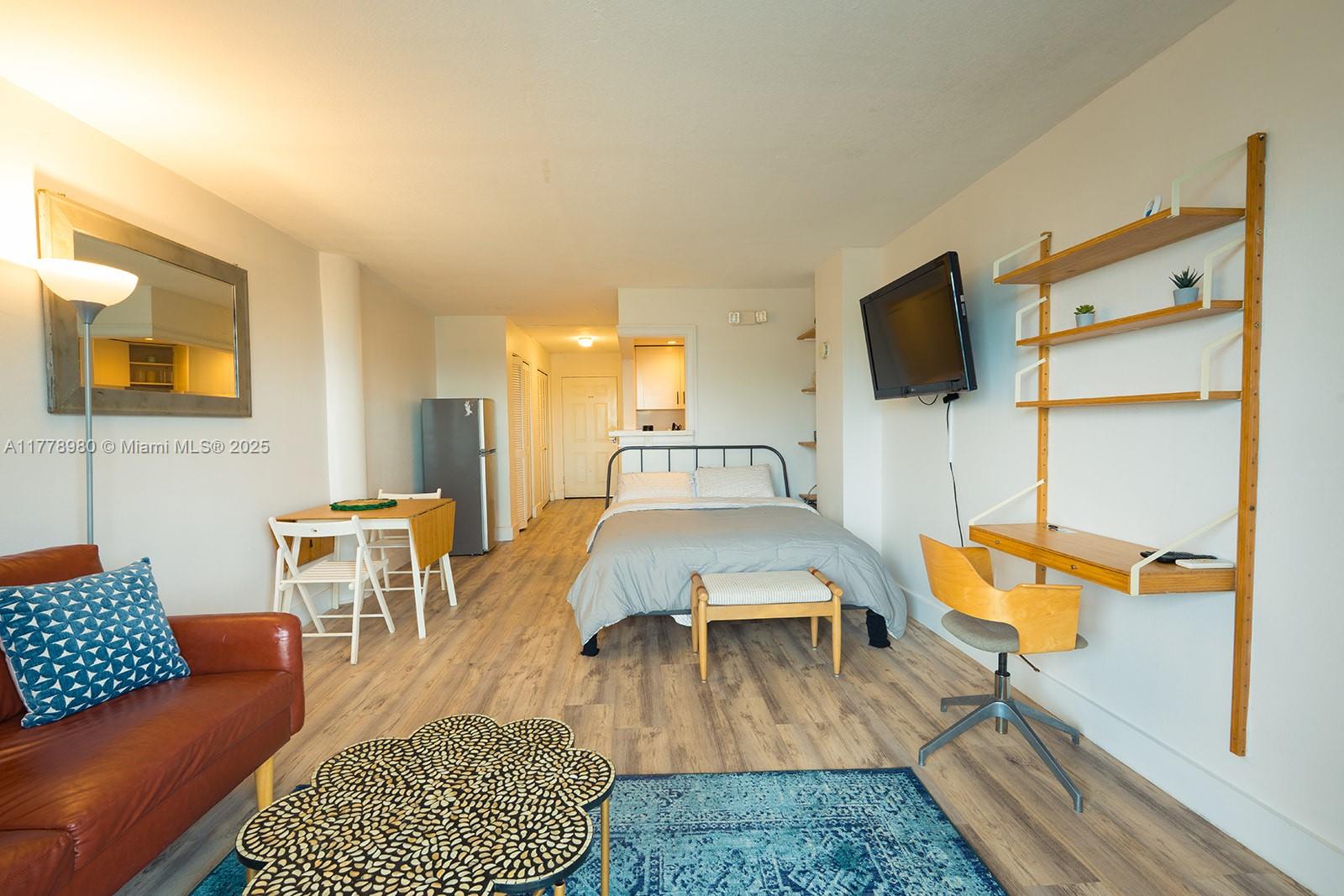 Beautiful first floor studio in the North Bay Village area of Miami. The kitchen has been updated with white hardwood cabinets and stainless steel appliances throughout. The unit has an open balcony facing the pool deck. One of the few buildings in North Bay Village that allow 30-day rentals and short-term rentals (Airbnb & Vrbo ) with a certificate of use license.