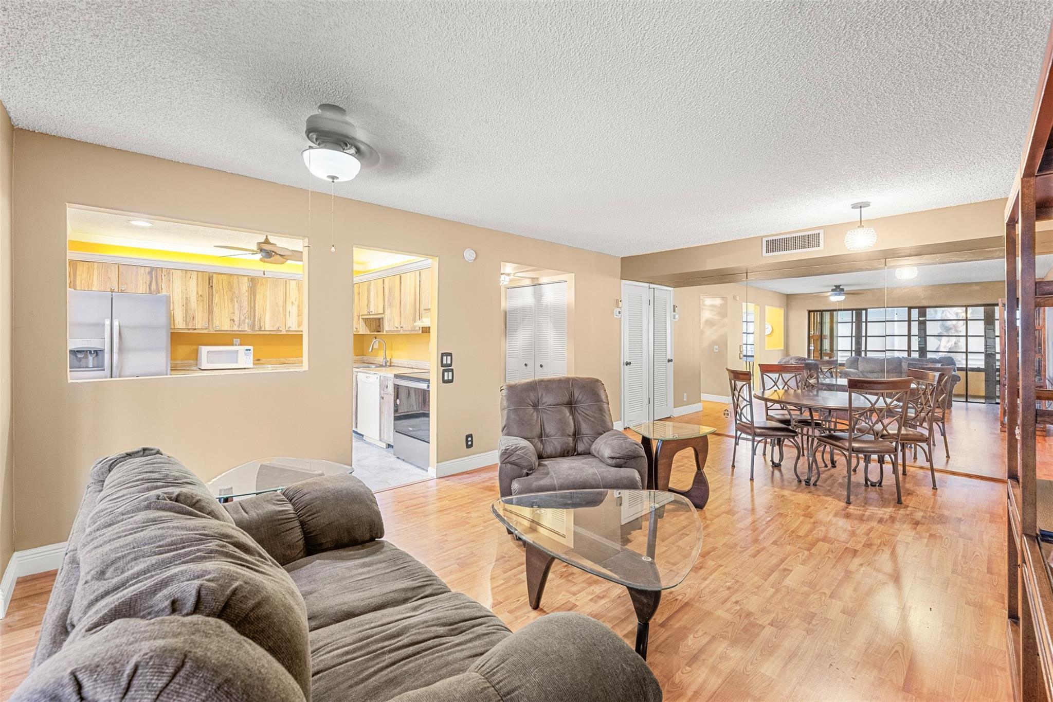 Great value on this second floor, 1 bedroom, 1.5 bathroom condo in Kings Point Golf and Country Club, a 55+ Gated Community! Welcome to your ideal seasonal getaway or retirement haven! Features an in-unit washer/dryer, updated appliances - refrigerator, and stove, large screened-in patio, laminate flooring, brand NEW full bathroom renovation, and more! King Point includes endless amenities such as golf, tennis courts, pickleball, 2 clubhouses, 6 pools (including 2 indoors), a gym, library, and a 1200-seat theater, there's something for everyone! Closing costs credit available from seller! Motivated Seller.