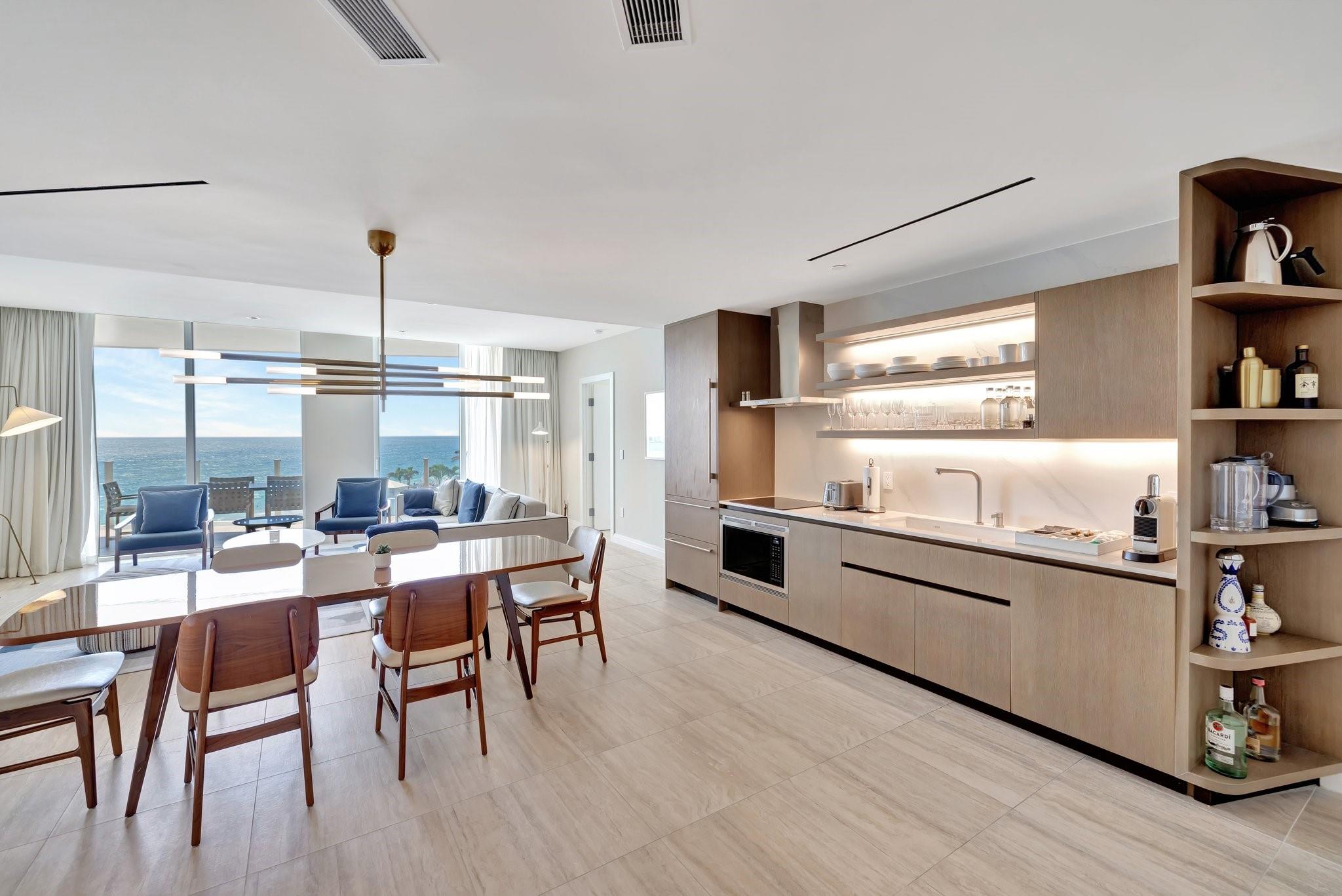 DIRECT OCEANFRONT 3 BEDROOM PLUS DEN FURNISHED and Designed by Tara Bernard of London. South East exposure located over the serenity pool for relaxation. 24 hour in-room dining available, housekeeping available and 3 restaurants on-site for your favorite culinary experience. In addition to the exemplary lifestyle offered within your residence the community offers several dining options. You can also enjoy pool side dining and drinks at either of our two private heated pools as well as private cabana butler service. This Five Star premier building also offers a Four Seasons full service spa and state of the art fitness facility with fitness concierge.