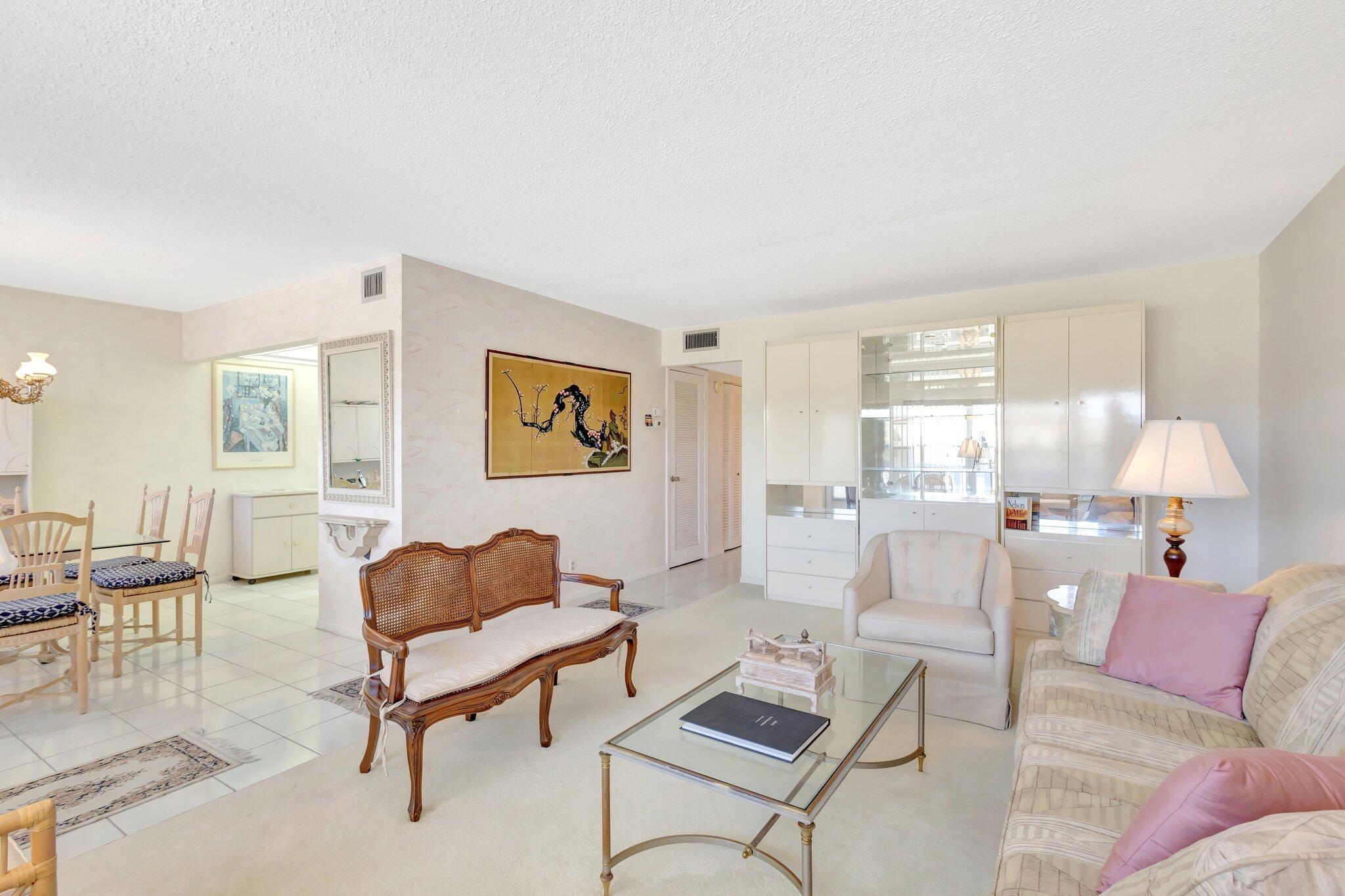 DISCOVER RESORT STYEL LIVING IN THIS EXTRA LARGE SECOND FLOOR CONDO IN THE SOUGHT AFTER WELLINGTON F ASSOCIATION. LUXURY BUILDING WITH NEW ROOF, ELEVATOR ,TRASH SHOOTS AND 2 LAUNDRY ROOMS ON EVERY FLOOR. THIS COMFORTABLE 2 BEDROOM 2 FULL BATH UNIT OFFERS NEW HOT WATER TANK, CENTRAL AIR AND IS FULLY FURNISHED AND MOVE IN READY. ENJOY THE CONVENIENCE OF 2 PRIVATE POOLS. Assigned parking spot plus visitor parking available; local bus for errands/shopping both within & outside The Village; COME AND ENJOY RESORT STYLE LIVING IN THIS GATED COMMUNITY FOR ADULTS 55+. Clubhouse with theater, shows, movies, craft and card rooms, billiards, aerobics, yoga, and dance classes. GREAT LOCATION: close to shops, restaurants, PBI airport and beaches.
