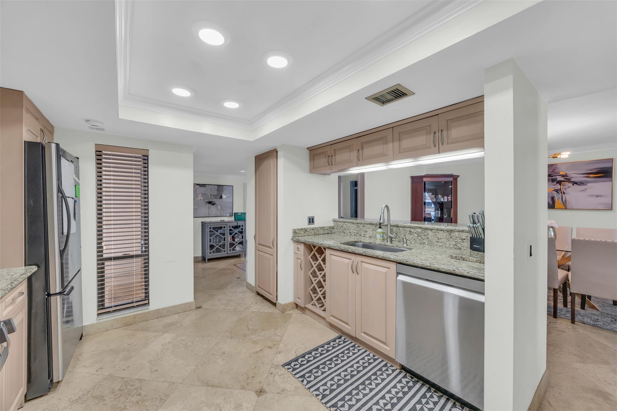 Welcome to easy, breezy coastal living in this rare low-rise 3bd/3ba beachfront condo located just steps from the sand and surf — and yes, pets are welcome! Tucked away East of A1A, this home offers the perfect blend of privacy and convenience with a private entrance and covered parking, giving you the feeling of a single-family home right by the ocean. Wake up to sunrises over the Atlantic. Inside, you'll find upscale finishes including granite countertops, travertine flooring throughout, and open layout that invites in plenty of natural light. The in-unit laundry, generous storage space Close