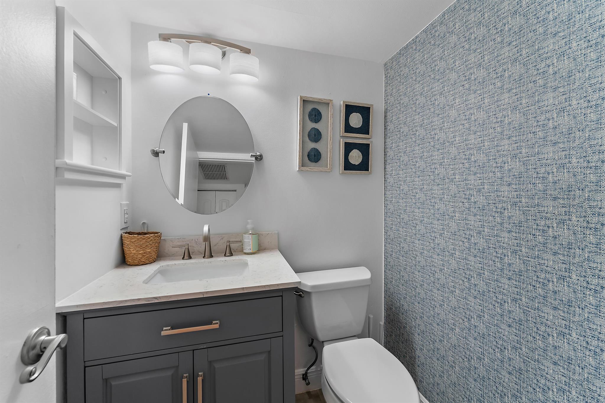 Located in Jupiter Ocean & Racquet Club, this 935 sq ft 1-bedroom, 1.5-bath condo offers an updated and move-in-ready coastal living experience. Recent enhancements include a completely refreshed kitchen featuring refaced cabinetry, quartz countertops, and stainless steel appliances. The open living area includes a new sleeper sofa and an added bar with beverage center, providing flexibility for both daily living and entertaining. The home showcases luxury vinyl flooring throughout, a walk-in shower in the upgraded full bath, refreshed vanities in both bathrooms, and a spacious walk-in closet in the bedroom. Other functional upgrades include impact windows and sliders, a 2021 roof, 2021 AC, and a 2019 water heater. Enjoy your morning coffee on the peaceful, north-facing patio