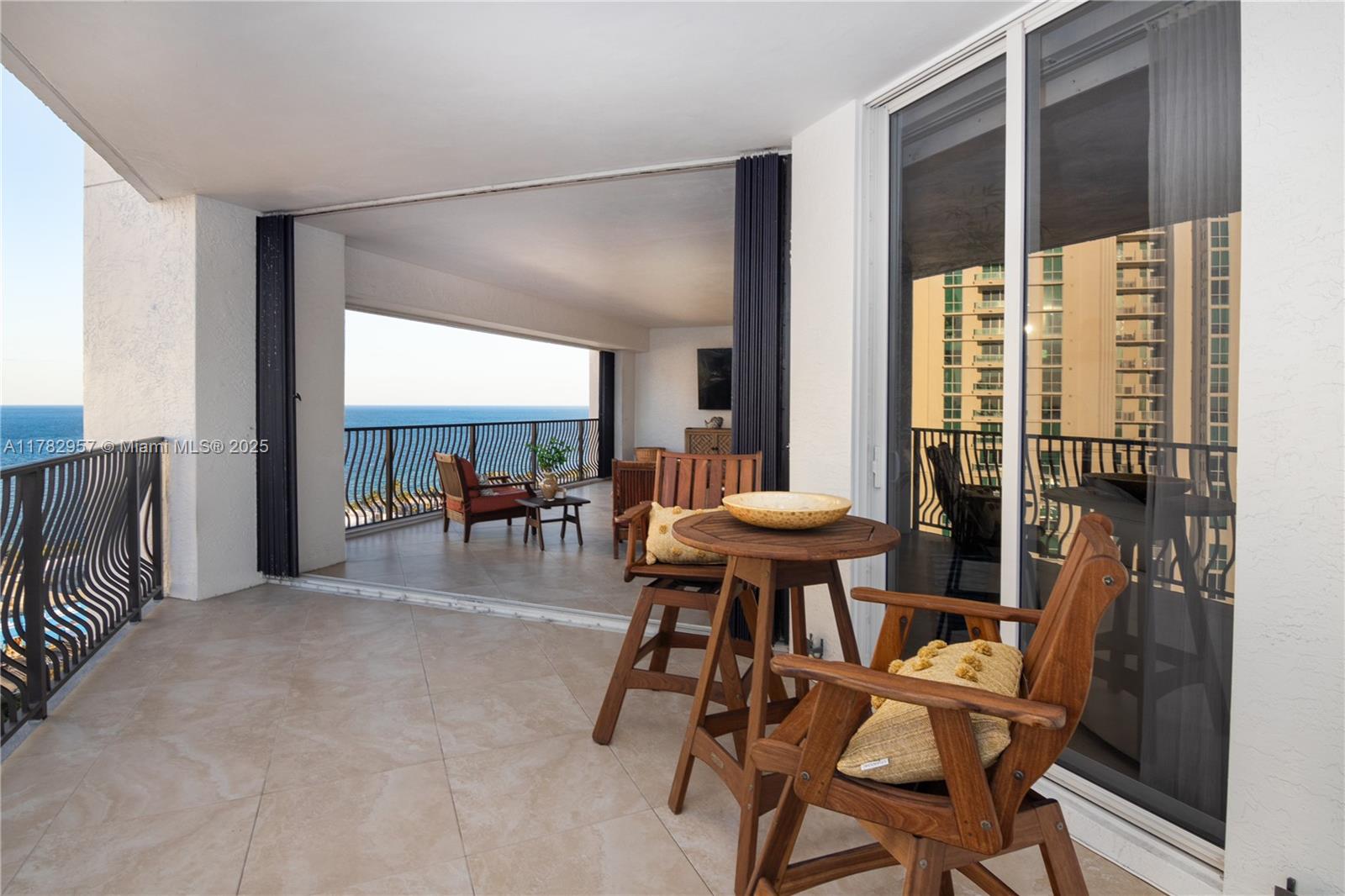 Stunning, One-of-a-Kind Residence Just Steps from the Beach! This fully renovated 2-bedroom + den condo boasts 1,990 sq ft of refined living space and an expansive 1,100 sq ft wraparound balcony with breathtaking ocean and Intracoastal views. The den, currently styled as a chic vanity/office space, adds versatility. Designer touches abound with custom fire glass entry doors, elegant bathroom mirrors, high-end finishes, and bespoke closets and cabinetry throughout. The open-concept kitchen is a chef’s dream, designed with luxury and function in mind. Floor-to-ceiling high-impact windows flood the space with natural light and frame postcard-worthy views. Located just a short stroll from the sand, this is coastal living at its finest