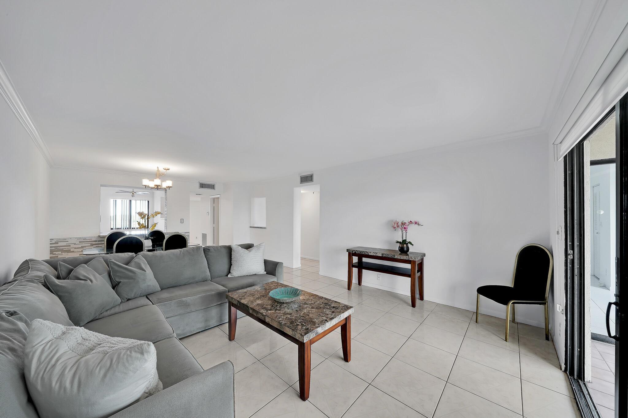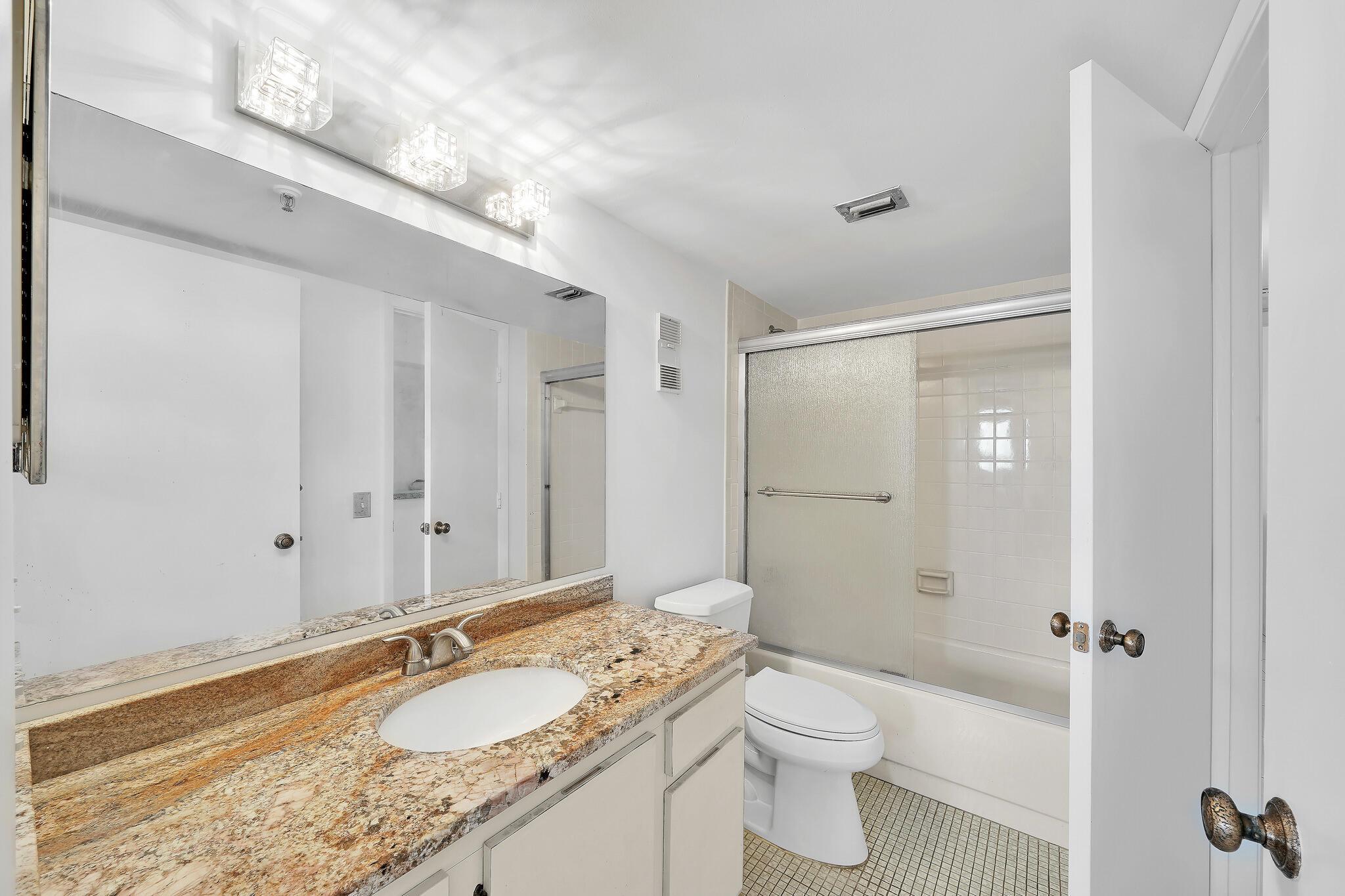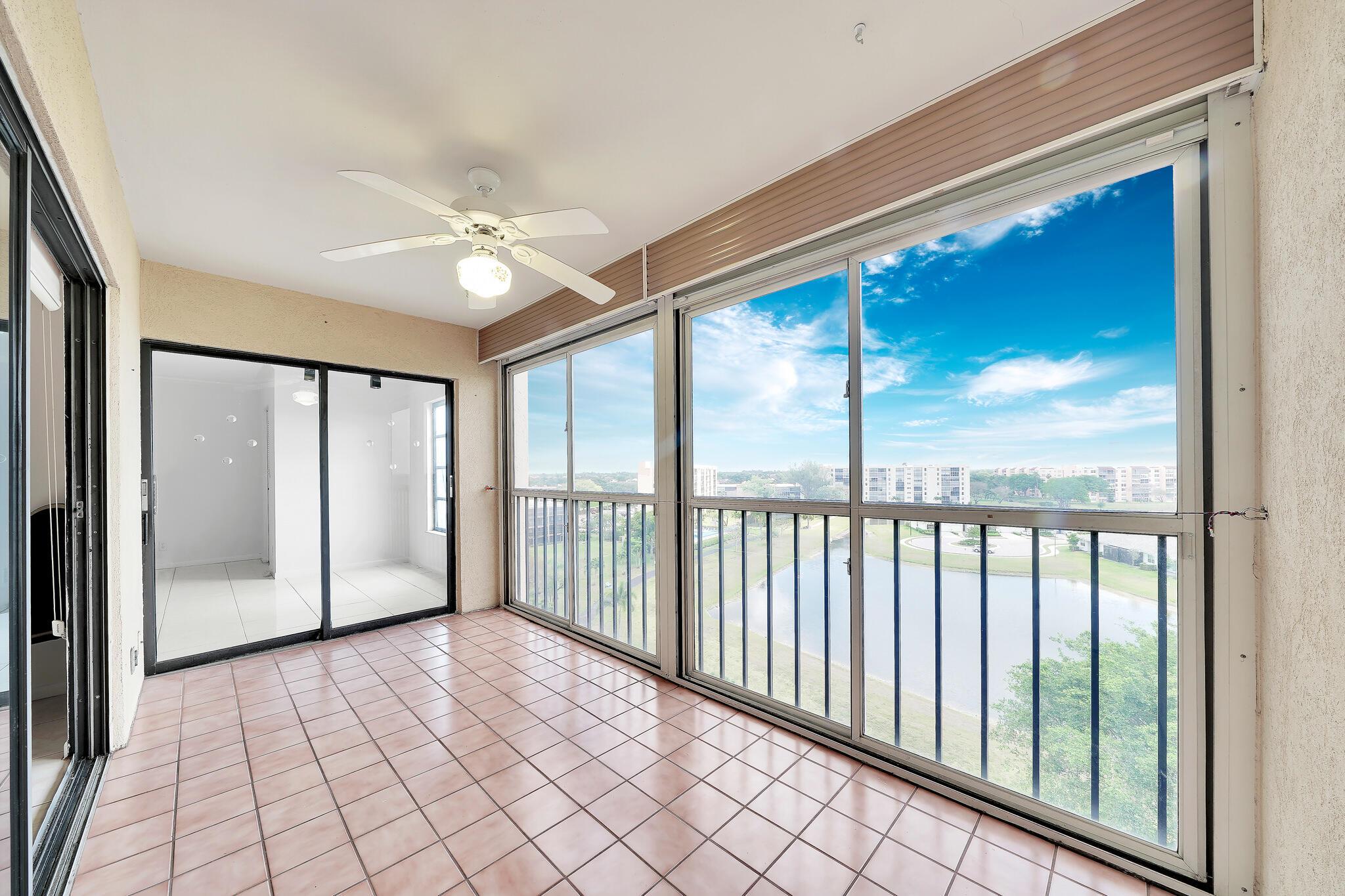 Don't miss this top-floor penthouse (8th floor), updated 2 bed, 2 bath condo in the desirable Huntington Lakes community with stunning water views. This bright, open-layout unit features ceramic tile floors, granite countertops, and a large eat-in kitchen. The spacious primary suite includes two walk-in closets and direct access to a screened, covered balcony shared with the living room. Partially furnished with in-unit laundry, ample storage, and an extra storage unit. The building has two elevators and is steps from the outdoor pool. Enjoy a newly renovated clubhouse with an indoor Olympic-size pool, theater, fitness center, game rooms, tennis, pickleball, and more. Resort-style 55+ living at its best!