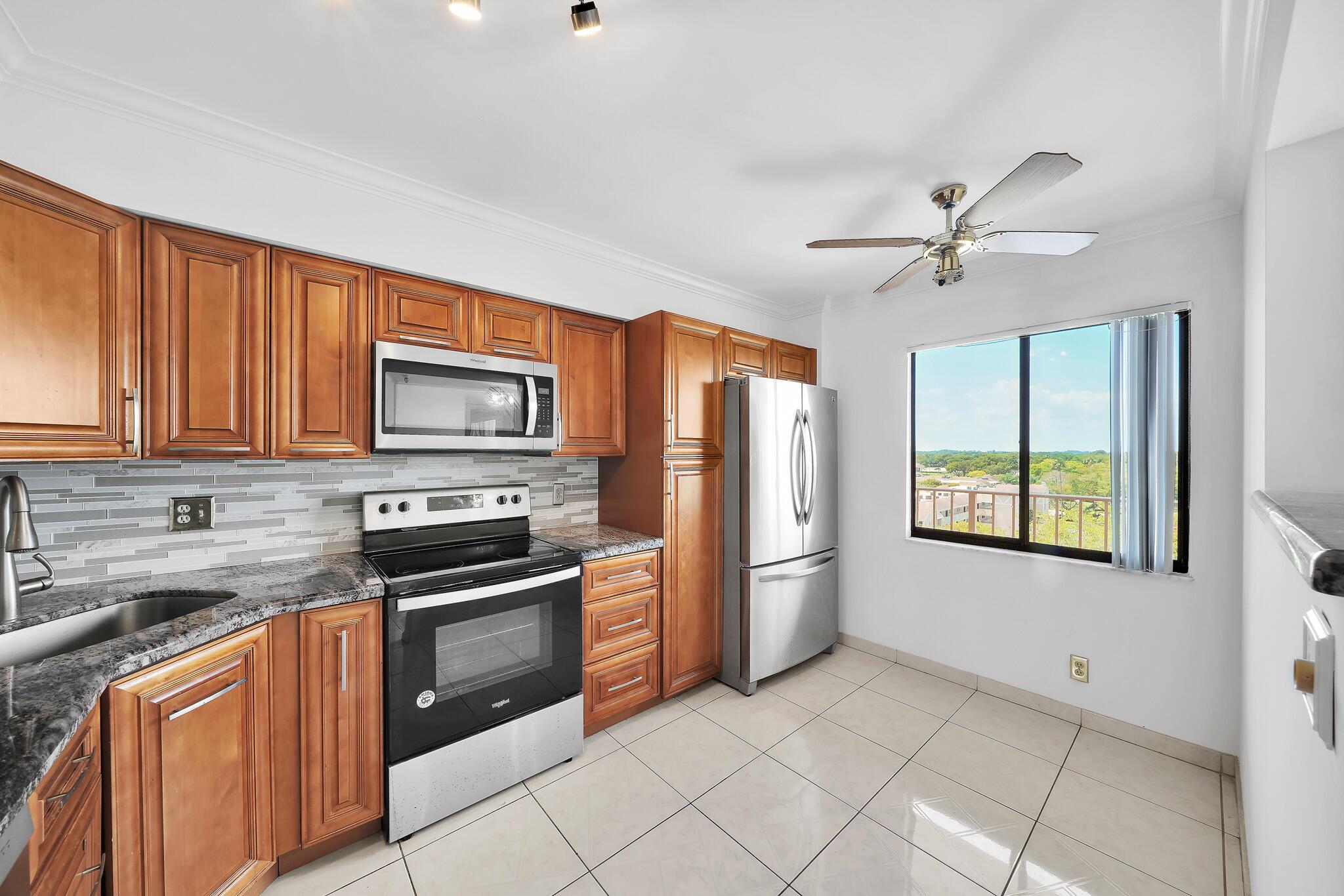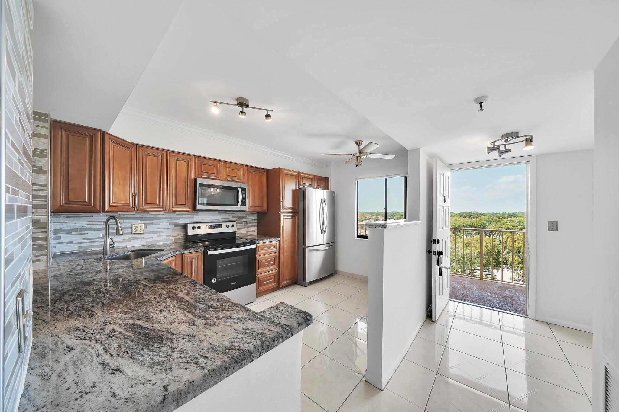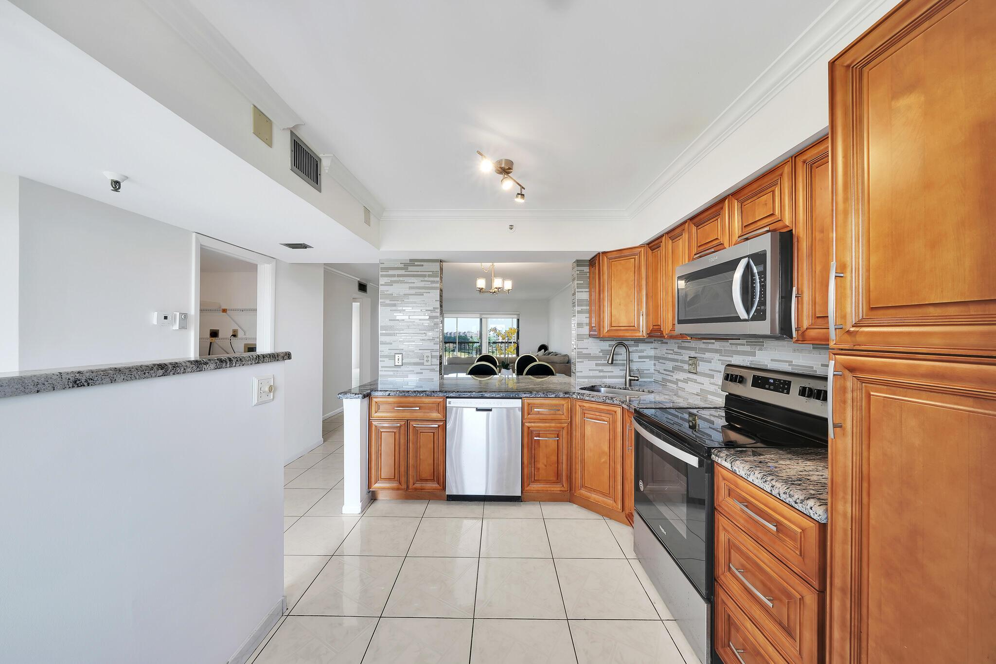 Don't miss this top-floor penthouse (8th floor), updated 2 bed, 2 bath condo in the desirable Huntington Lakes community with stunning water views. This bright, open-layout unit features ceramic tile floors, granite countertops, and a large eat-in kitchen. The spacious primary suite includes two walk-in closets and direct access to a screened, covered balcony shared with the living room. Partially furnished with in-unit laundry, ample storage, and an extra storage unit. The building has two elevators and is steps from the outdoor pool. Enjoy a newly renovated clubhouse with an indoor Olympic-size pool, theater, fitness center, game rooms, tennis, pickleball, and more. Resort-style 55+ living at its best!