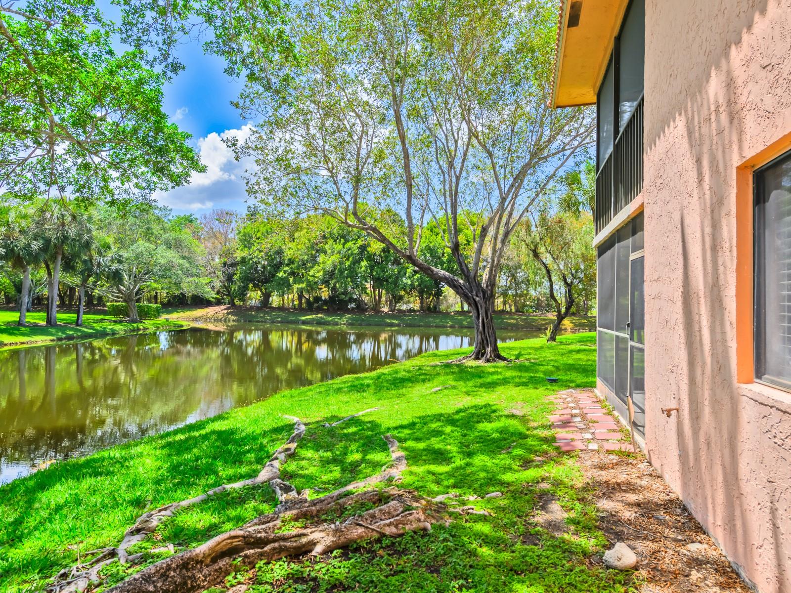 Don't miss this spacious 2-bedroom, 2-bath corner unit located on the ground floor with beautiful views of a wide canal and the pool area. Freshly painted interior with tile flooring throughout. Enjoy a large eat-in kitchen and a screened-in back patio perfect for relaxing or entertaining. This condo features a generously sized bedrooms and a bright and open layout. Located in a quiet and well-maintained community with easy access to Bonaventure Town Center amenities. Can be rented immediately. Ideal for investors or homeowners alike.