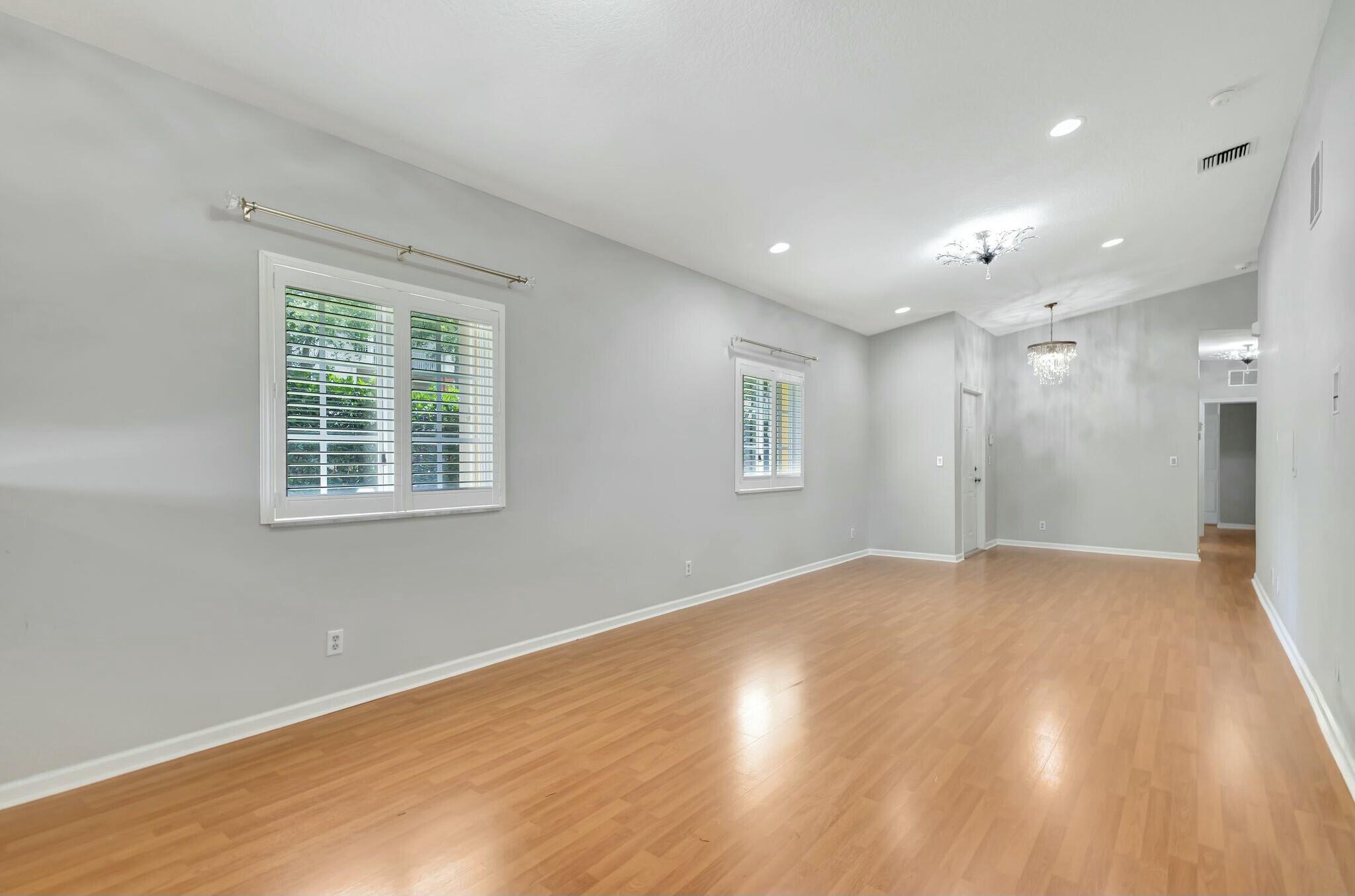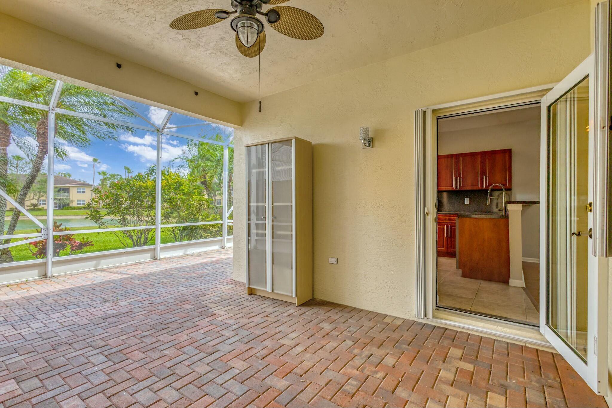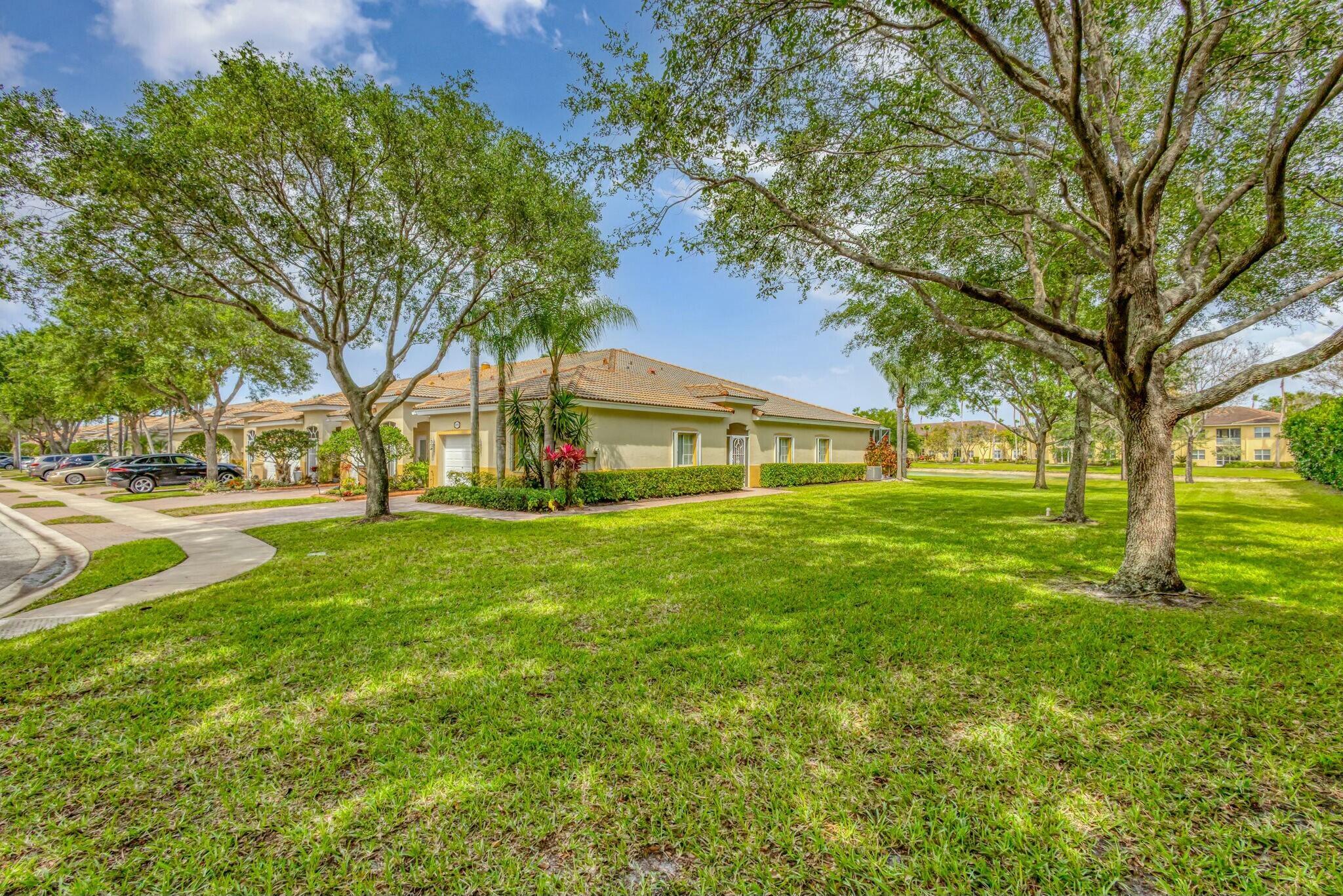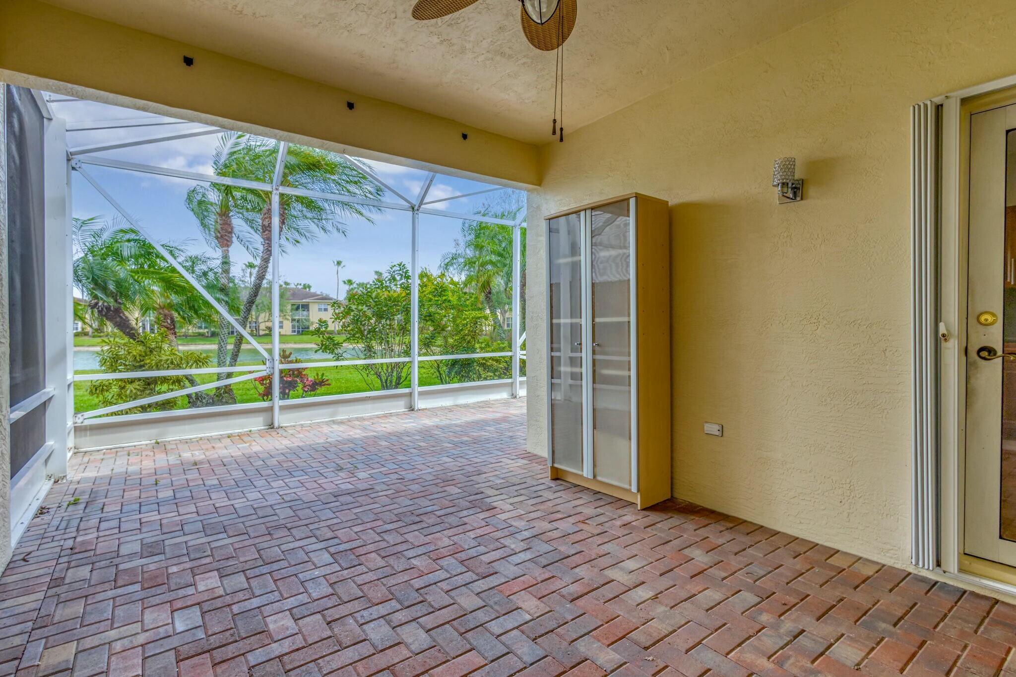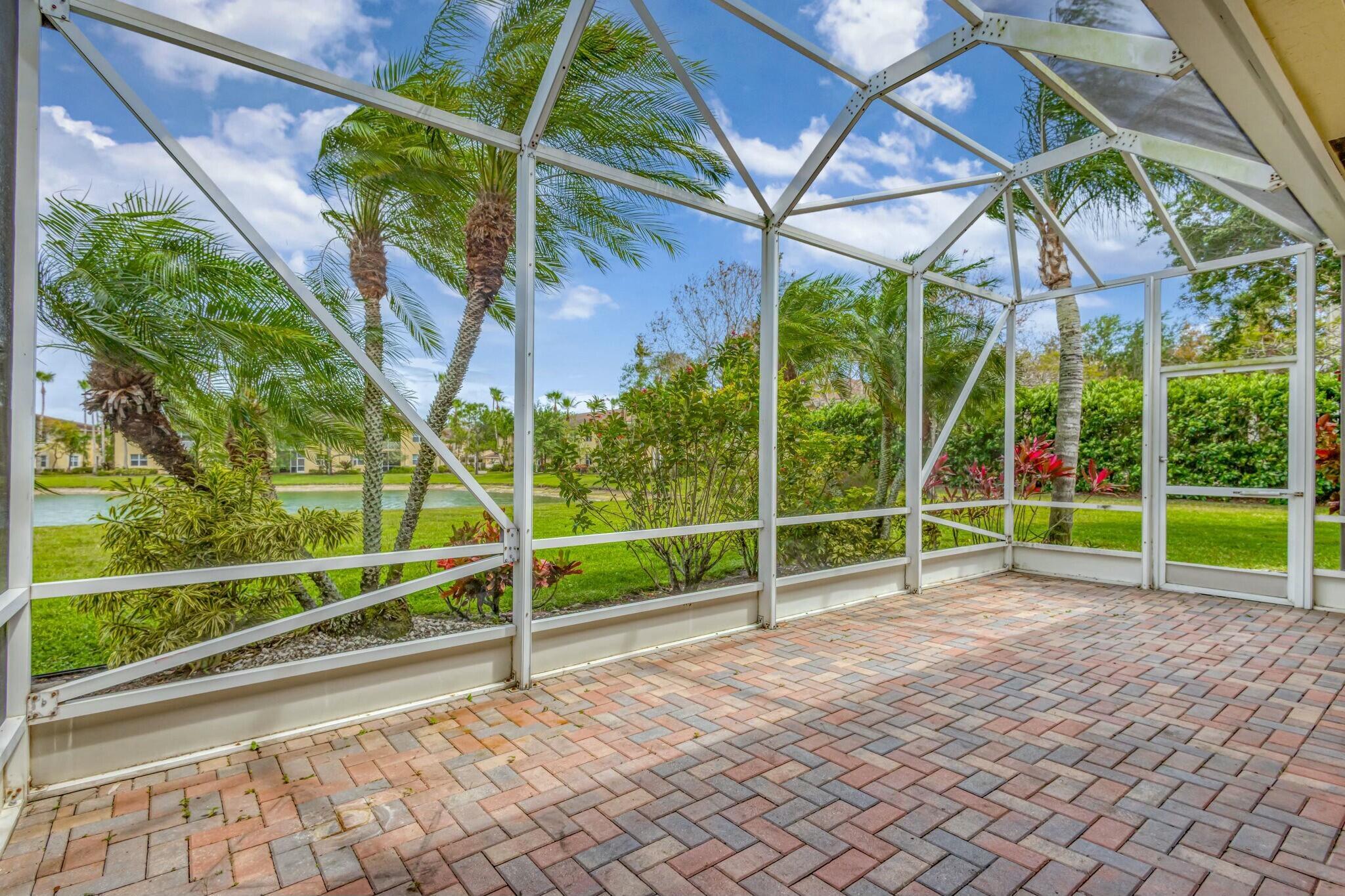 This 3-bedroom, 2-bathroom end-unit villa in the prestigious Baywinds community offers breathtaking lake views from its extended screened lanai, great room, and upgraded kitchen. Designed with an open floor plan and elegant neutral decor, this home is 100% carpet-free, featuring vaulted ceilings, plantation shutters, and upgraded lighting throughout. The spacious kitchen boasts a wide, deep stainless steel sink, a breakfast bar, a pantry, and new appliances. The large en-suite primary bedroom includes a walk-in closet and a beautifully upgraded bathroom. Both bathrooms have been enhanced with modern upgrades. The villa also features see-through accordion shutters, a 1-car garage with extra storage and attic space, and immaculate landscaping on a spacious property. Baywinds is a high