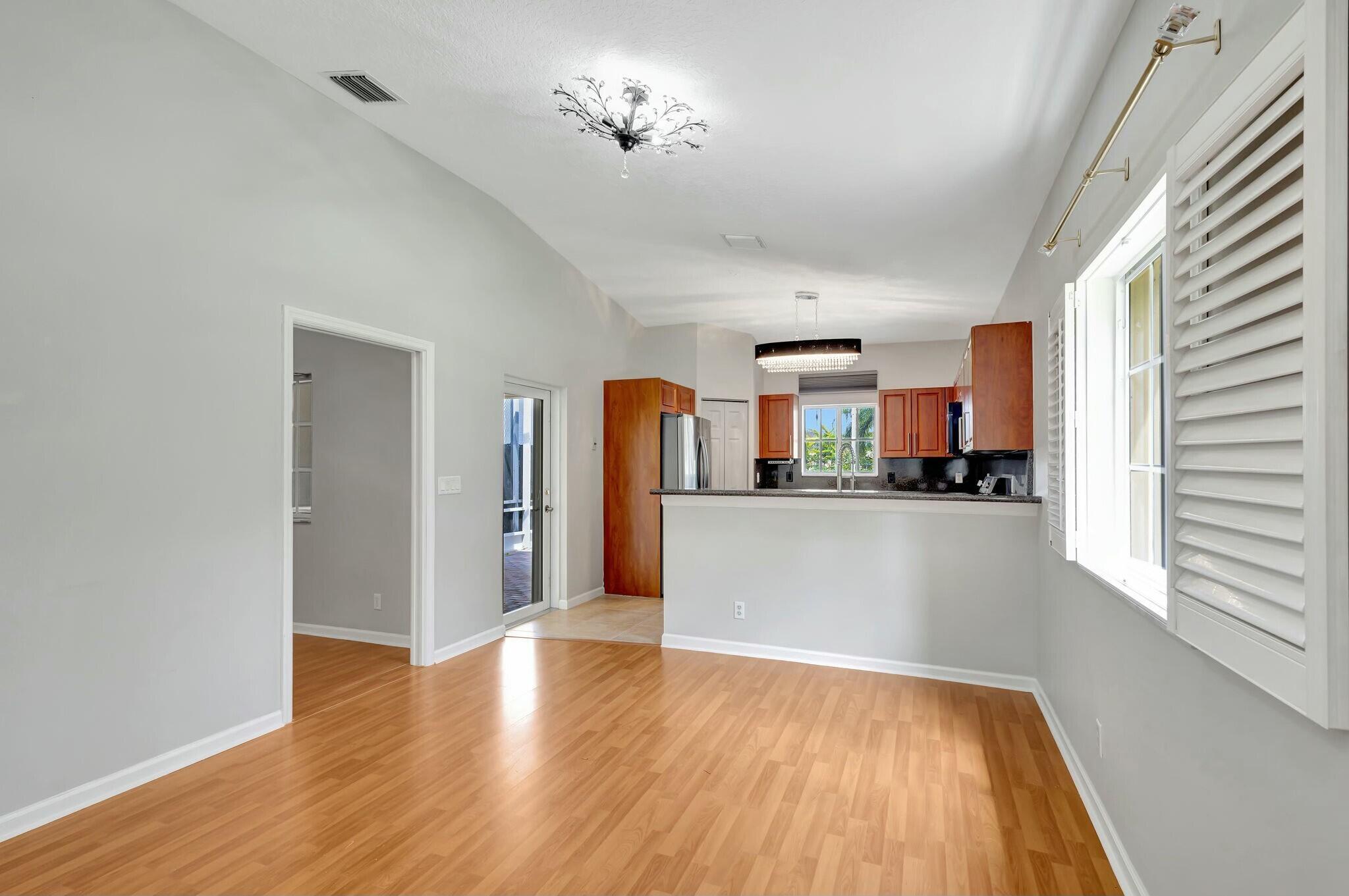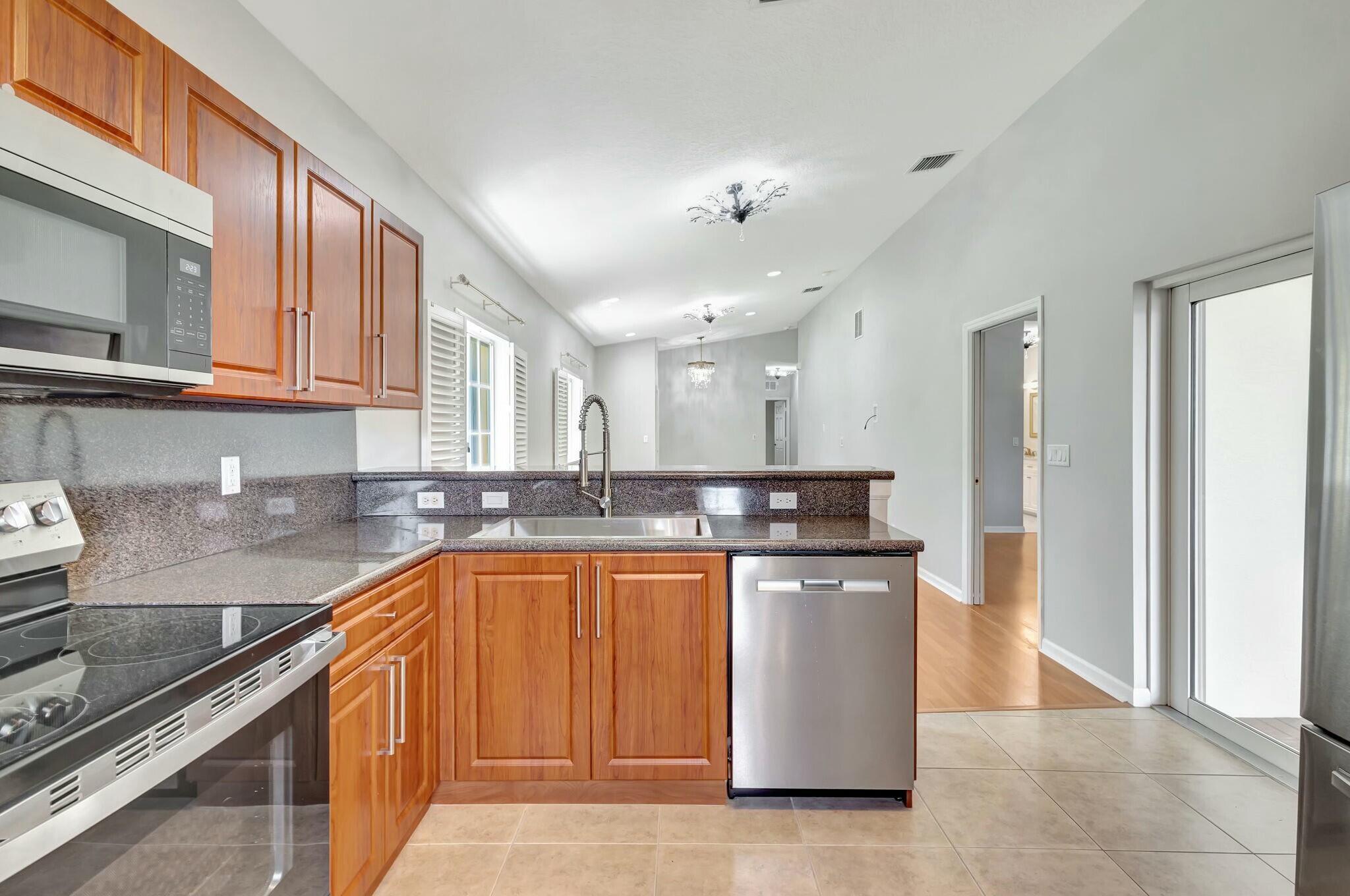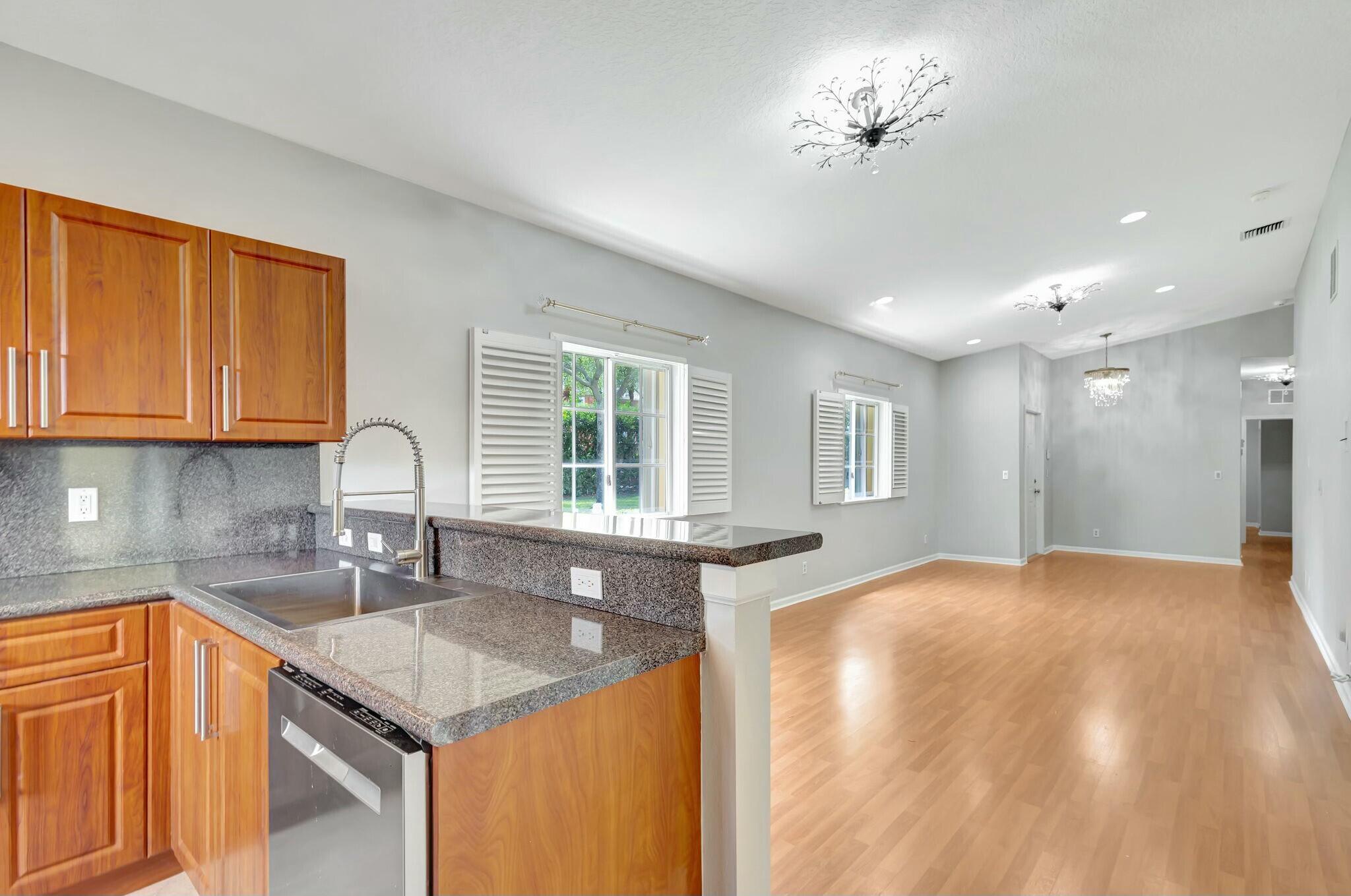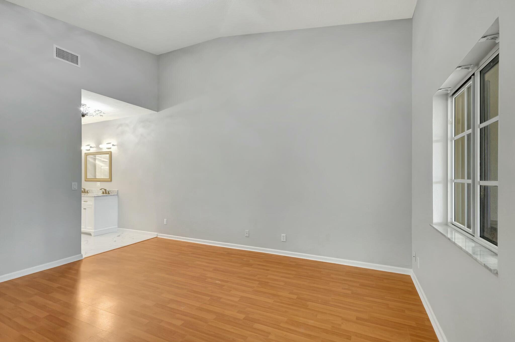 This 3-bedroom, 2-bathroom end-unit villa in the prestigious Baywinds community offers breathtaking lake views from its extended screened lanai, great room, and upgraded kitchen. Designed with an open floor plan and elegant neutral decor, this home is 100% carpet-free, featuring vaulted ceilings, plantation shutters, and upgraded lighting throughout. The spacious kitchen boasts a wide, deep stainless steel sink, a breakfast bar, a pantry, and new appliances. The large en-suite primary bedroom includes a walk-in closet and a beautifully upgraded bathroom. Both bathrooms have been enhanced with modern upgrades. The villa also features see-through accordion shutters, a 1-car garage with extra storage and attic space, and immaculate landscaping on a spacious property. Baywinds is a high