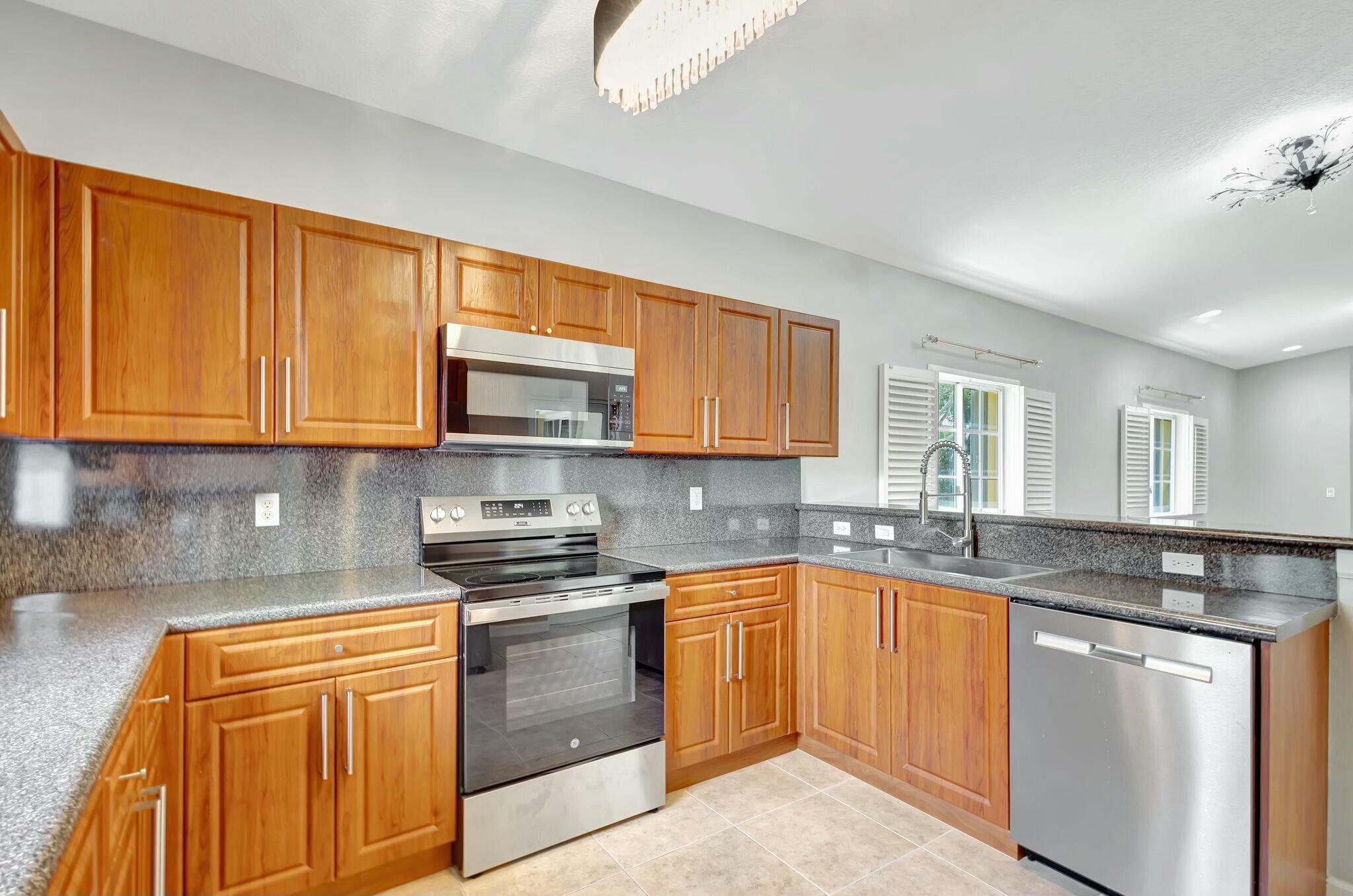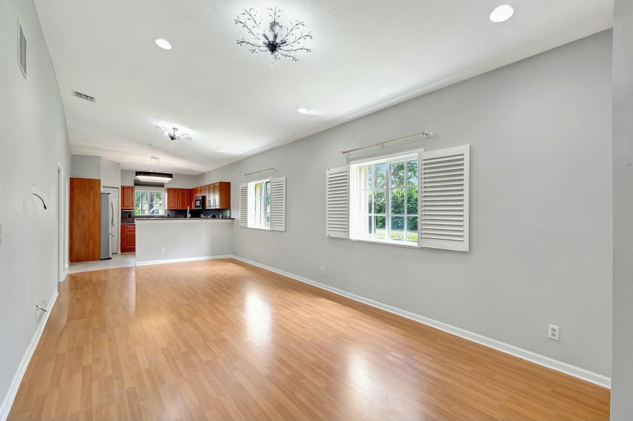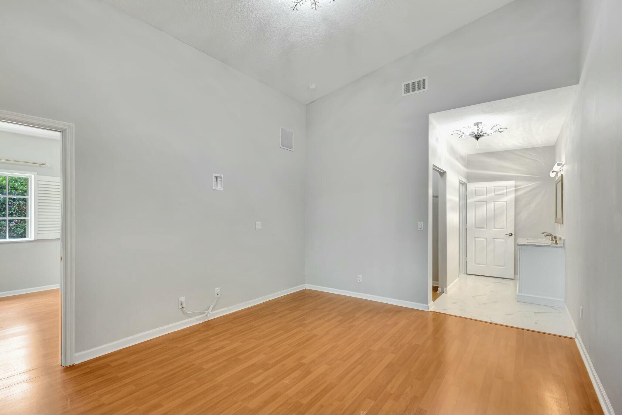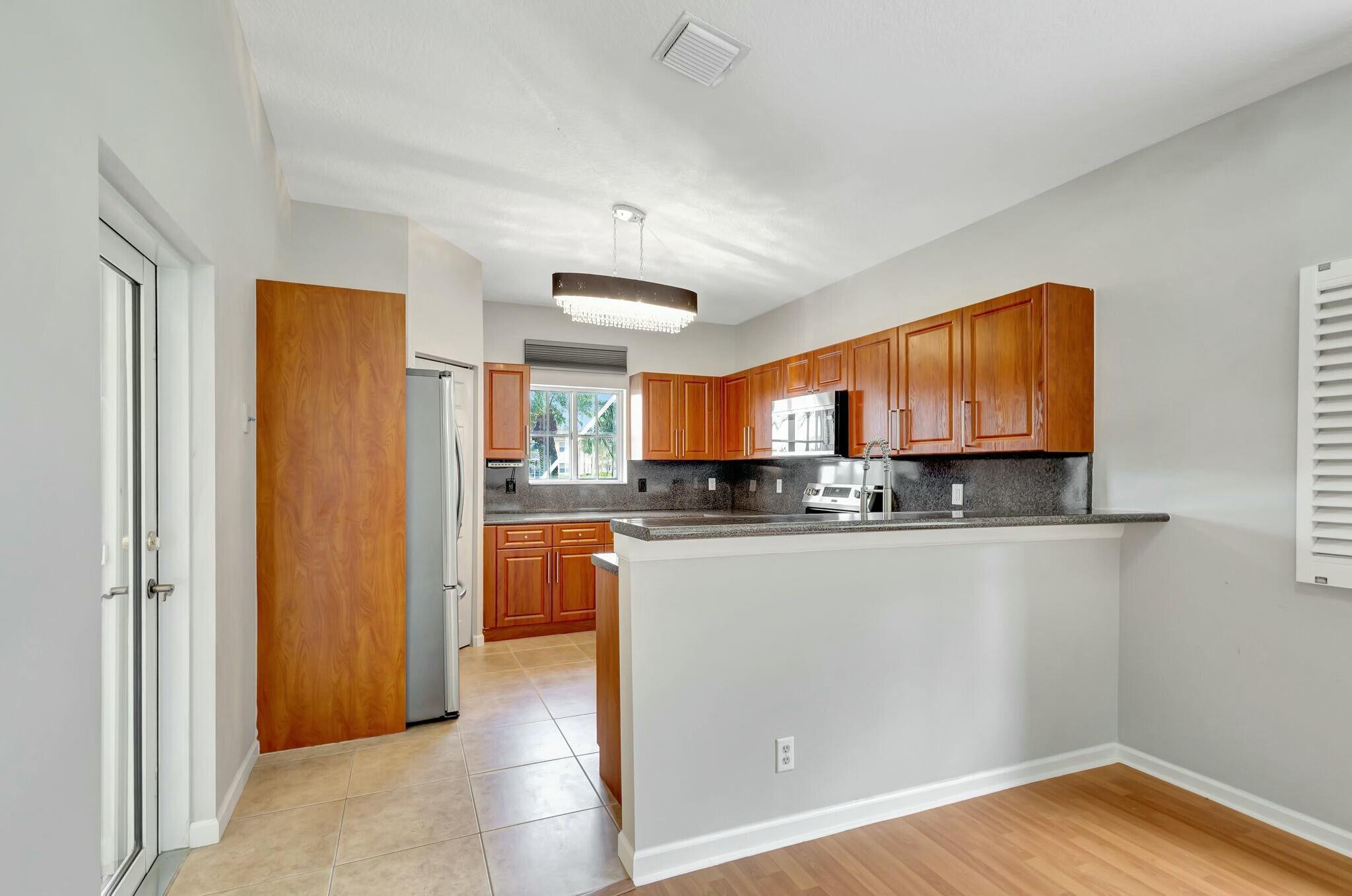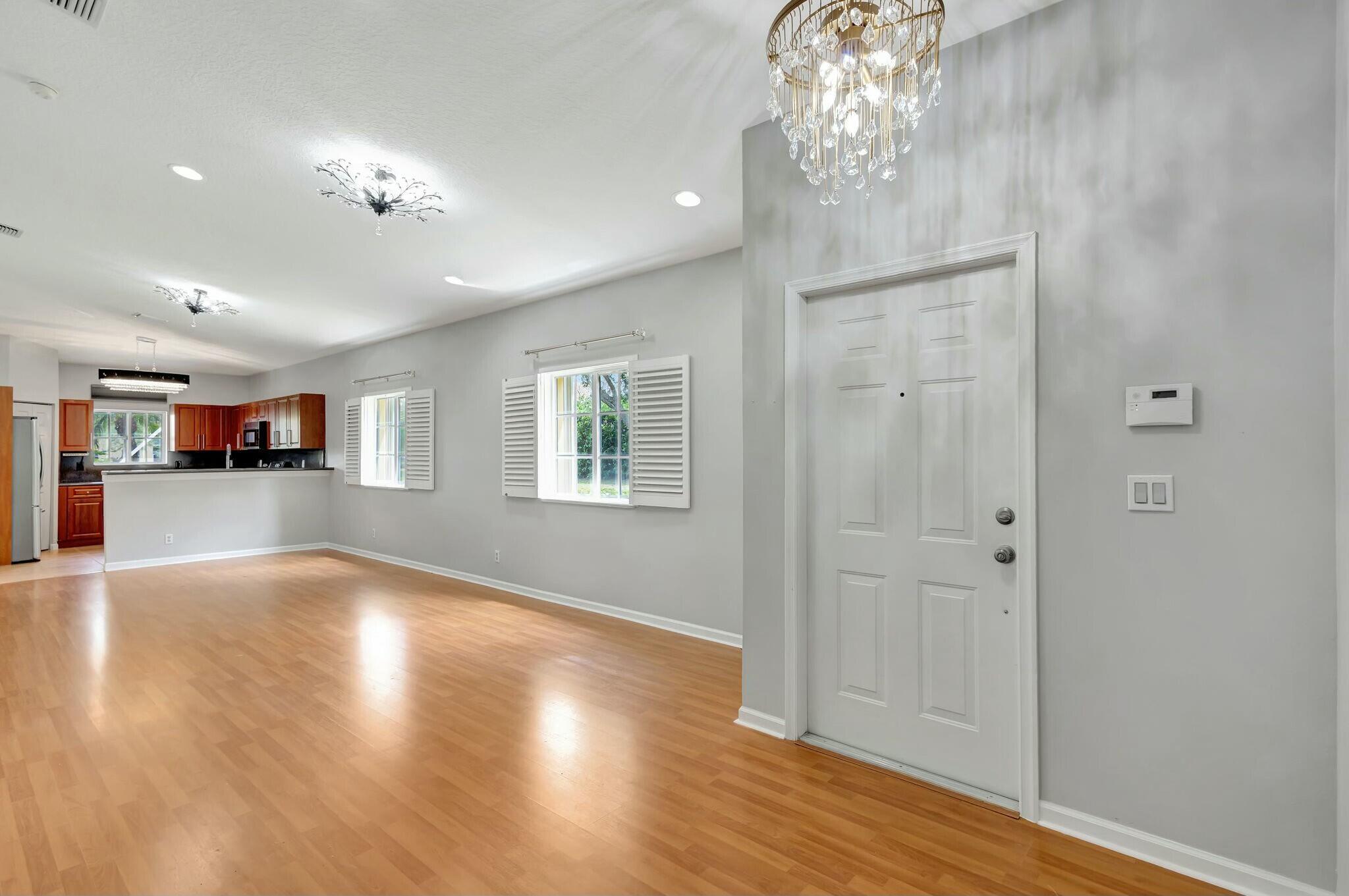 This 3-bedroom, 2-bathroom end-unit villa in the prestigious Baywinds community offers breathtaking lake views from its extended screened lanai, great room, and upgraded kitchen. Designed with an open floor plan and elegant neutral decor, this home is 100% carpet-free, featuring vaulted ceilings, plantation shutters, and upgraded lighting throughout. The spacious kitchen boasts a wide, deep stainless steel sink, a breakfast bar, a pantry, and new appliances. The large en-suite primary bedroom includes a walk-in closet and a beautifully upgraded bathroom. Both bathrooms have been enhanced with modern upgrades. The villa also features see-through accordion shutters, a 1-car garage with extra storage and attic space, and immaculate landscaping on a spacious property. Baywinds is a high