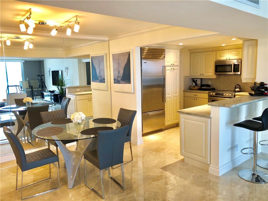 Stunning views of the Atlantic Ocean and the Intracoastal Waterways from this nicely remodeled 14th floor, 1500 sf, 2 bedrooms/2 baths split floor plan condo with top materials and in mint condition. Sub-Zero refrigerator, Bosh washer/dryer and granite kitchen counter. Located just across from the beach in a very desirable building ... the Venetian is a fabulous "Resort style" condominium with Tiki Bar, Spa, Pool, Gardens, Library w/ free WiFi, 24hr Security, table tennis/ping-pong, billiard and a large fitness center. One of the few boat docking facilities situated on Las Olas, beach and Intracoastal areas with no fixed bridges. Conveniently located minutes away from the downtown business and entertainment district and a short drive to the FLL airport. Dockage as available. A must see!