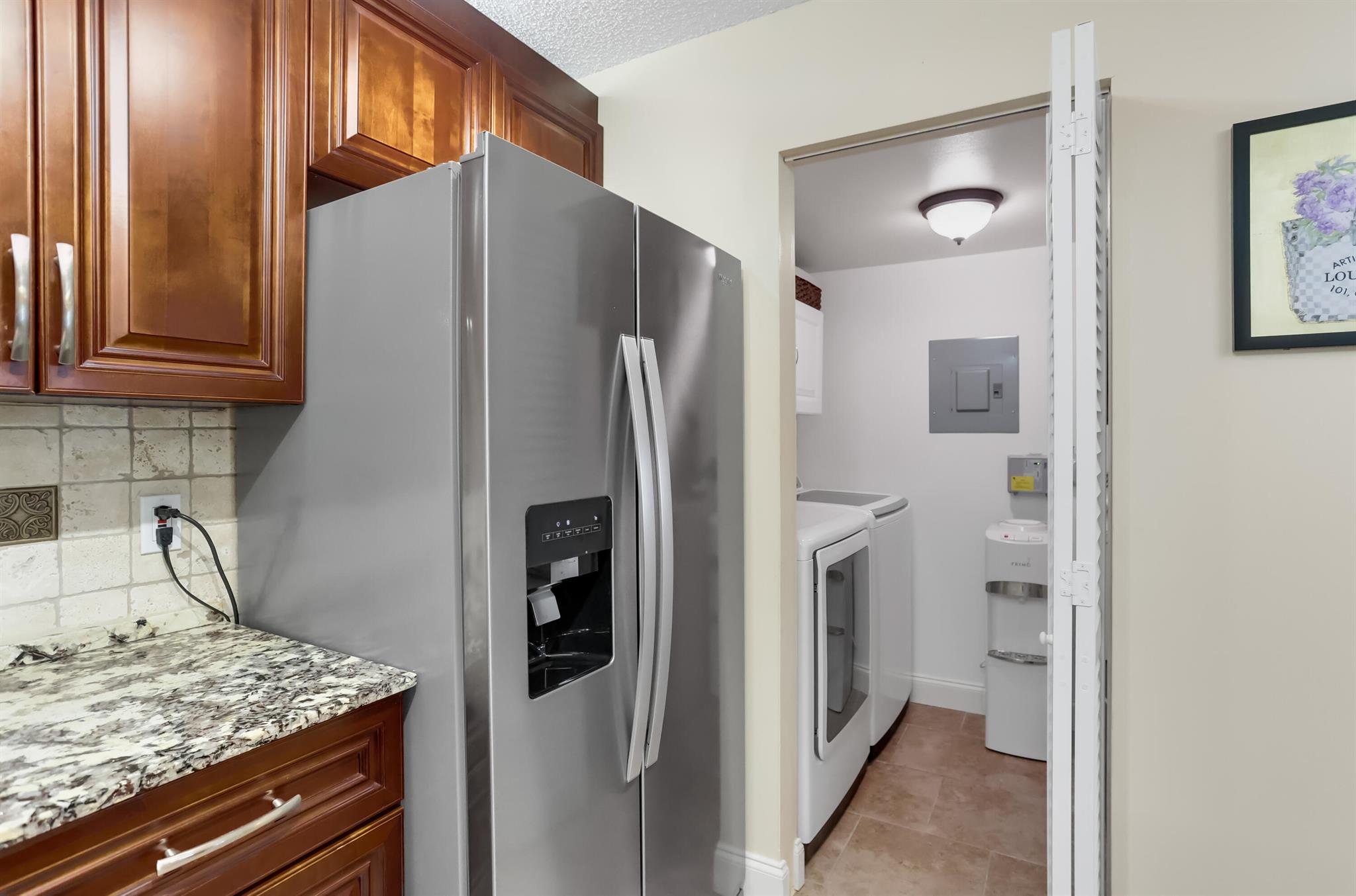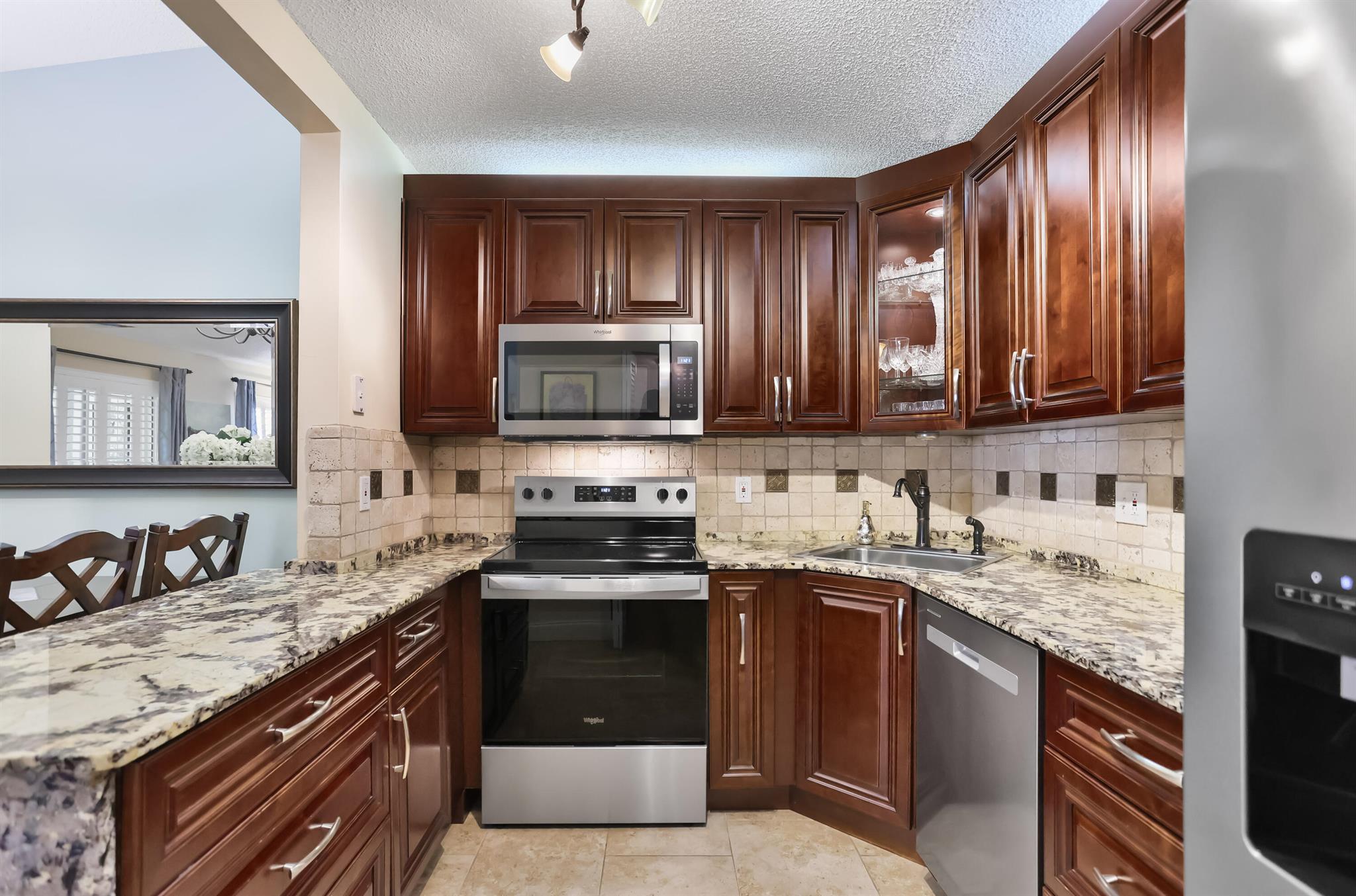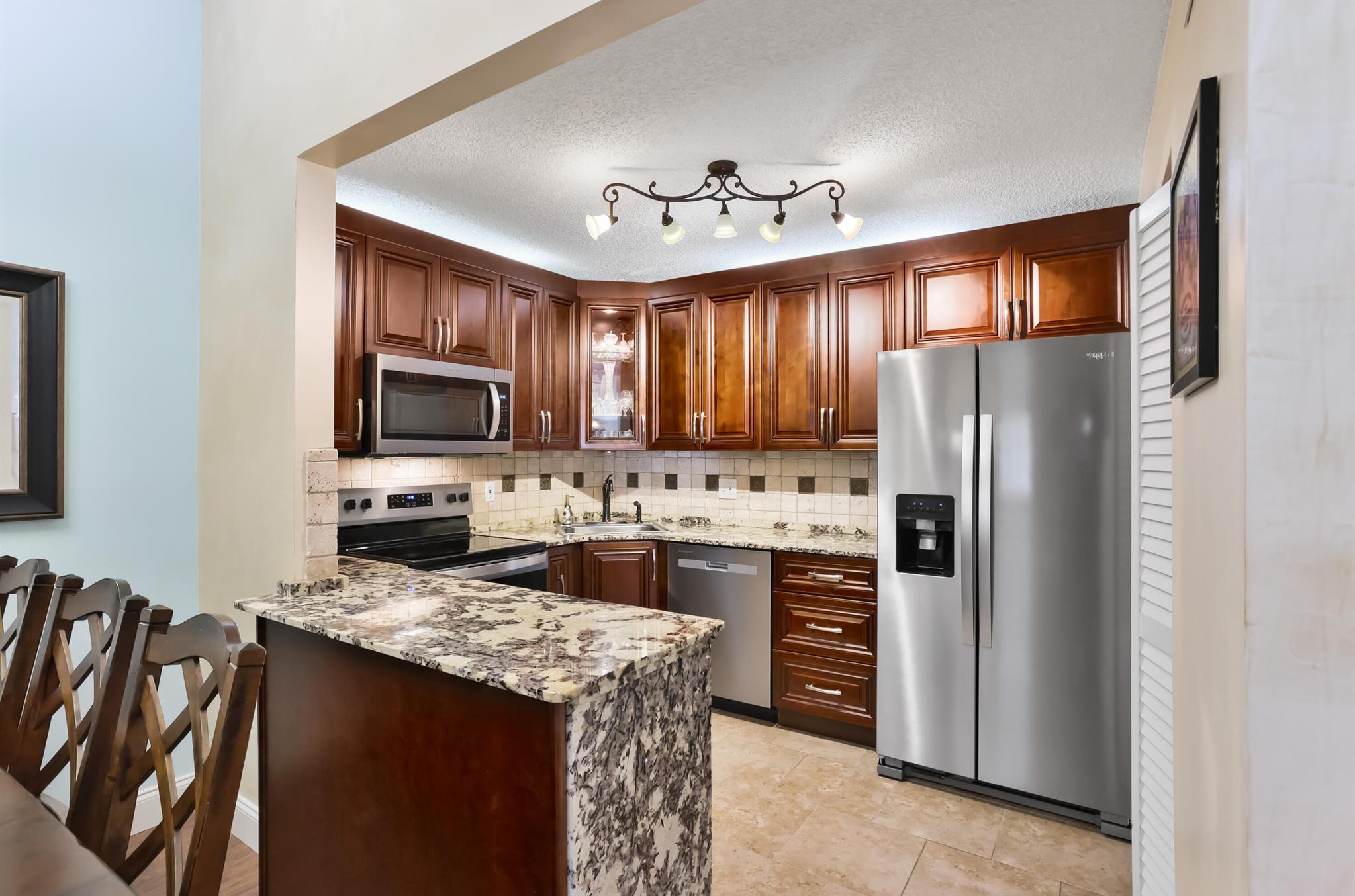 Impeccably upgraded and super clean retreat in perfect condition! Fall in love with this meticulously maintained 2nd/top floor condo offering a blend of luxury and convenience. The heart of this home is the exquisite kitchen, featuring rich solid wood cabinetry, beautiful granite countertops, and sparkling new appliances. Hi-quality laminate flooring flows throughout, leading to beautifully appointed bathrooms with floor-to-ceiling tile work. The spacious living room is enhanced by a vaulted ceiling and a sophisticated Venetian plaster feature wall, creating a truly inviting atmosphere. Step out onto your unique balcony, offering the flexibility of open-air enjoyment with screens or year-round use with sliding glass doors closed. New roof! For added ease, the condo can be fully furnished.