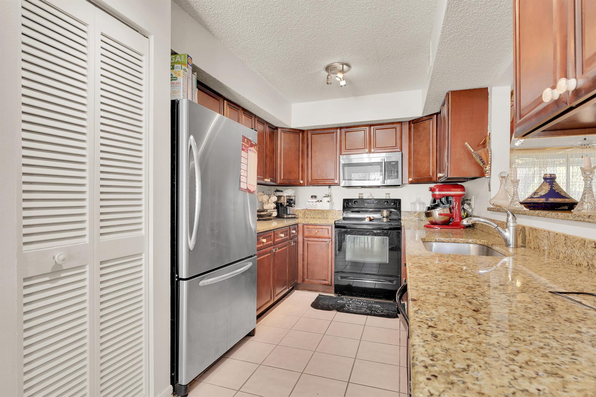 Welcome home to this charming first-floor 2-bedroom, 2-bath condo in the highly desired Carriage Gate community in Boynton Beach. This unit features tile and carpet flooring, an updated kitchen with granite countertops and stainless steel appliances, plus a full-size washer and dryer and a one-car garage. Enjoy peace of mind with accordion shutters for hurricane protection, and relax just steps away at the community pool and spa. The HOA includes roof maintenance and cable. Carriage Gate offers an unbeatable location--close to shopping, dining, and major highways.
