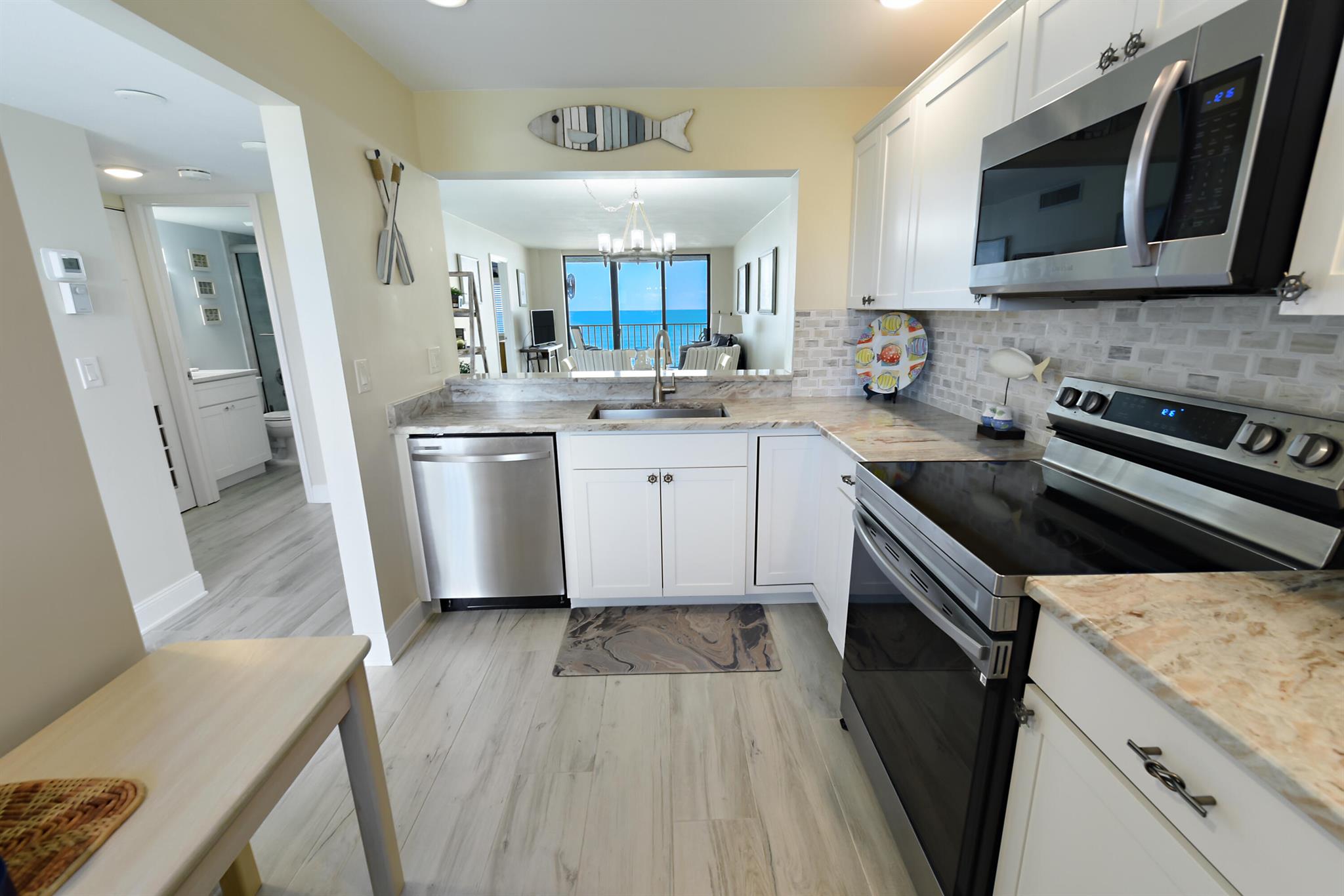 Experience an unparalleled lifestyle! Awaken to the enchanting sunrises and the soothing sounds of the ocean from your beautifully remodeled 2-bedroom, 2-bath condo on the 8th floor. This home has been meticulously upgraded with all the modern conveniences you desire. The stunning soft wood tile enhances your relaxation experience, and with its turnkey status, you need to bring nothing. You'll appreciate the convenience of having a private washer and dryer in your unit. If you wish to rent it out while you're away, no problem--it's ready for your tenant. Ocean Harbor's rental policy makes it ideal for owners.