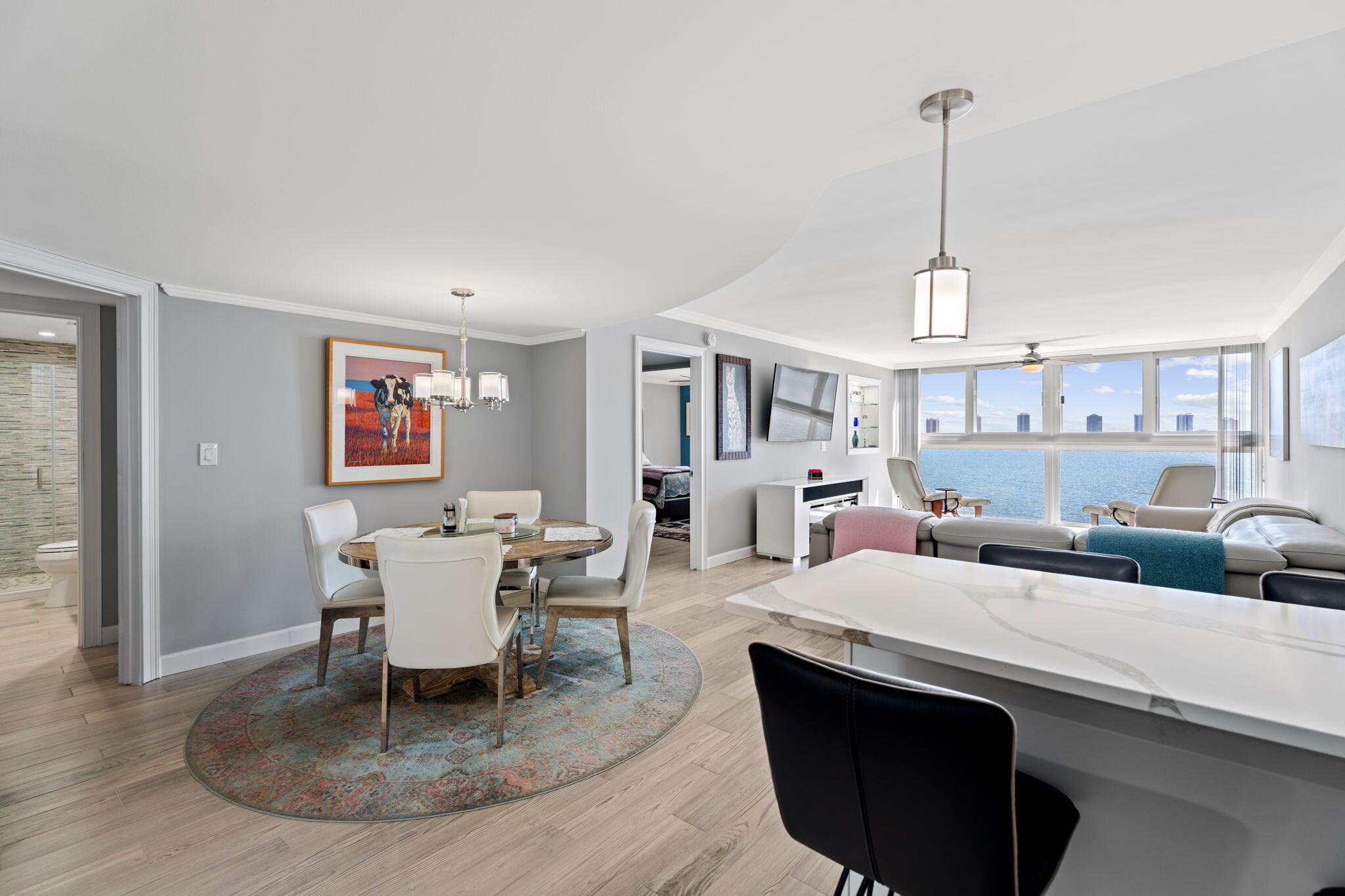 Enjoy breathtaking unobstructed intracoastal views, modern updates and peace of mind in this beautifully renovated 2/2 residence in a well-maintained 55+ waterfront community. This residence features impact windows throughout, a modern kitchen and baths, and elegant finishes. The building recently completed its milestone report and has a new roof, with no assessments pending--just move in and enjoy! Enjoy some of the lowest HOA fees for waterfront living in the area. Minutes from Singer Island beaches, marinas, dining, and shopping, this is coastal living at its best. Don't miss this exceptional opportunity!