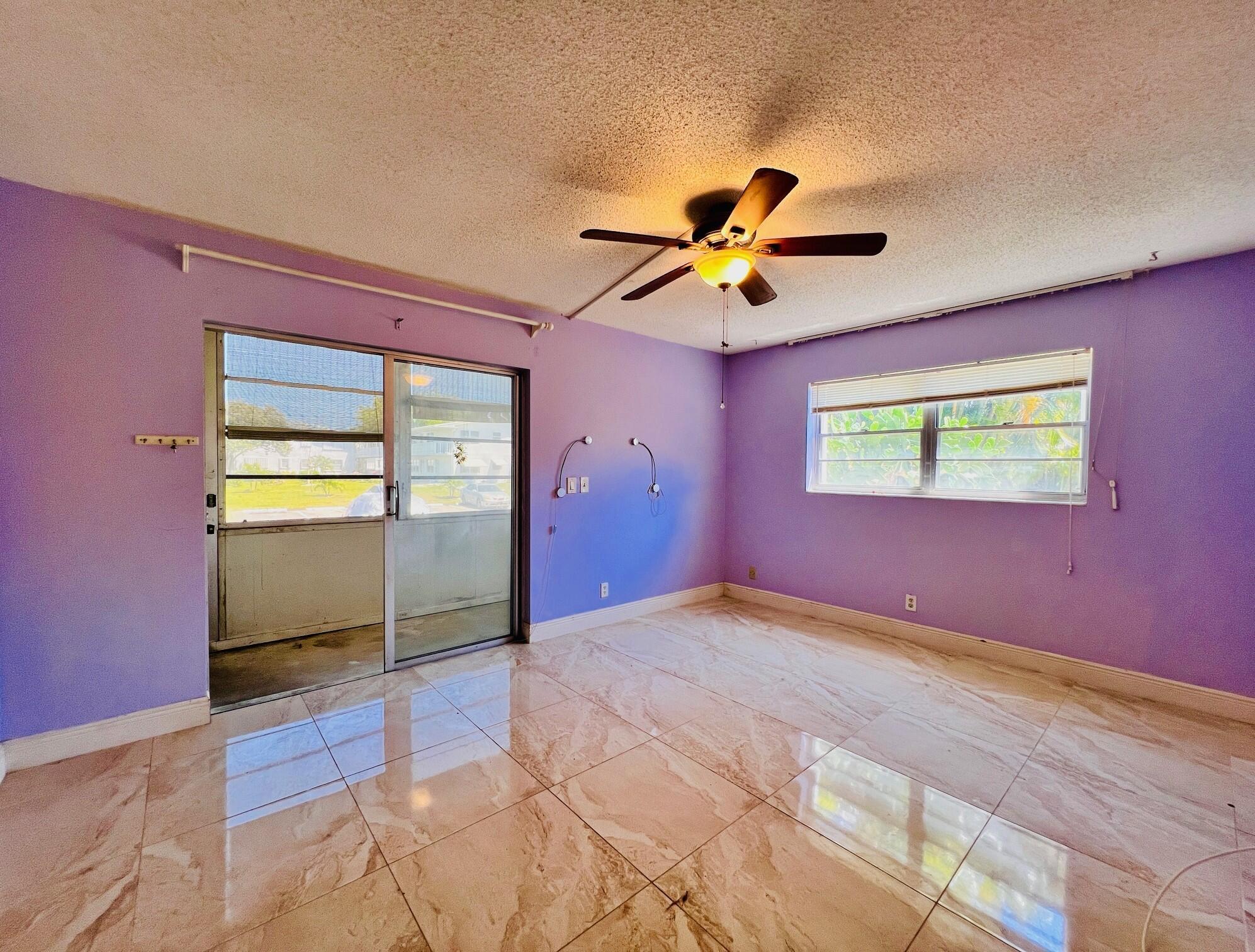 Spacious & Open In 55+ Century Village! Desirable FIRST FLOOR CORNER 1/1.5 in the Convenient Bedford Section. Water View From Your Living Room. Open Concept Living Area. Gleaming Large Format Neutral Tile Flooring Throughout. Updates to Baths. Lovely Water Side Patio for Bedford K Residents. Great Location Close to the Main Clubhouse and Haverhill Gate. Century Village is a Resort Style 55+ Community With So Much to Offer...