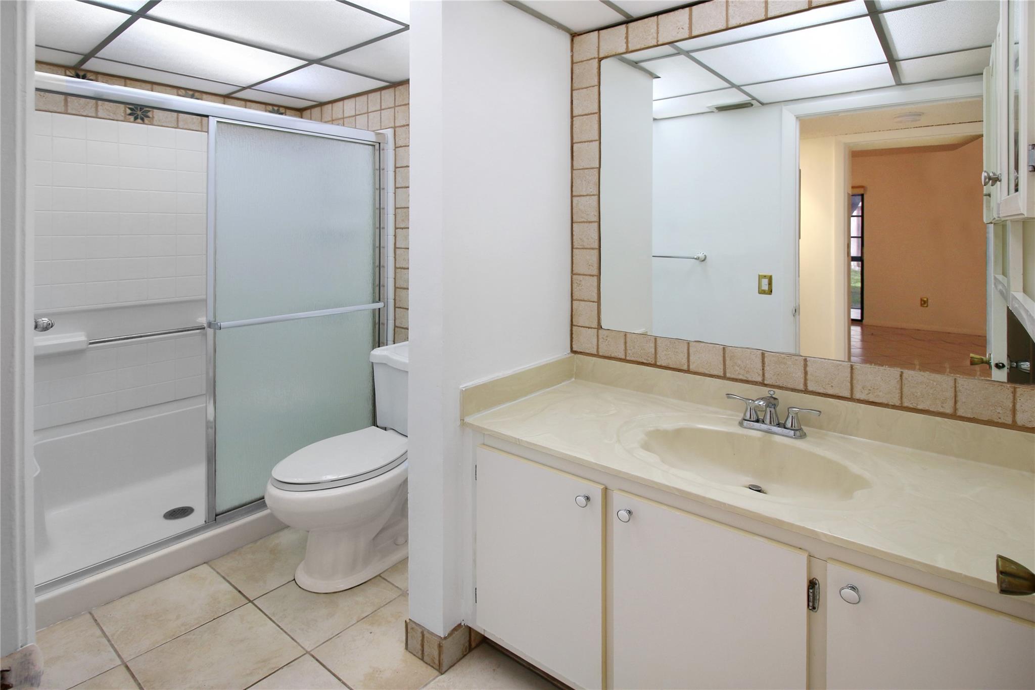 FIRST FLOOR 2 bedrooms, 1 bathroom 55+ Condo in Kings Point. This home features a large patio space and WASHER & DRYER inside the unit, along with an open kitchen with tile flooring throughout. The main bedroom has a huge walk-in closet. Association dues includes: water, cable, internet, pest control, gate security, landscaping, trash and sewer, exterior/roof insurance, all amenities. Amenities include Gated security, Pools, Fitness Center, Tennis, Theater, Courtesy bus and more.