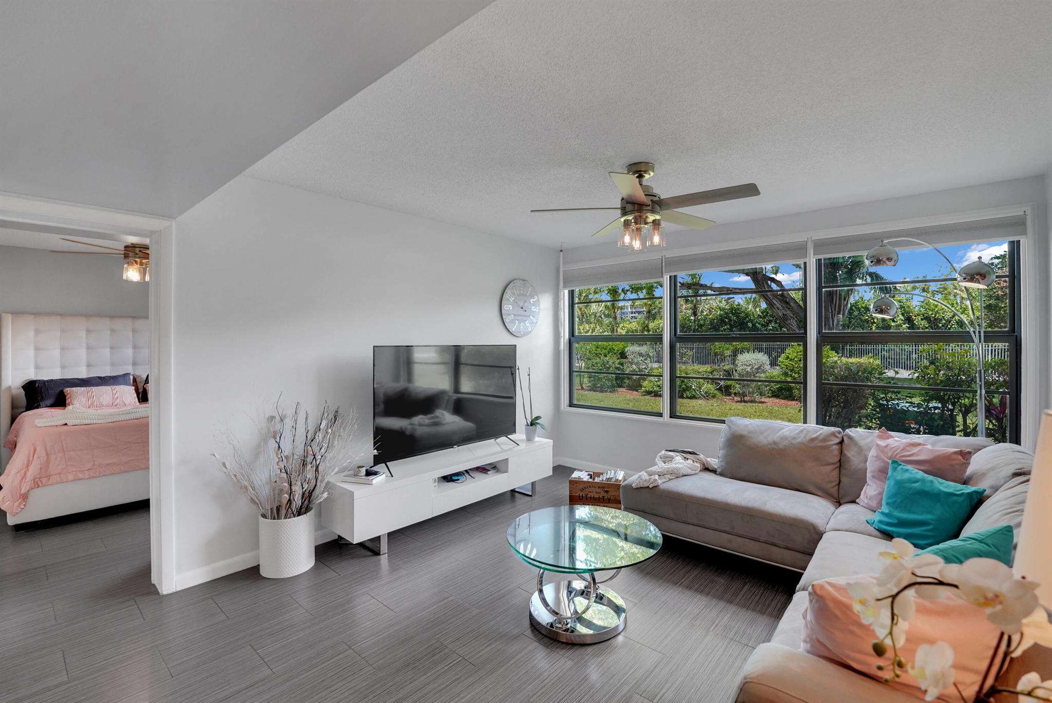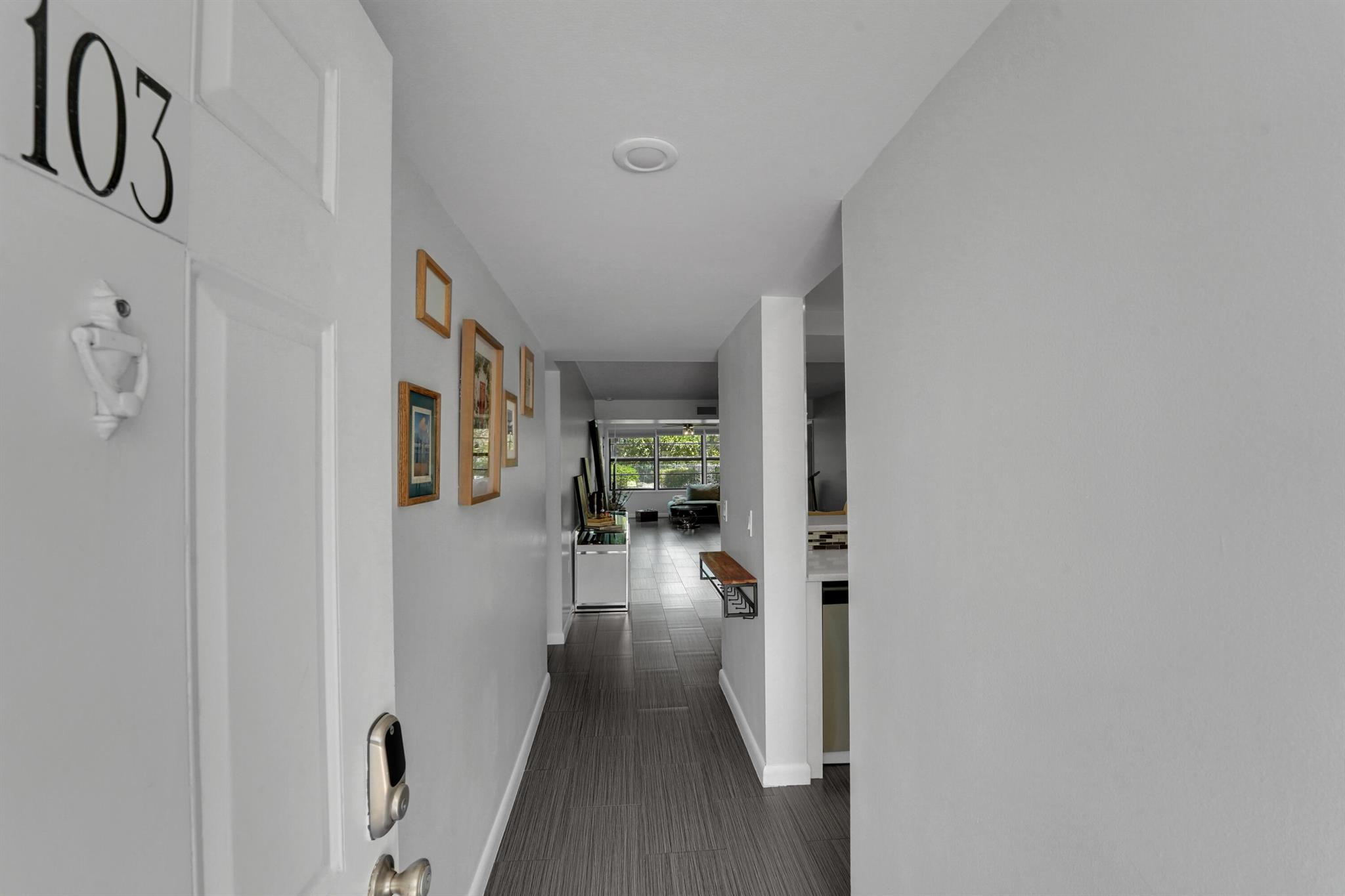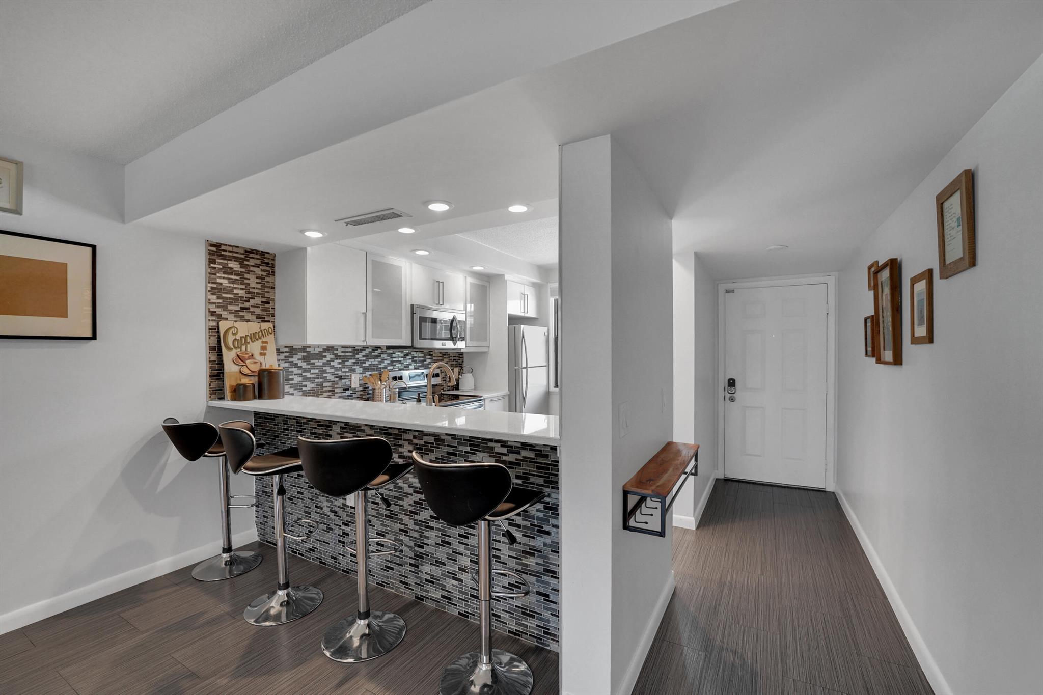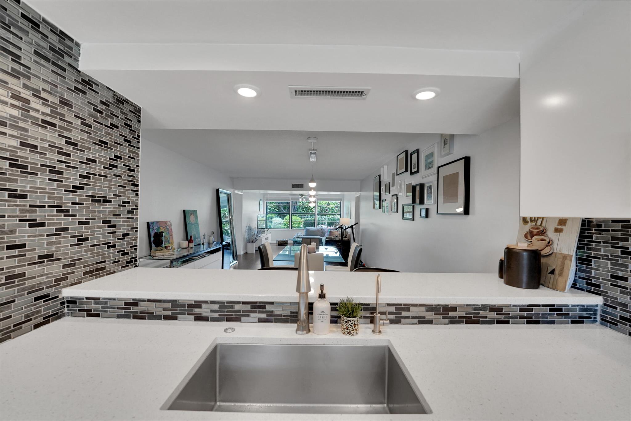 Welcome to this beautifully renovated 2-bedroom, 2-bathroom condo located in the highly sought-after Whitehall at Camino Real community. This first-floor unit offers the perfect blend of modern design, comfort, and convenience.Step inside to discover stunning porcelain tile floors throughout and an open-concept layout filled with natural light from large windows and impact-rated windows and doors--providing both peace of mind and energy efficiency. The kitchen is a true showstopper, featuring quartz countertops, stainless steel appliances, and a spacious breakfast bar ideal for casual dining or entertaining.Both bathrooms have been fully remodeled with elegant finishes. The spacious primary bedroom offers ample sunlight and a generous layout, while the second bedroom is perfect for
