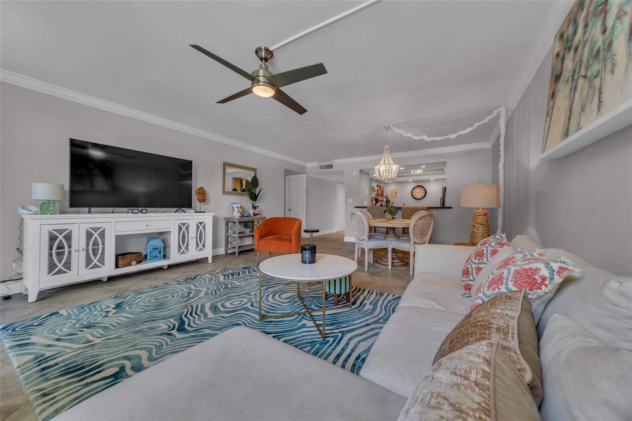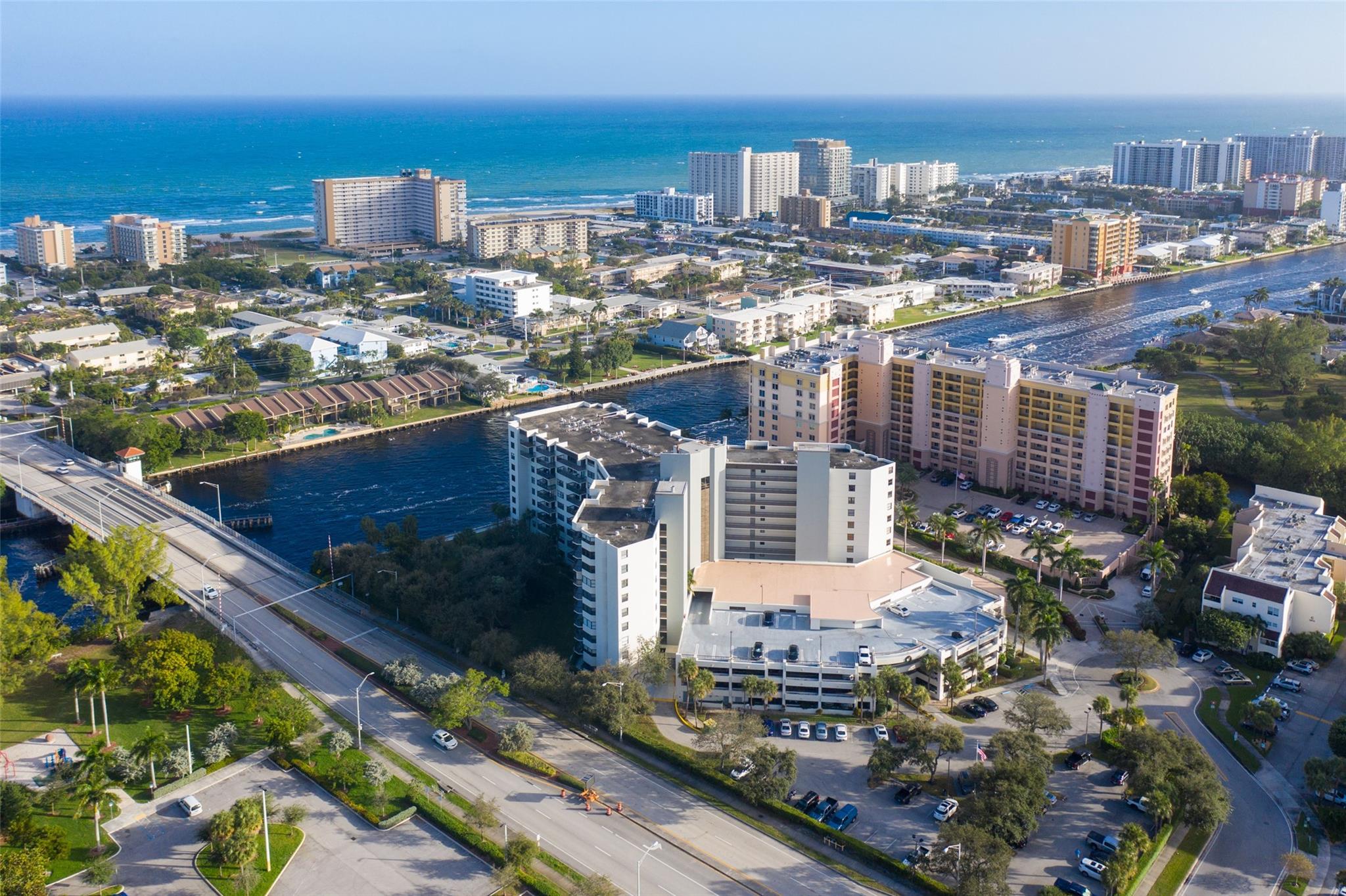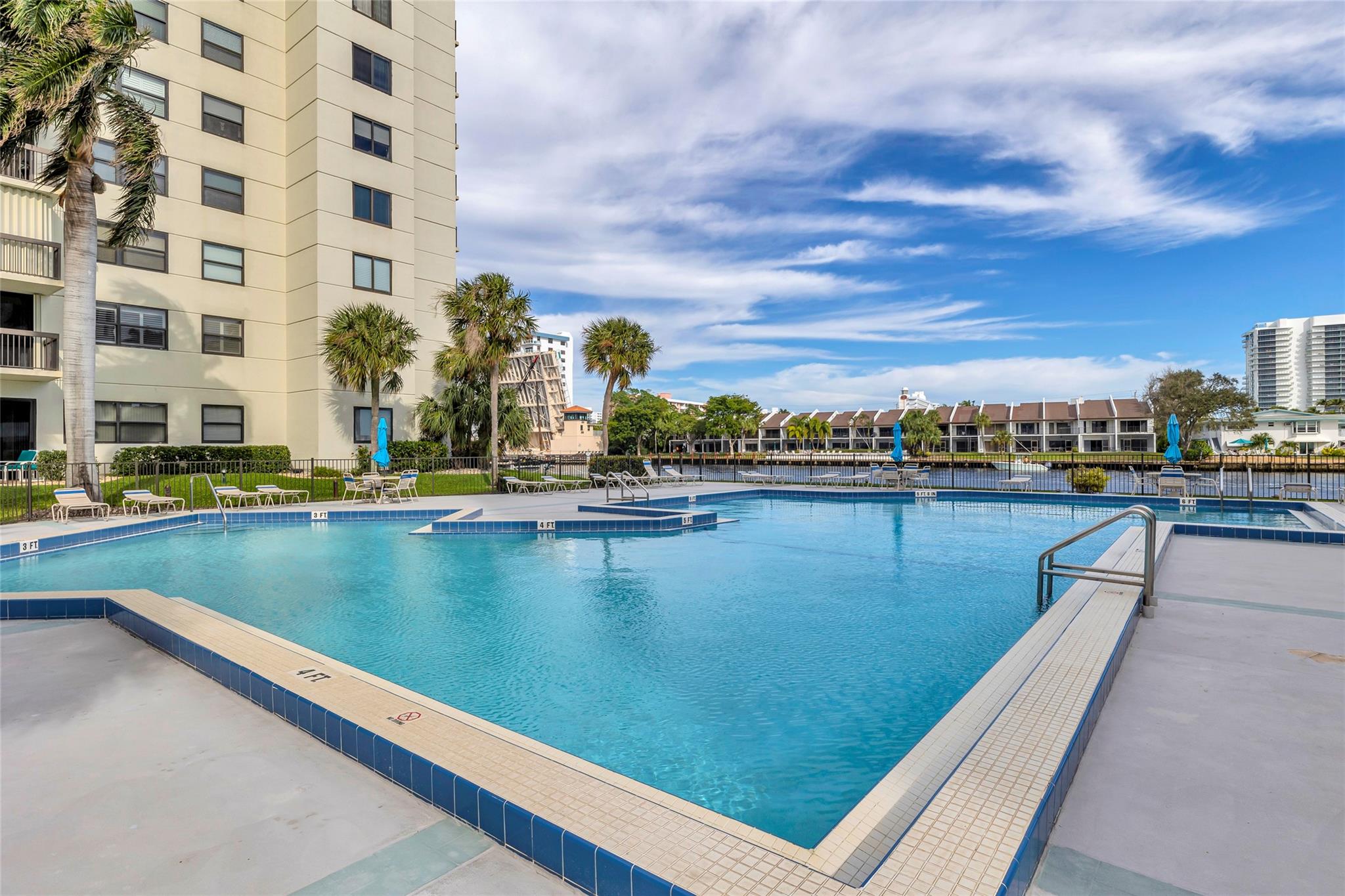 Nicely updated 1 bedroom with 1.5 bathroom condo at the Intracoastal waterway in Pompano Beach. HUGE open kitchen with tons of cabinetry (storage), granite counters and ample lighting. FULL size stacked washer and dryer for your convenience. Large living and dining area that look out to the lawn, trees and the Intracoastal waterway. Unit has an extra half bathroom. Large bedroom with 2 walls of closets and primary bathroom offers a tub and shower combination. HIGH impact windows and doors. Tile flooring on a diagonal pattern throughout. FURNITURE if optional. Pet friendly building, garage parking and ample guest parking. Management office on site. Fitness center, club room, BBQ area and more. Just blocks to the beach! EAST facing unit!