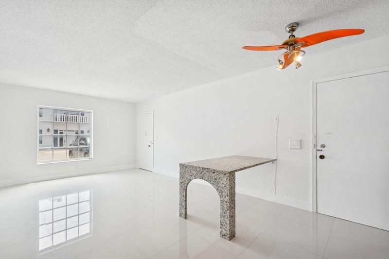 Open modern floorplan with large off white marble tile flooring in main living area with built in table and full wall of counter/cabinets with stainless steel appliances. Wood laminate flooring in the bedrooms. Custom tiled bathrooms. Building is closest to oversized pristine heated swimming pool and gym. 1 parking space, no pets, no renting for first 2 years. Minimum 700 credit score is mandatory for all adult residents. Currently in final stage of 50 year inspection concrete renovation project. Cash buyer. 10 Minutes to Beaches and highway, 5 Minutes to groceries, hospitals, restaurants, retail, all services and more. 45 Minutes to Palm Beach or Miami. Imperial Point Colonnades is a lovely nicely landscaped community near all. Several photos are staged