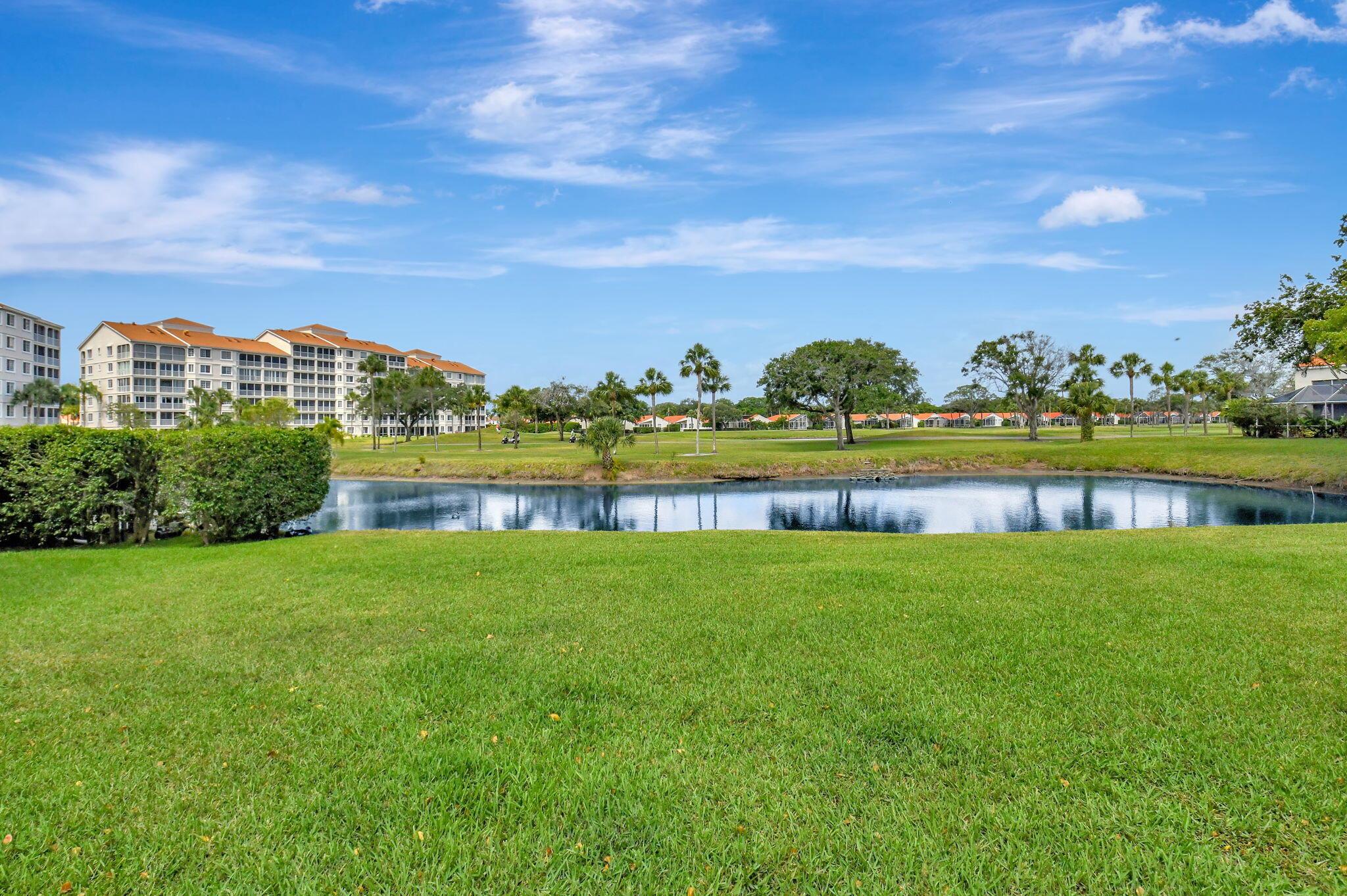 Warm and inviting home with vaulted ceilings, with golf and water views! This almost 1,700 sq ft abode hosts 3 bedrooms, 2 bathrooms, and an oversized 1 car garage! The pool is just steps away, and the community has a 24-hour manned gate, for added security!