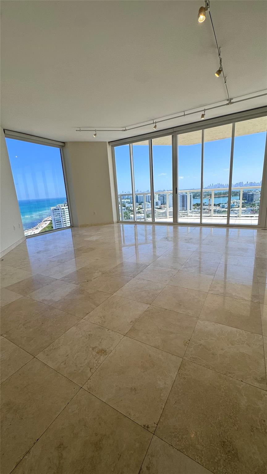 Wake up to sweeping 180-degree views of ocean and Miami skyline in this oceanfront corner penthouse at the Saint Tropez Ocean. This rare 25th floor unit boasts marble flooring, dual balconies, and floor-to-ceiling windows. Elevated ceilings and two side-by-side parking spaces are penthouse features. Luxury amenities include a fully renovated 5th floor rooftop pool and jacuzzi (scheduled for July 2025) and state-of-the-art fitness center. The building, built in 1999, is in excellent mechanical and financial condition, and a nearly complete $15 million park redevelopment awaits in front. Further developments will not obstruct views in the coveted “C-line". The unit is fully move-in ready including new appliances, A/C, HWH, window shades, bedroom flooring, and interior/ exterior paint!