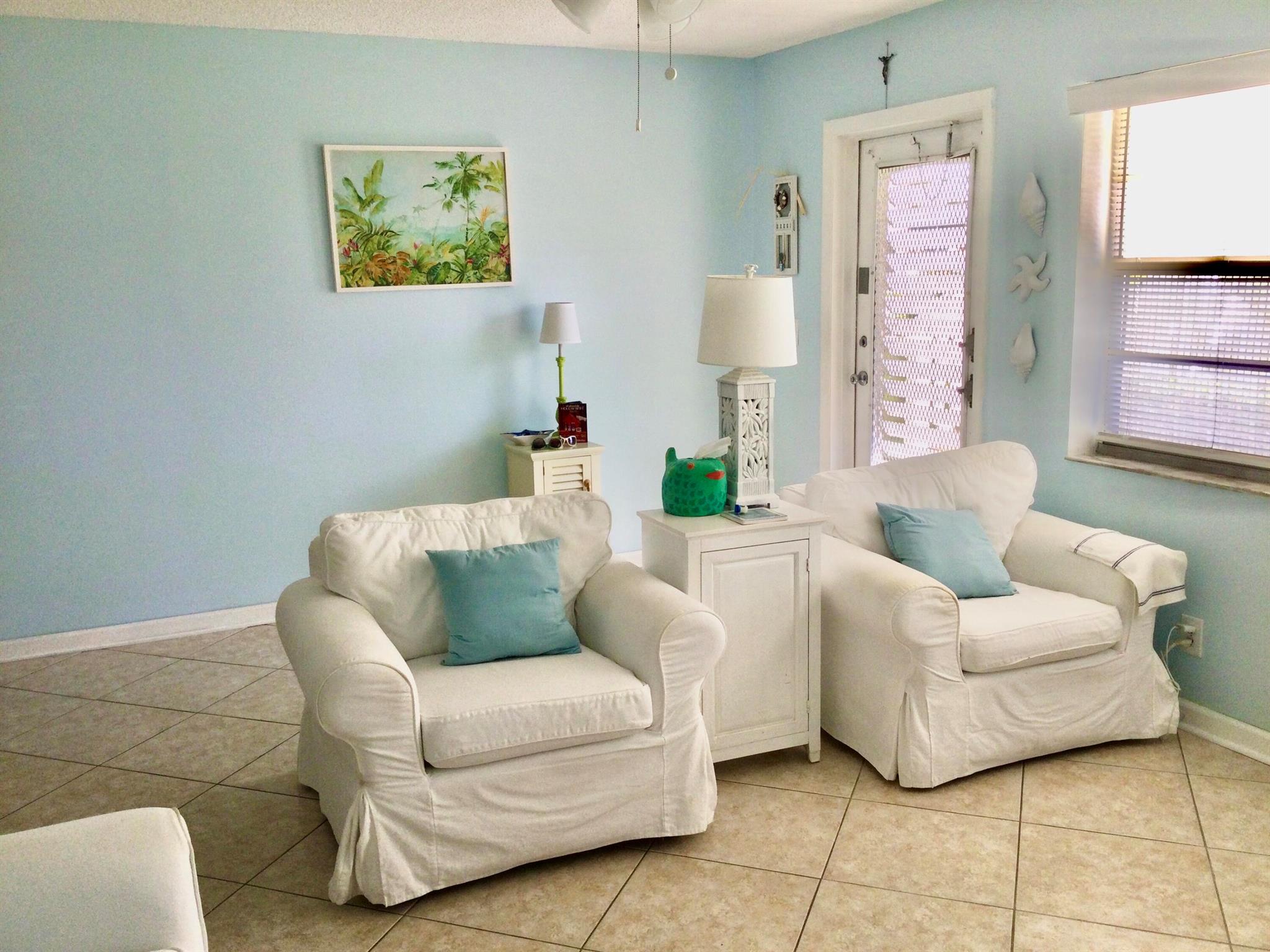 This bright & charming renovated coastal styled 1 bedroom 1 1/2 bath ground floor condo is ready for a new owner to make it their new home. Sheffield E is a well maintained building that has a lovely patio for the residents to enjoy. The Kitchen has been updated with white cabinets & appliances. Both bathrooms have been renovated. The full bath is also located in the Master bedroom & the half bath is located in the hall across from the pantry/linen closet. The Florida room is located off of the Master bedroom and has a additional storage area, door that leads to a back paver patio to relax & enjoy. Century Village West Palm Beach is an active 55+ Gated Community which is located close to Shopping, Restaurants, Airport, Golf, Boating, Tennis, Turnpike Hwy, Beaches, Fishing & so much more