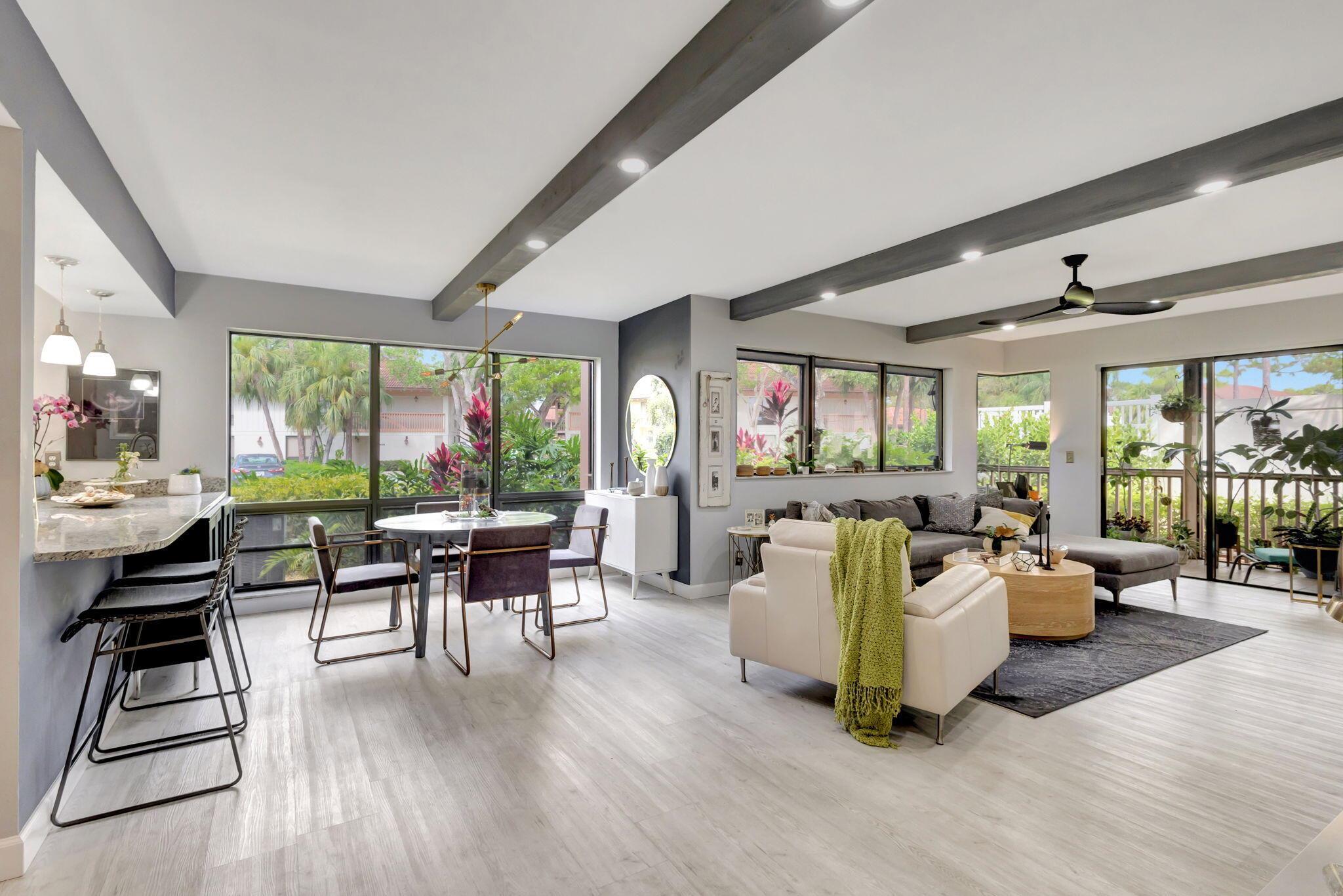 Tastefully Remodeled 1st Floor Golf Villa Unit. Kitchen w/Large Center Island, New Refrigerator, New Stove, New Washer/Dryer & Garbage Disposal. Open Floor Plan Creates a Lovely View from the Kitchen to the Dining Area & the Expansive Living Room. Bedrooms and Living Room Boast Custom Made Ceiling Beams with recessed Lighting, and Remote Controlled Ceiling Fans add a Modern Touch. (*All Popcorn Ceilings Have Been Removed). Both Bathrooms Have Been Tastefully Remodeled (*Bathroom Mirrors are Excluded). Expansive Windows w/ Plenty of Sunlight Throughout the Unit. New Tropical Foliage Installed for Privacy. Watch the Florida Sunsets from the Wraparound Screened-In Porch. Easy Access to Restaurants & Shops