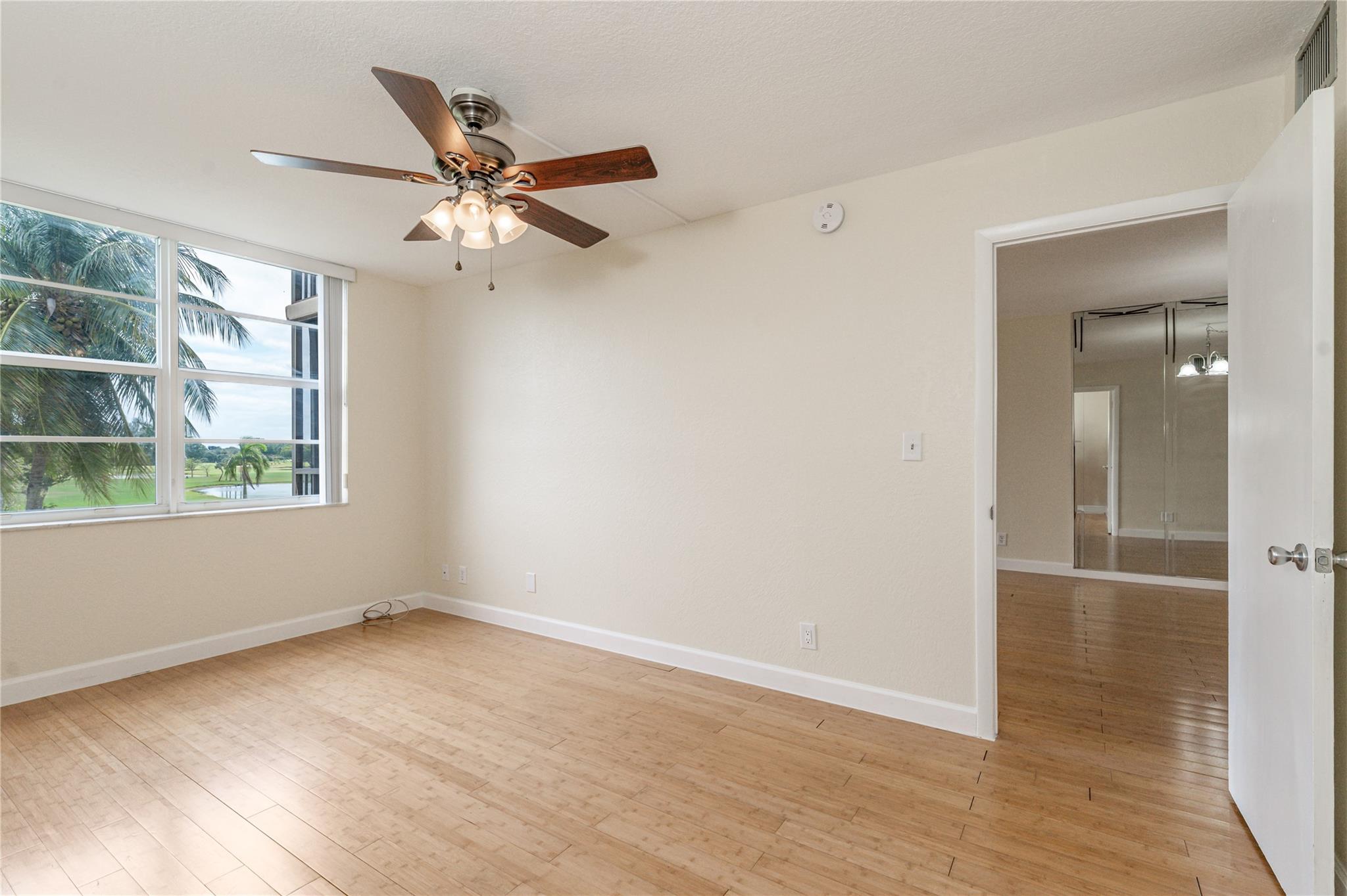 GOLFER'S DELIGHT! 4th FLOOR PANORAMIC PGA GOLF VIEW! 1BR/1.5BA featuring open tiled kitchen w/maple cabinetry, SS appliances & waterproof vinyl plank flooring. IMPACT windows & front door. Newer AC. New vanities in bathrooms w/ designer knock-down walls. Attractive laminate oak flooring. Updated shower in master bathroom. Enclosed balcony blocks all noise. Recreation Lease PAID IN FULL! FREE golf (except cart fees) on two 18 hole courses (PGA & Par3); Amenities include Restaurant, Billiard Room, Bbq/Picnic Area, Clubhouse, Courtesy Bus, Exercise Room, Heated Pool, Library, Putting Green, Sauna, Shuffleboard, Tennis, Pickle Ball, Vehicle Wash Area, Electric Car Charging Station. Close to shops, dining & highways. 15 min. to the beach. Association says 55+ age required; EXCELLENT!
