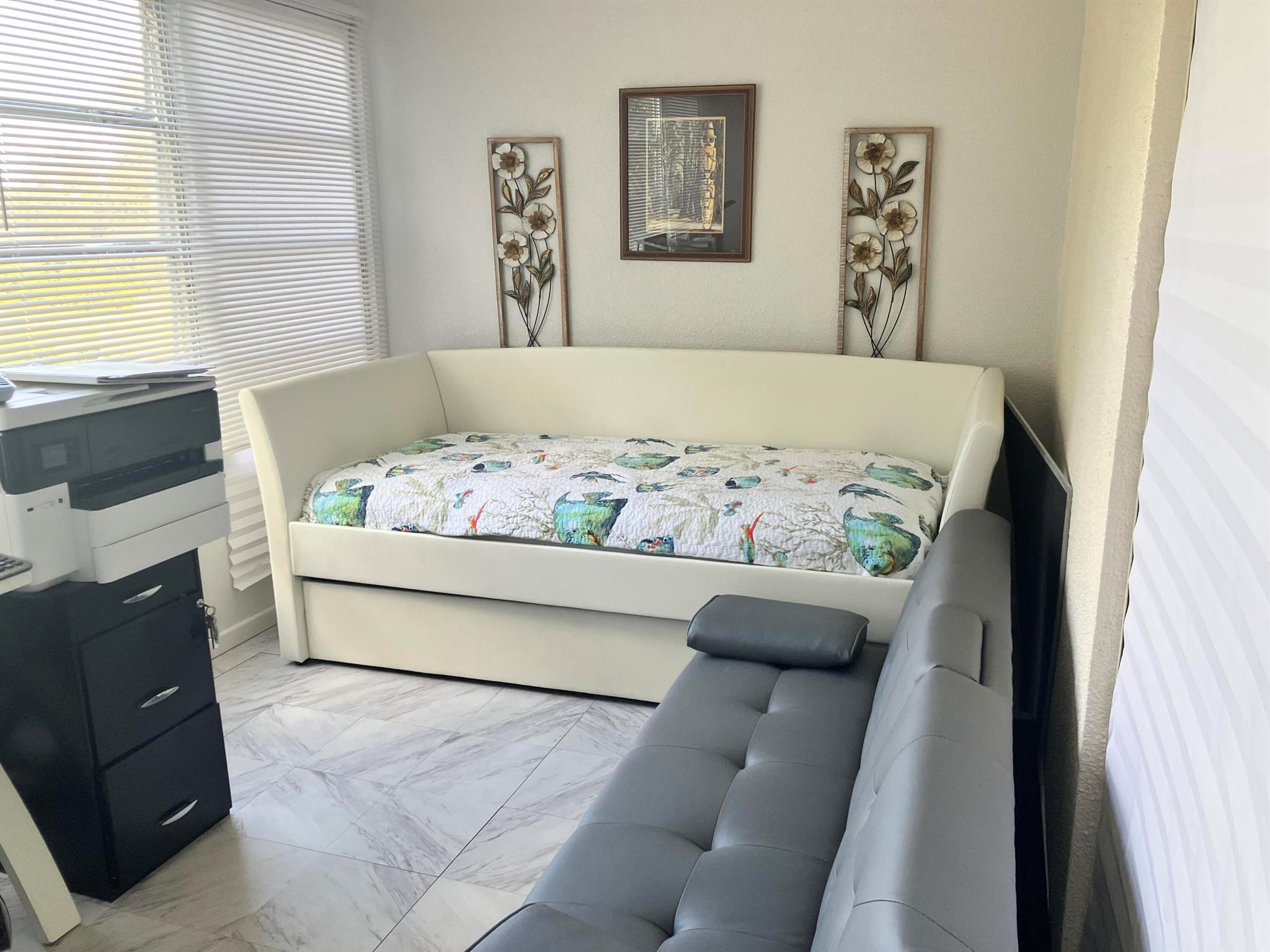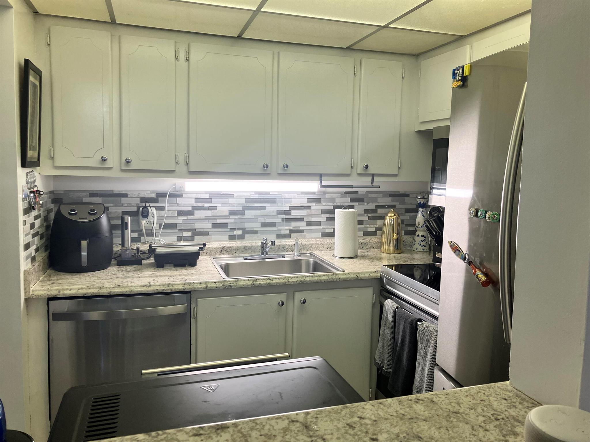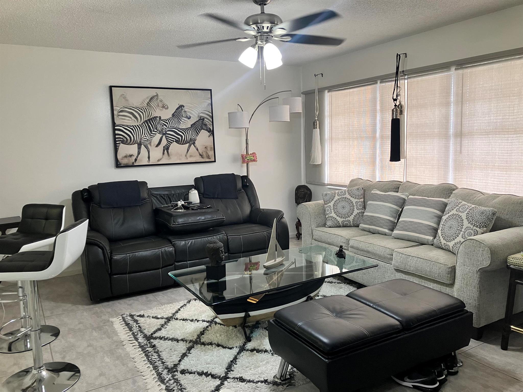 Great 1 BR, 1.5 bath unit in Century Village a 55 Plus community with many amenities. Partially upgraded and ready for move in. All tile floor, Central A/C, with stainless steel appliances. Large patio/office, nicely decorated. Motivated sellers.