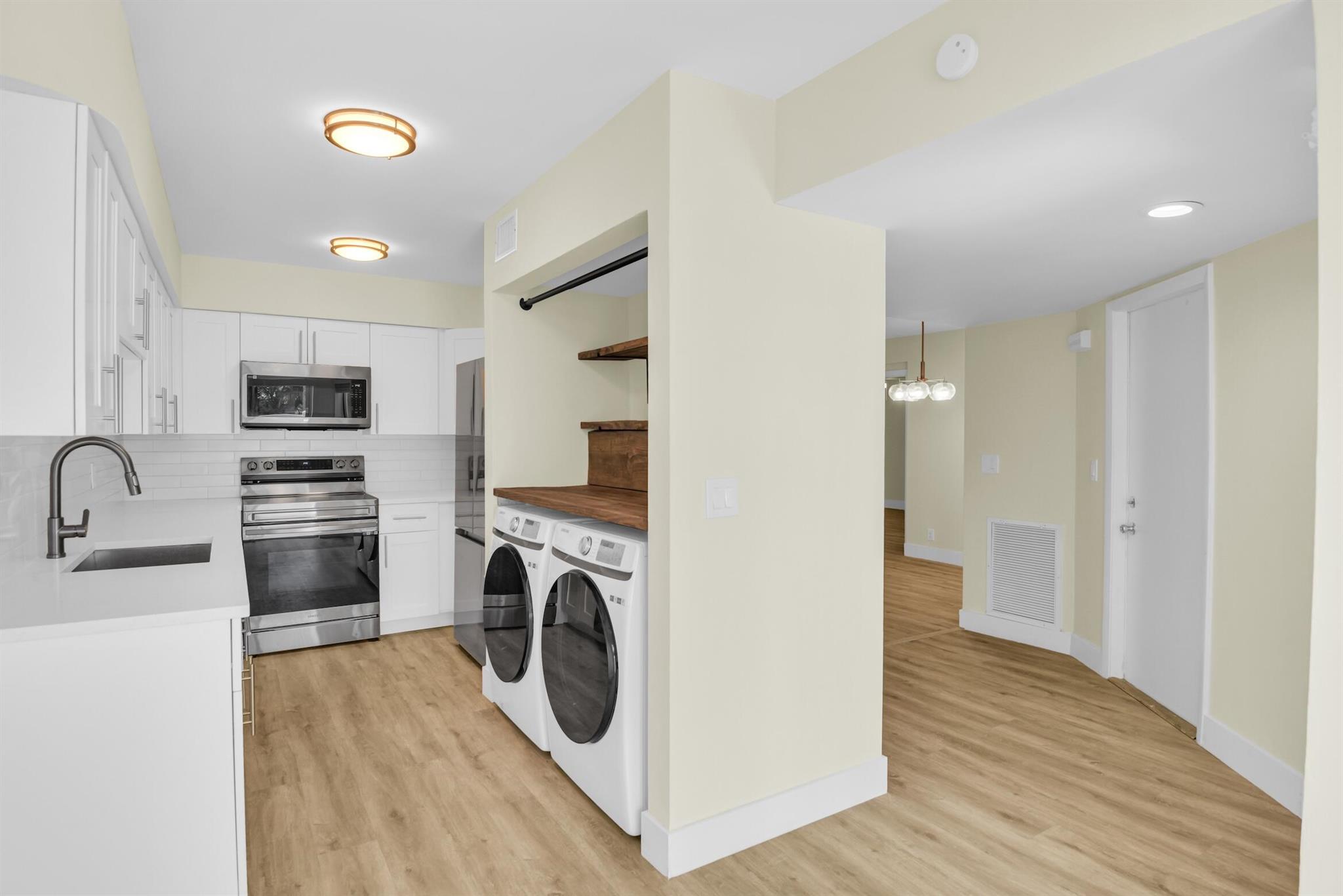 Look no further at this bright and airy recently renovated home complete with private garage. Turn into a welcoming neighborhood surrounded by an abundance of greenery nestled in the community of Carriage Gate. Newer washer, dryer, stove and microwave. Features to take in a screened in patio, split floor plan, stainless steel appliances, and quartz countertop. Primary bedroom features a walk-in closet, step in shower, and sunken tub. This is a great opportunity to settle in quickly to this very quiet and convenient location in the middle of Boynton Beach. This home is located near endless amounts of shopping, a variety of restaurants and a short drive to major highways.