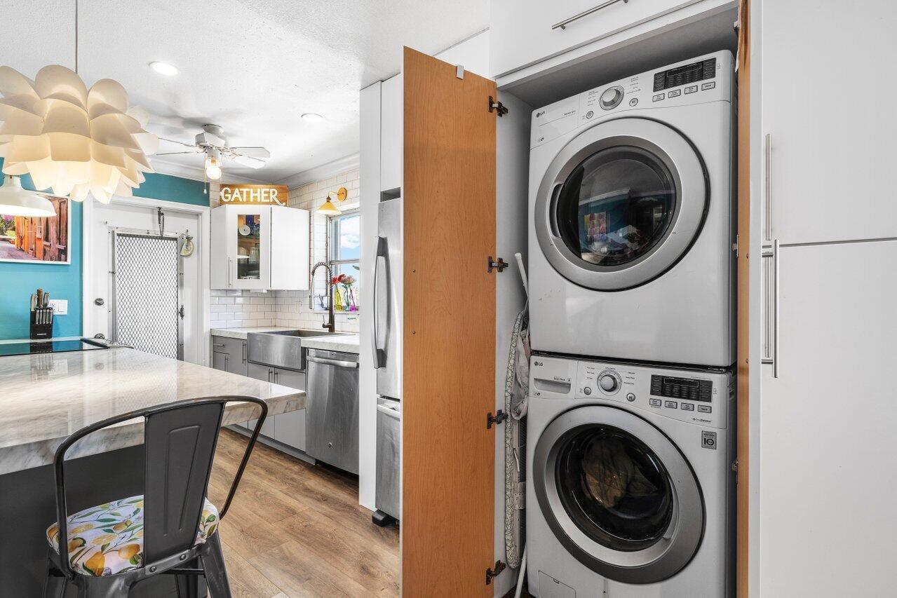 55+ Corner Condo with Stunning Views! The unit can be purchased and occupied by anyone over 18. The building is under the 20% allowance for residents. Best views in the building from this bright, spacious corner unit. Features include in-unit washer/dryer, 2023 A/C & water heater, and accordion shutters. Passed 40-year inspection (Dec 2024). Great reserves and budget. The building was painted last year; $5K assessment for upcoming roof replacement. HOA covers exterior, water, landscaping, cable, garbage and security cameras. One assigned parking spot with additional parking available in the Swail. No rentals allowed--quiet, stable community. Elevator and stairs for easy access. Located on the hospital power grid for added peace of mind. Move in and enjoy a decade free of worries!