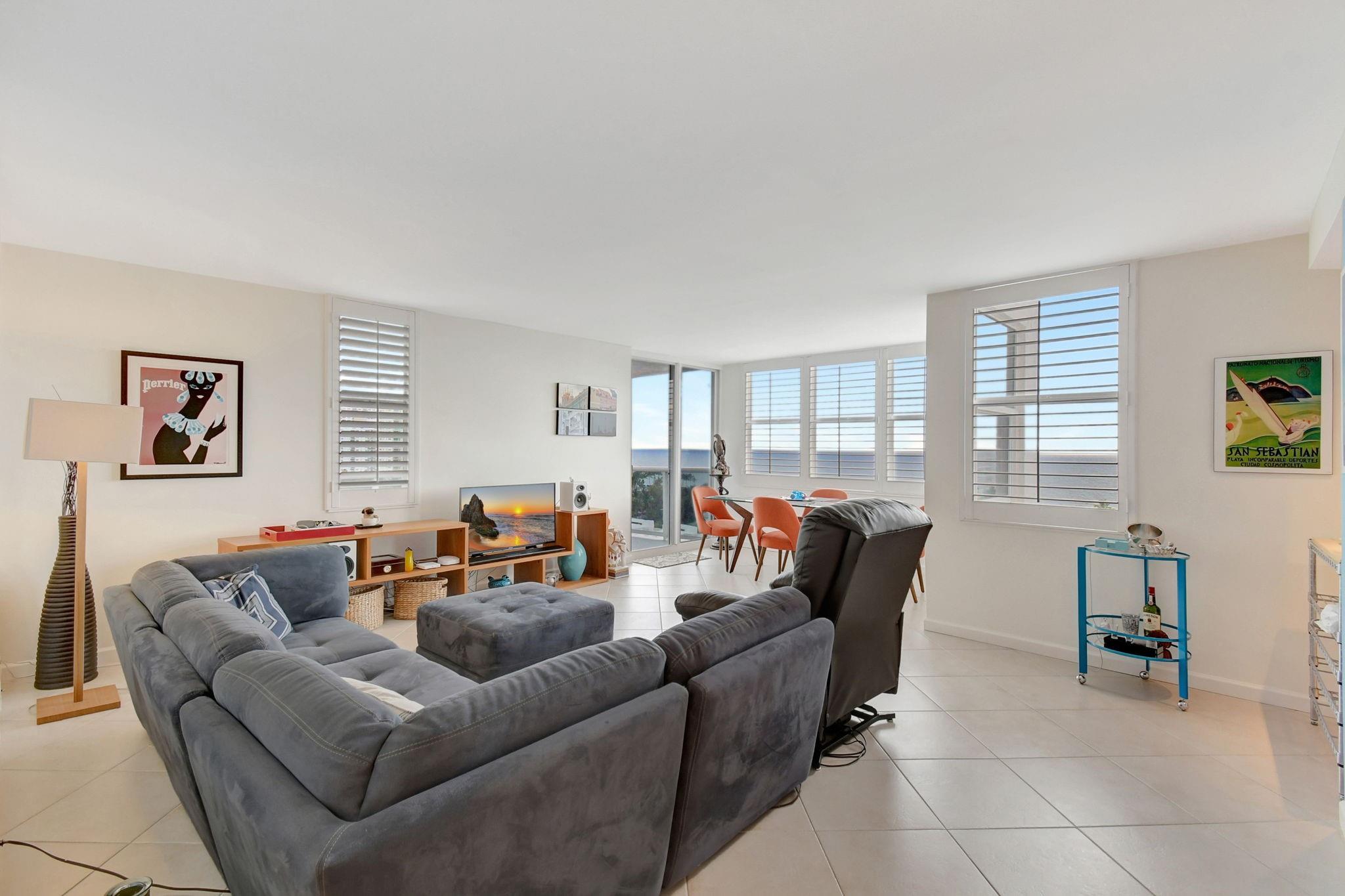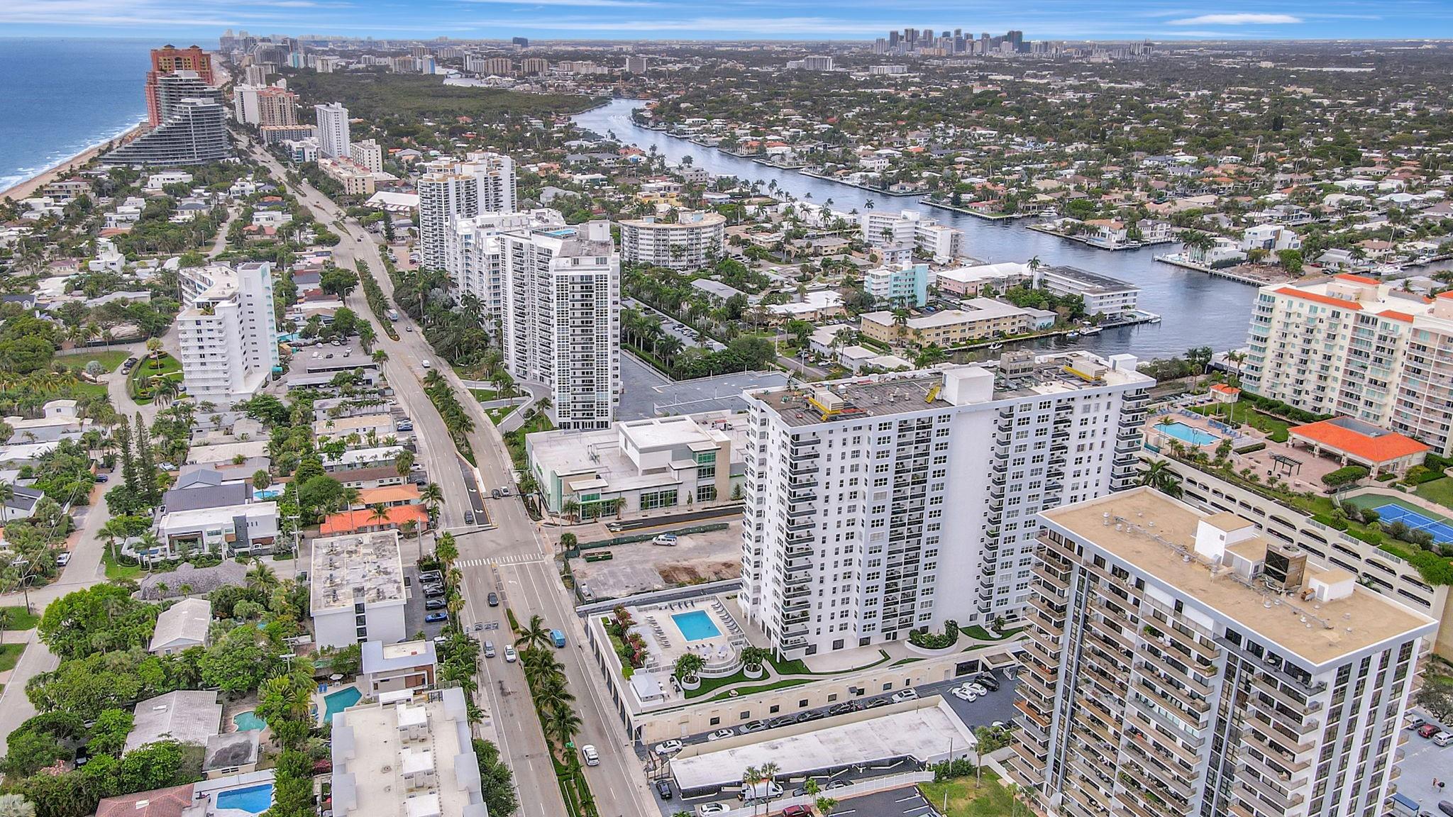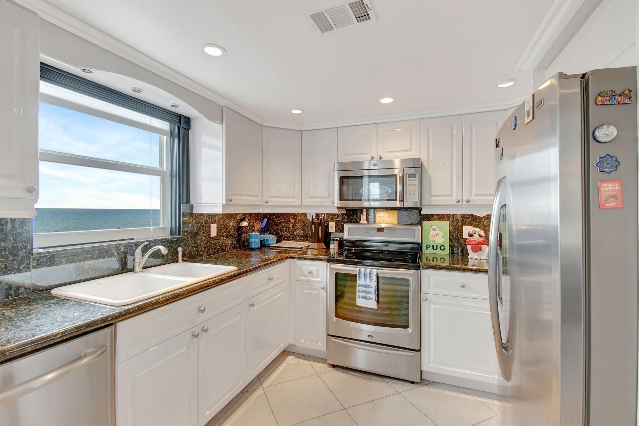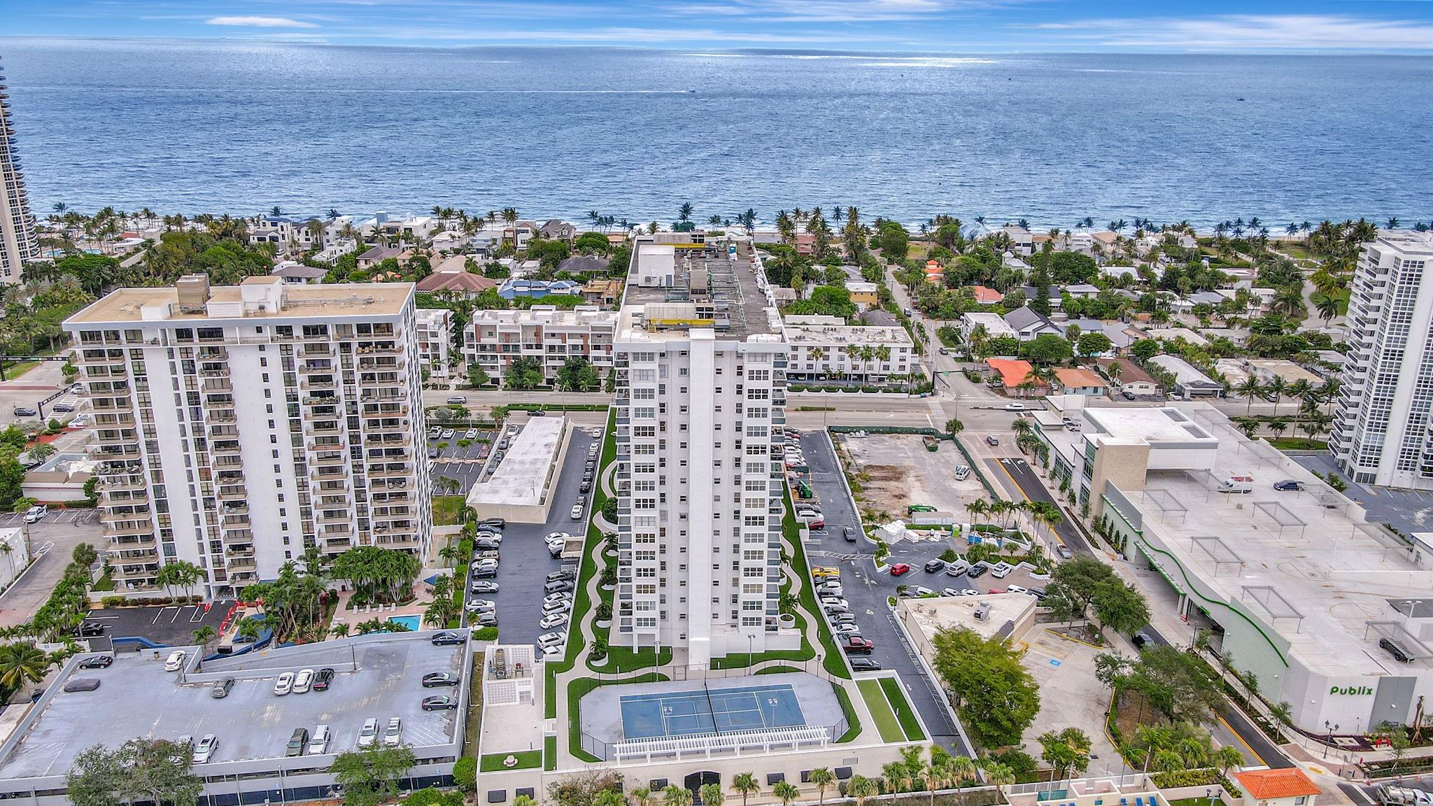 Direct ocean view from your living room, kitchen & balcony. bright, spacious unit. NE corner. Updated kitchen. Tiled throughout the unit. Impact windows/doors. Move in condition. Watch the pool and beautiful 2nd deck. View of galt ocean all the way north to lighthouse. Walk to the beach, shops, many popular restaurants, Publix across the street. Garage pkg. 24hr front desk svc. guest pkg outside. Glass balcony. 2025 roof. 50yr milestone done, water cooler. Hoa includes, water, sewer, trash pick up, basic cable, high speed fiber optic internet, pest control. You only pay electric. Extra storage & Laundry facility on same floor. Bike storage in the garage. Great place to live. great location to be in. Bayview school boundary. A rated elementary. all ages. Easy to show. NON smoking bldg.